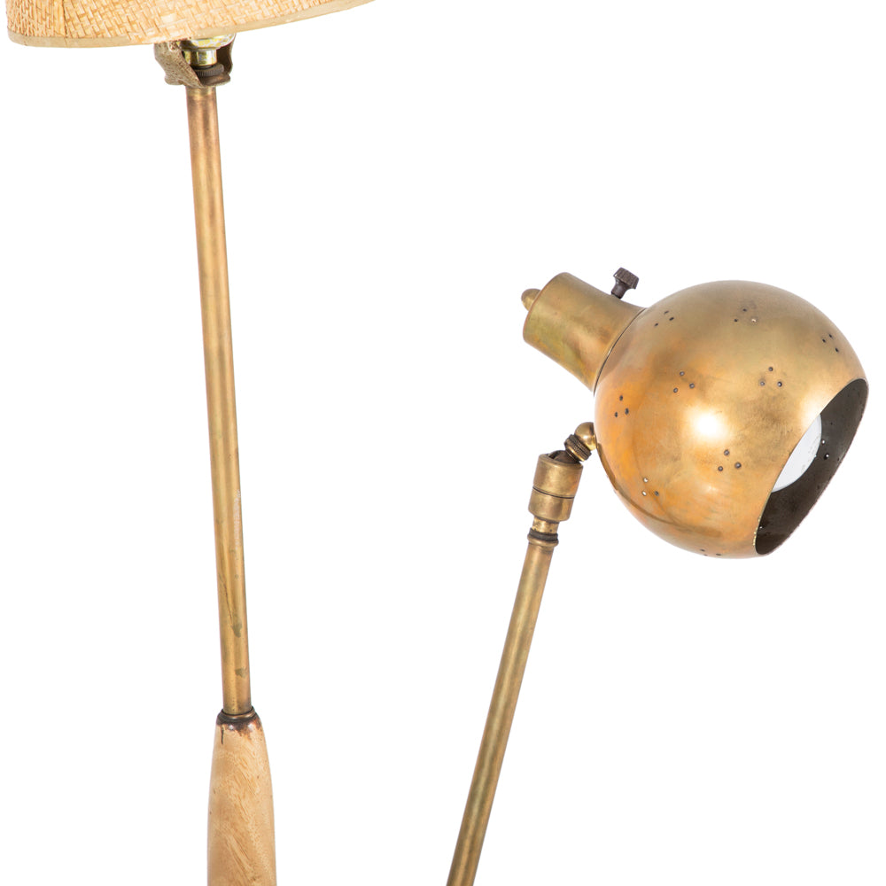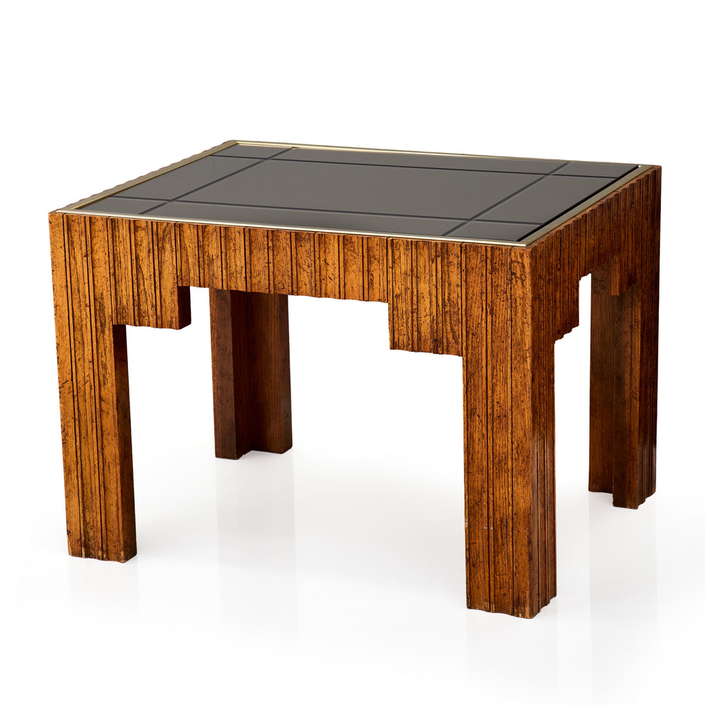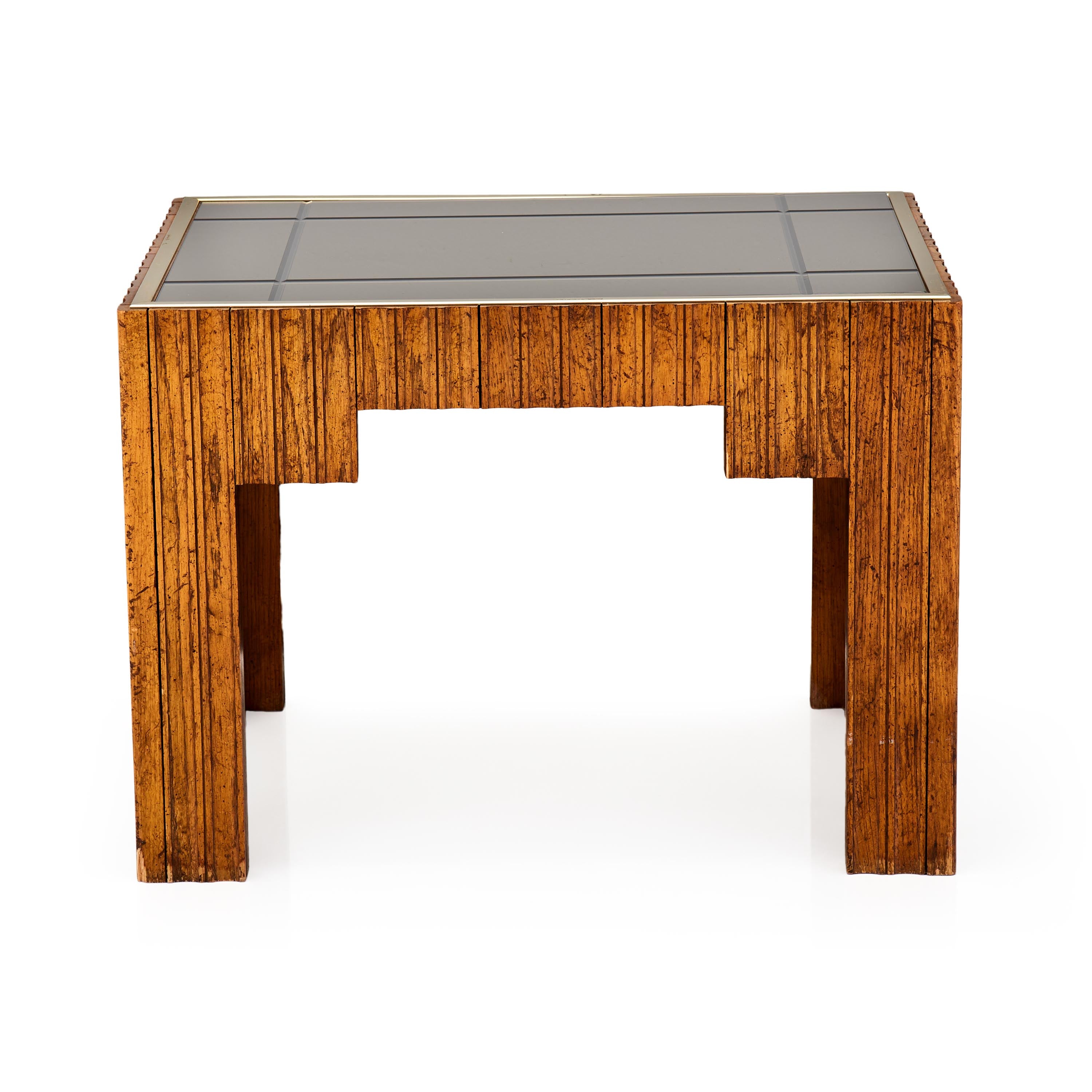 Details: Wide wood and brass vintage dresser with brass accented base, six drawers, and multi-stained wood paneling Dimensions: 28.5" H x 54.5" W x 19" D...