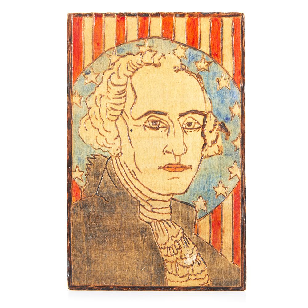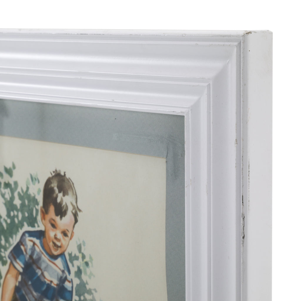 Details: Rustic painting of a field of wheat, barn, and overcast skies with white cardboard matte border and natural wood frameDimensions: 10" H x 10" W...