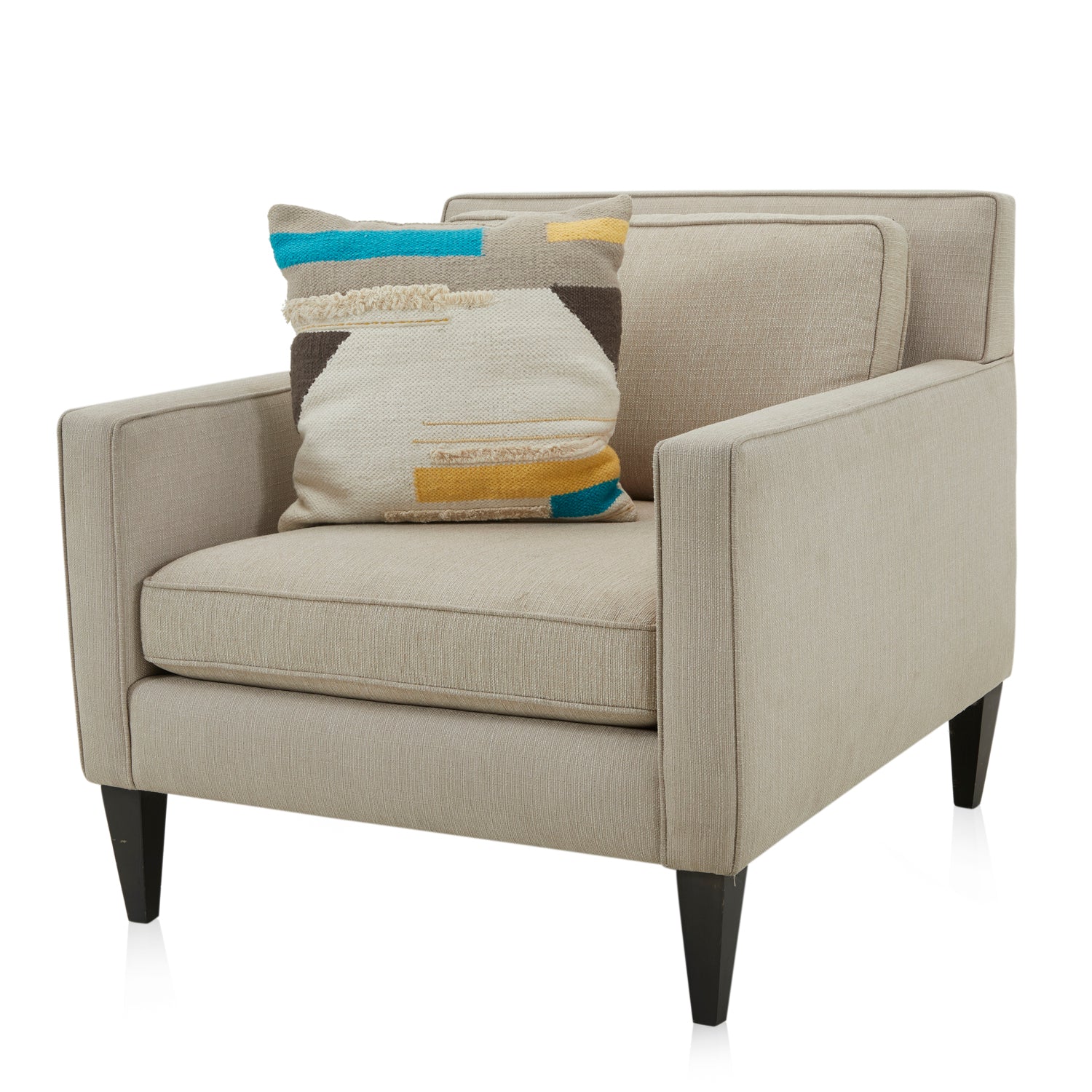 Details: Square pillow with striped solid turquoise fabric Dimensions: 16" H x 16" W x 6 "D Quantity: 1
