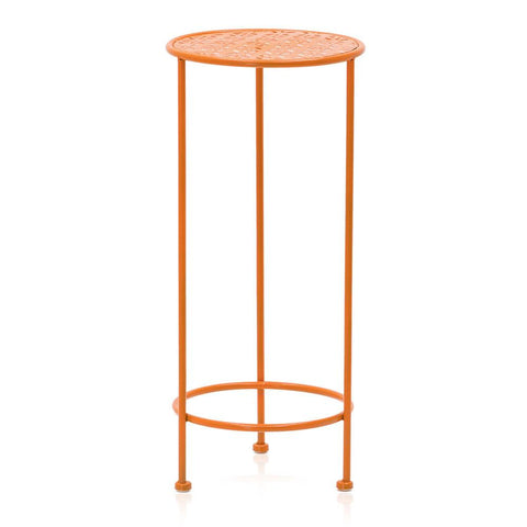 Details: Orange metal side table part of a set of three. Dimensions: 22" H x 10" W x 10" D