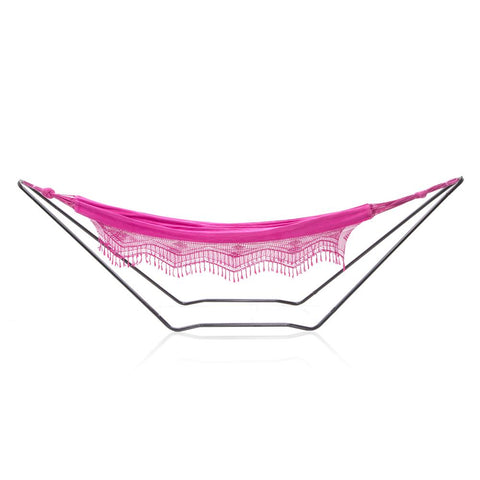 Details: Magenta bohemian hammock with crochet detailing. Dimensions: 46" W X 140 "L X 55" H Quantity: 1