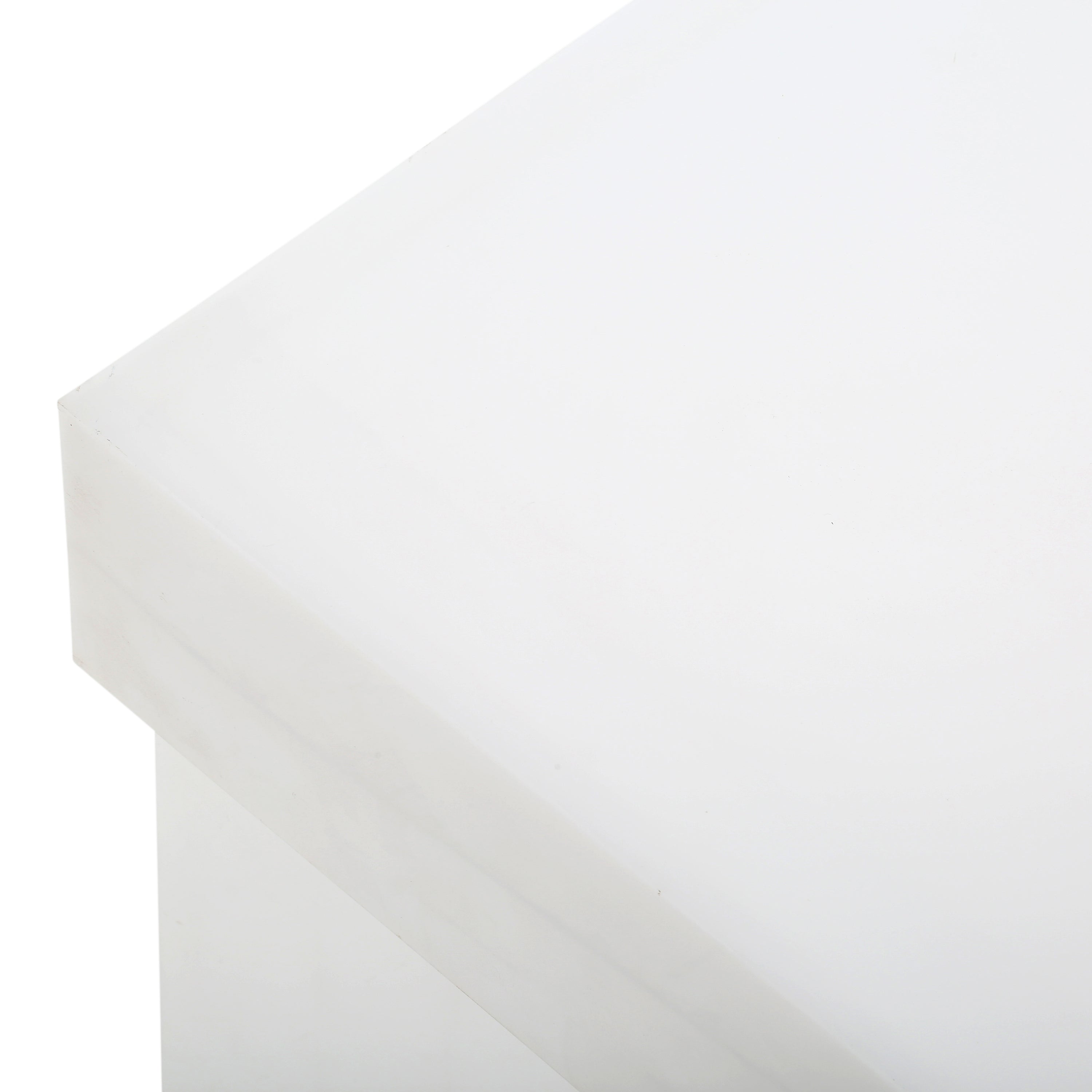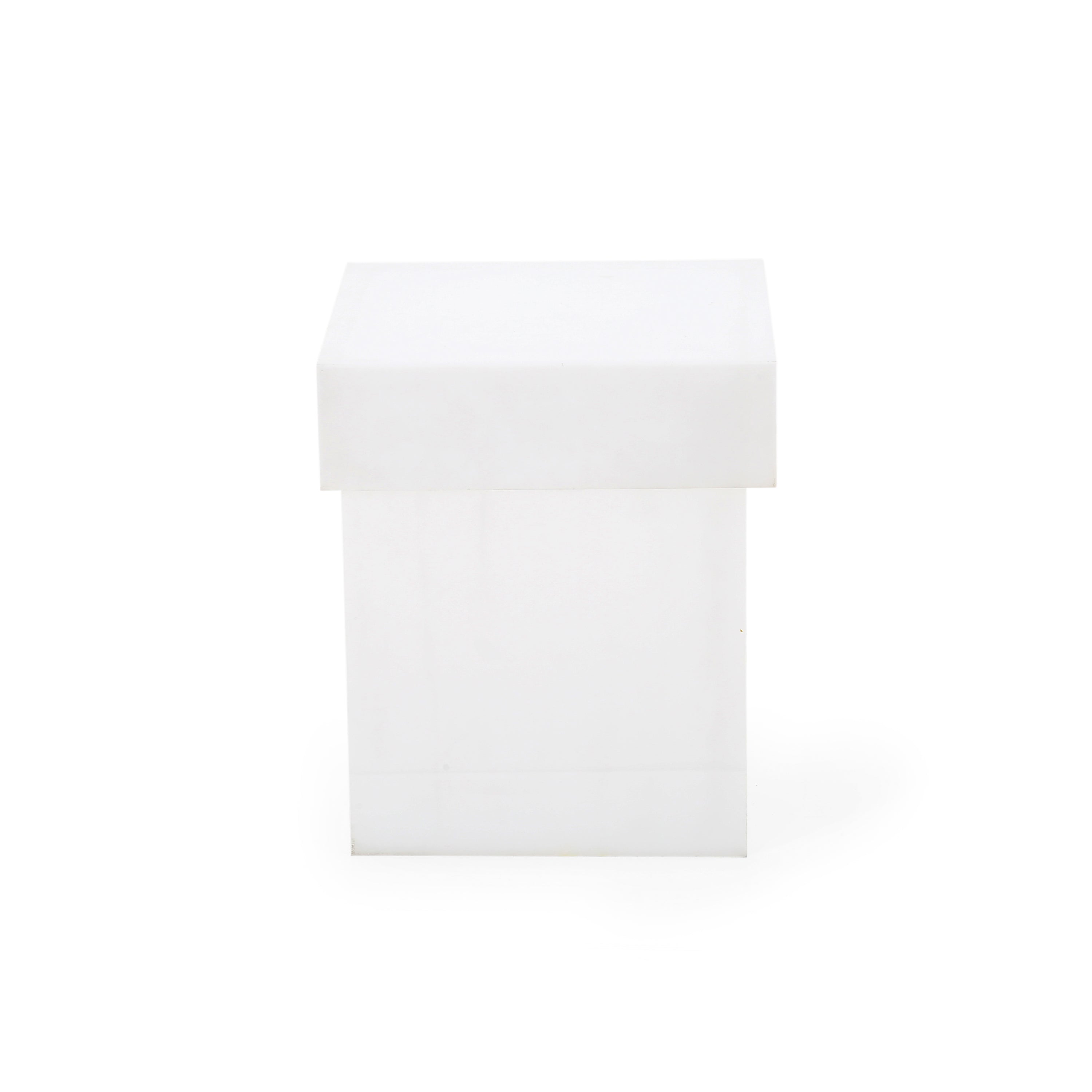 Details: Semi-opaque acrylic box. Very thin - cannot support a person's weight. Dimensions: 20" H x 17.5" W x 17.5" D