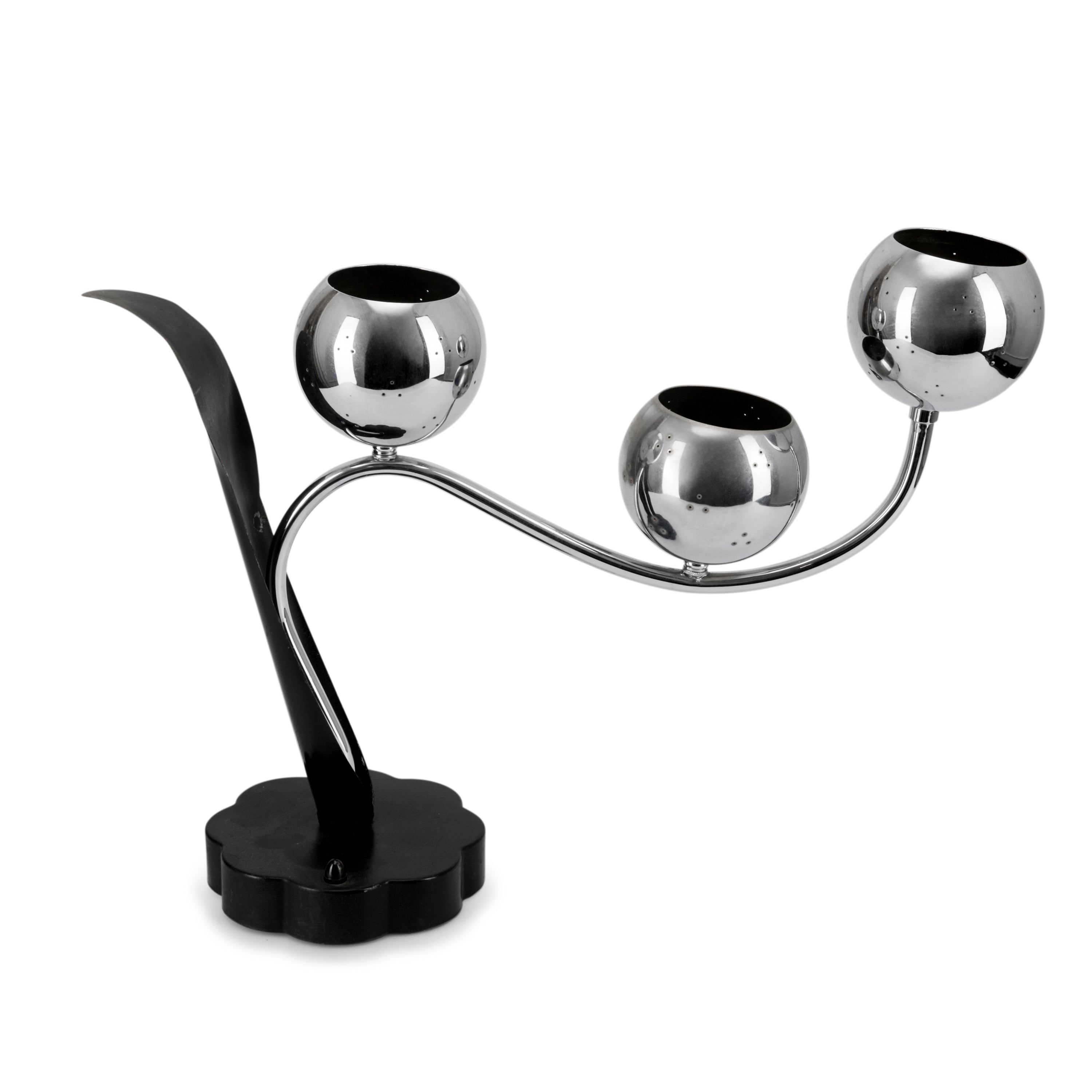 Details: Table lamp shaped like a branch with 3 chrome fixtures Dimensions: 15" H x 20" W x 6" D