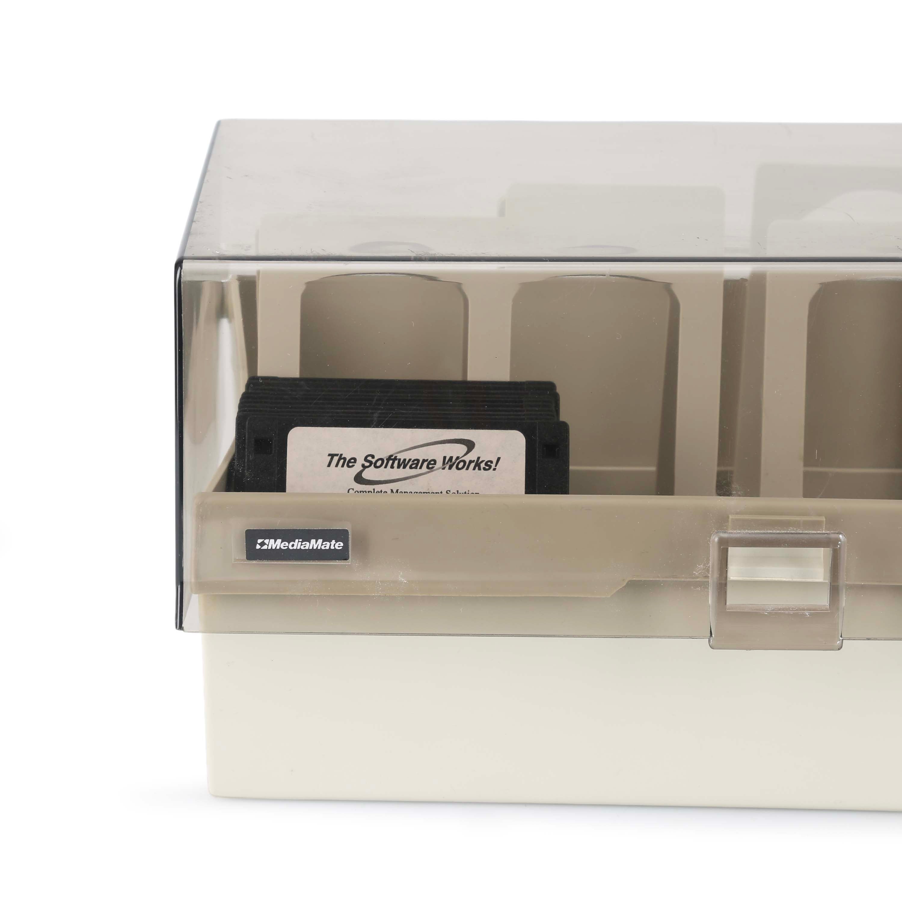 Details: Off-white acrylic floppy disk case Dimensions: 12" H x 6" W x 8" D