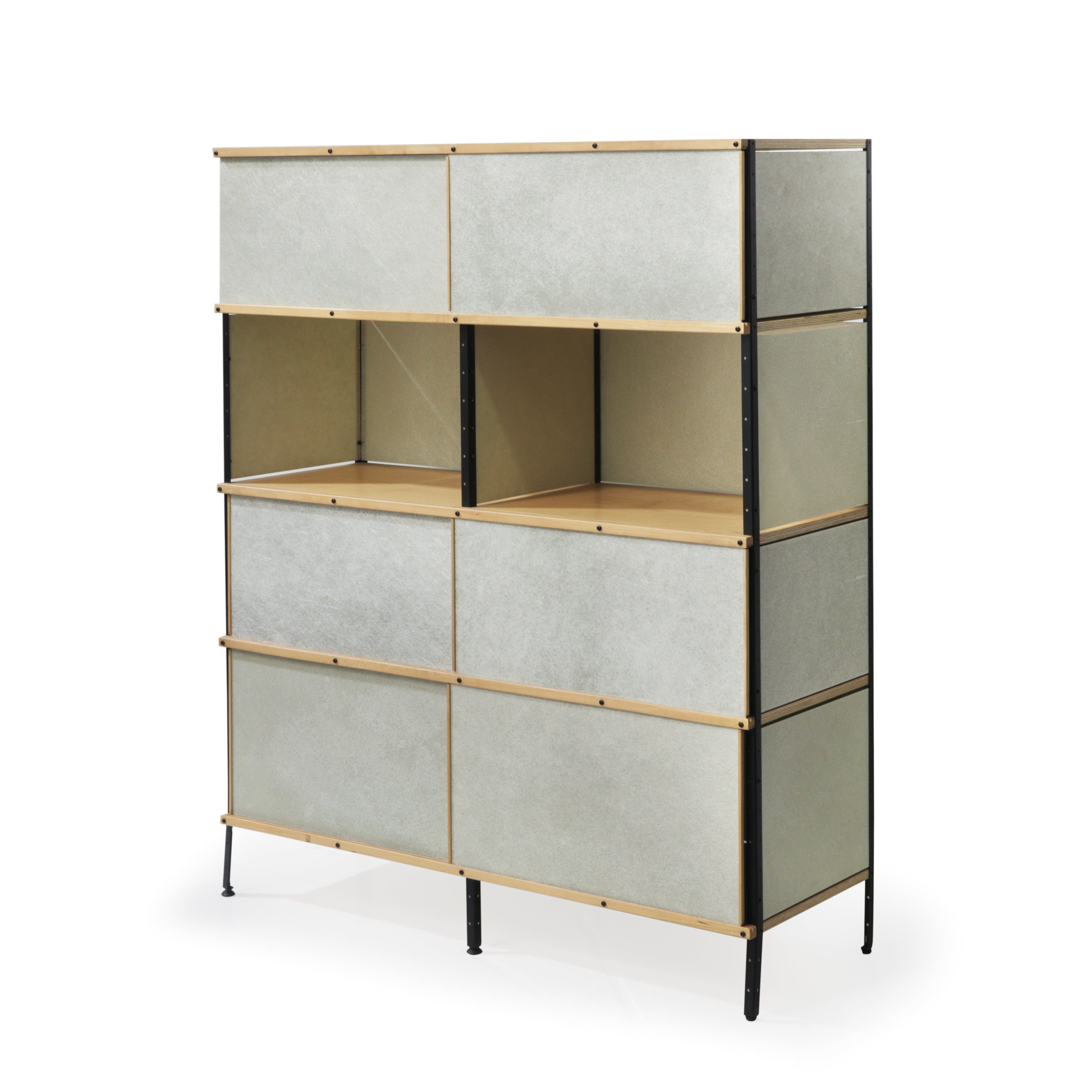 Details: Wood, Silver, Light Grey, Pale, Natural, Black, Shelves, Shelf, Shelving. Some wear on legs. Dimensions: 59" H x 48" W x 17" D