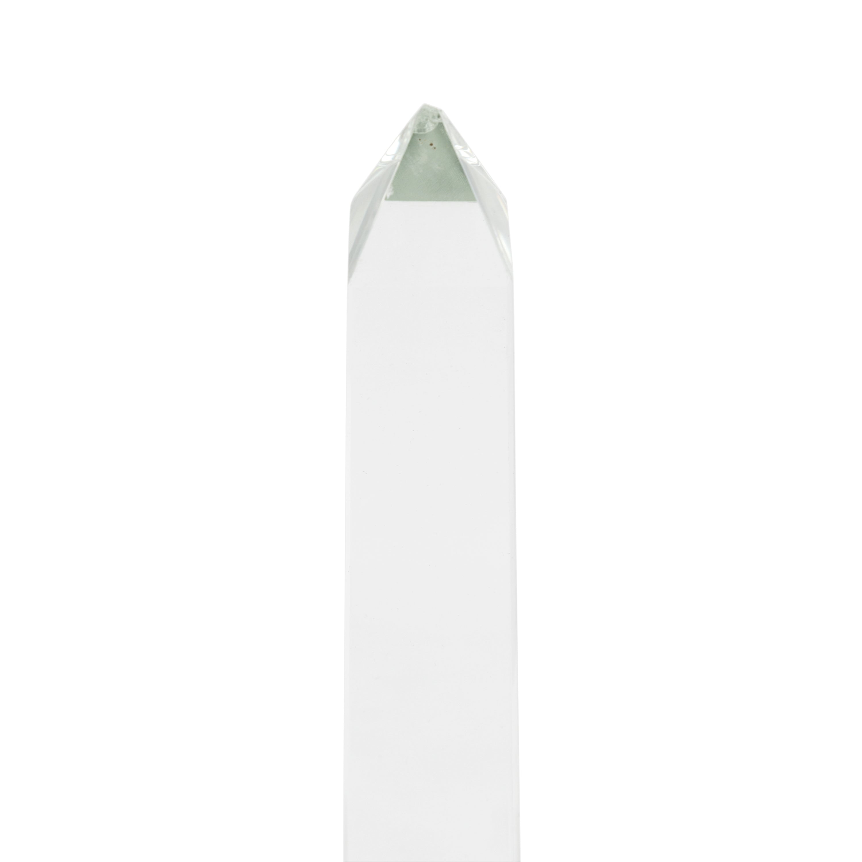 Details: Translucent table sculpture with tapered edges Dimensions: 7.5" H x 3" W x 3" D