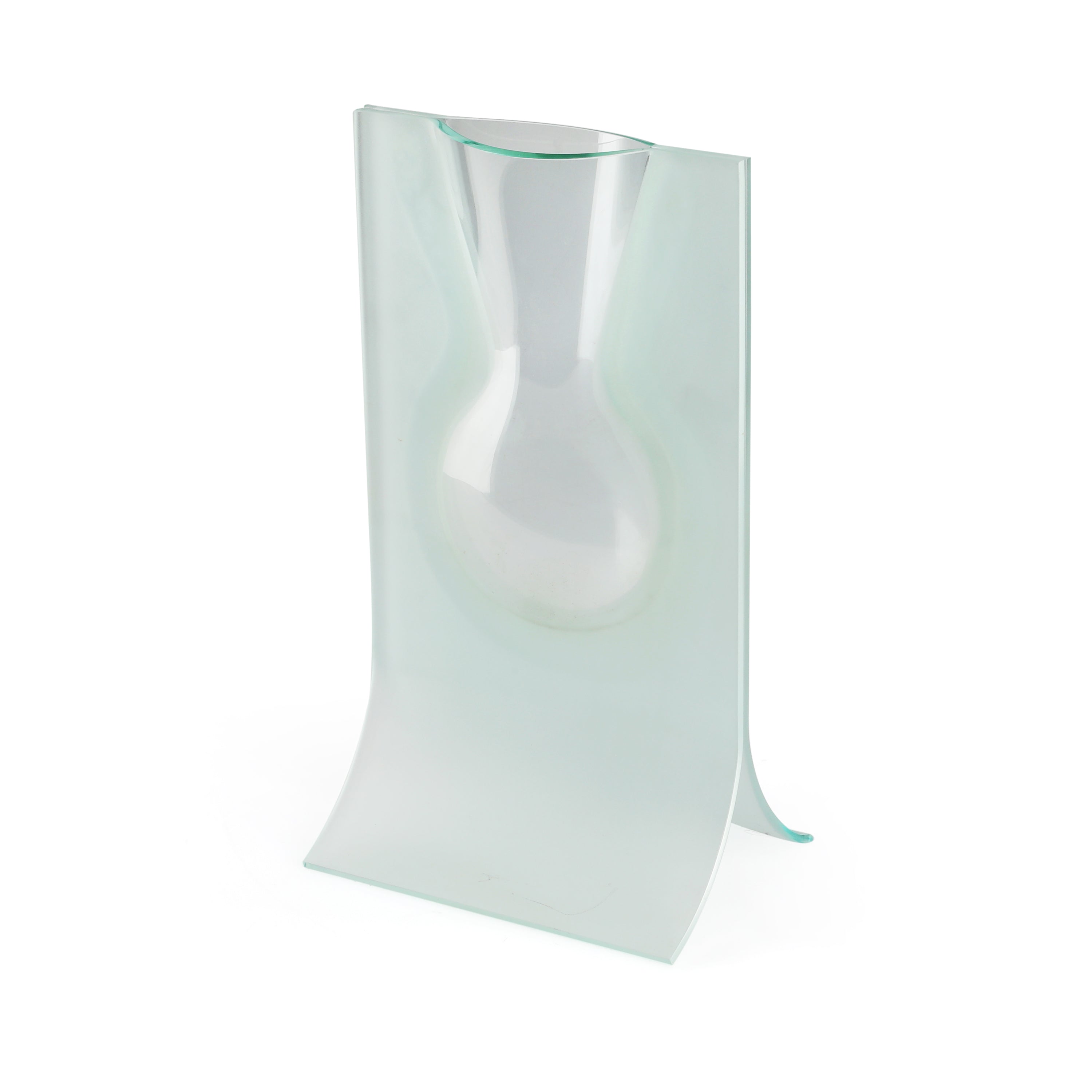 Details: Modern frosted glass vase with curved base Dimensions: 12" H x 7" W x 5" D