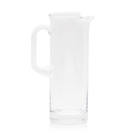 Details: Glass pitcher with curved pouring spout Dimensions: 11" H x 7" W x 4" D