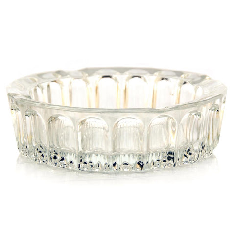 Details: Glass circular ashtray with arch decorations Dimensions: 1.75" H x 6" W x 6" D