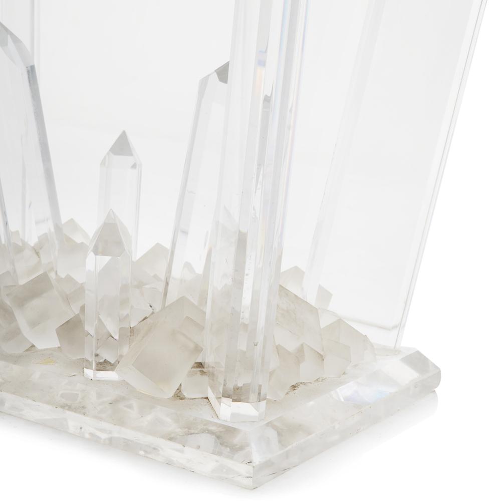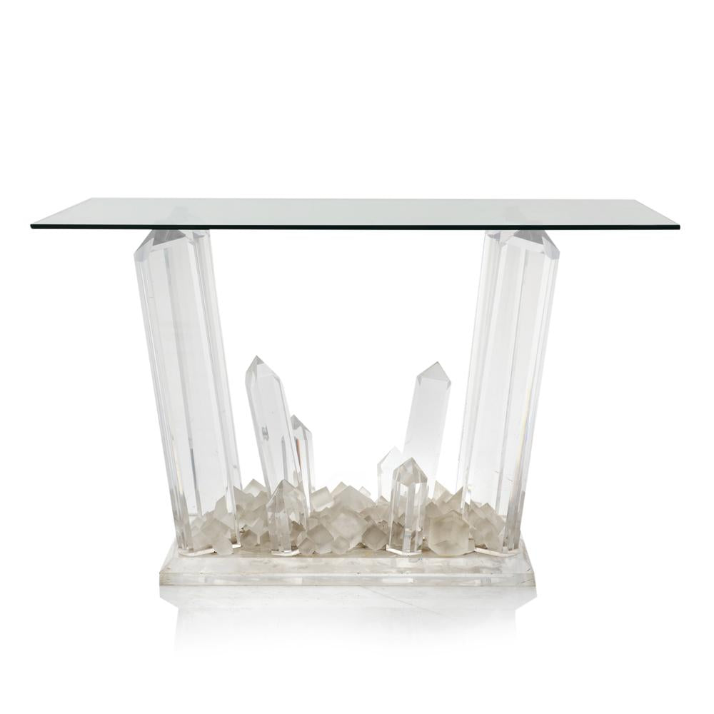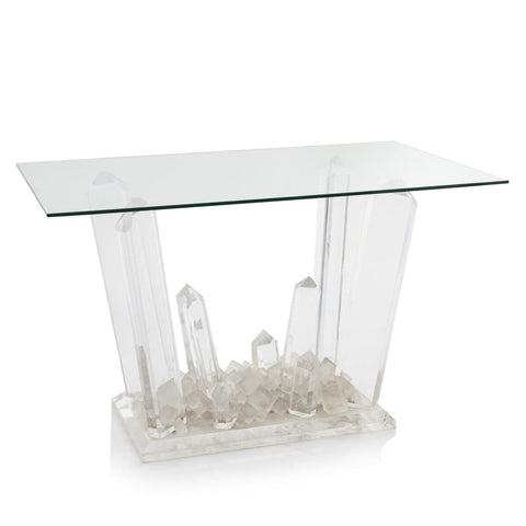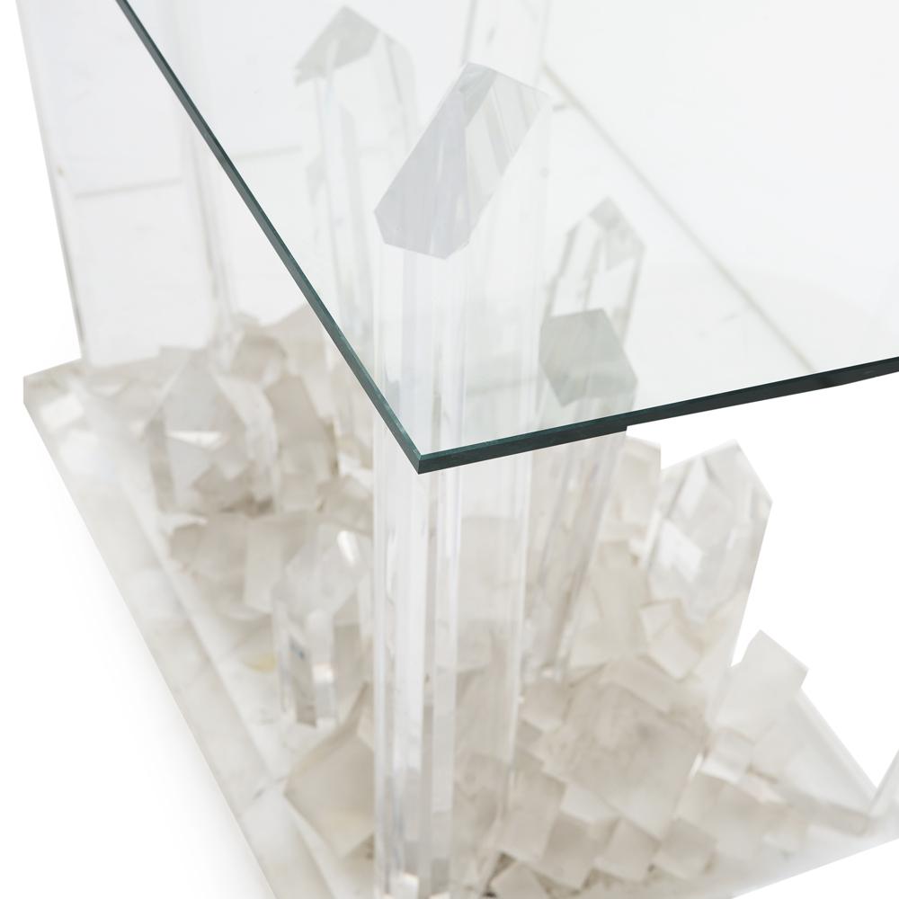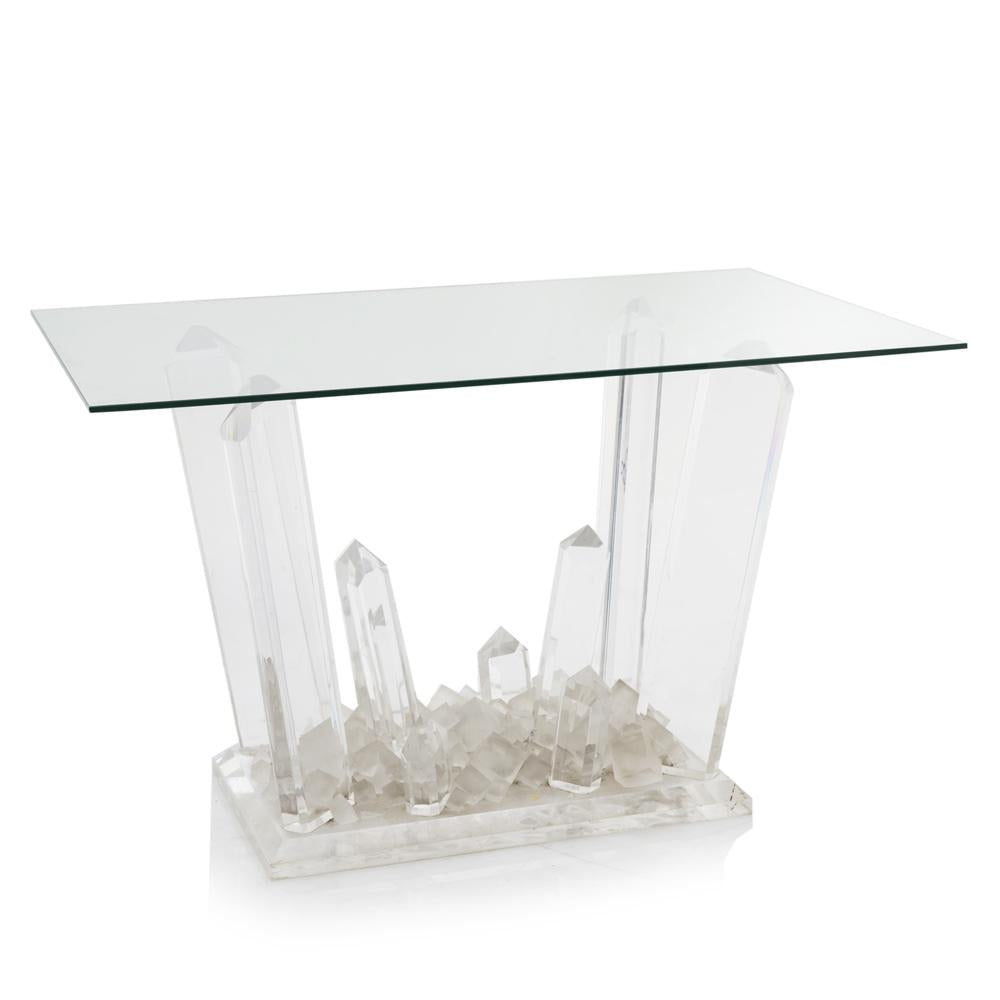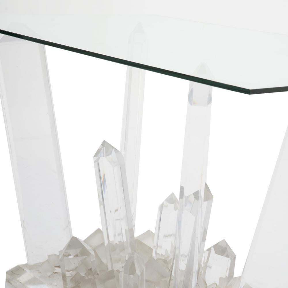 Details: Glass crystal kryptonite based, rectangle glass top entry or console table Dimensions: 29" H x 48" W x 30" D