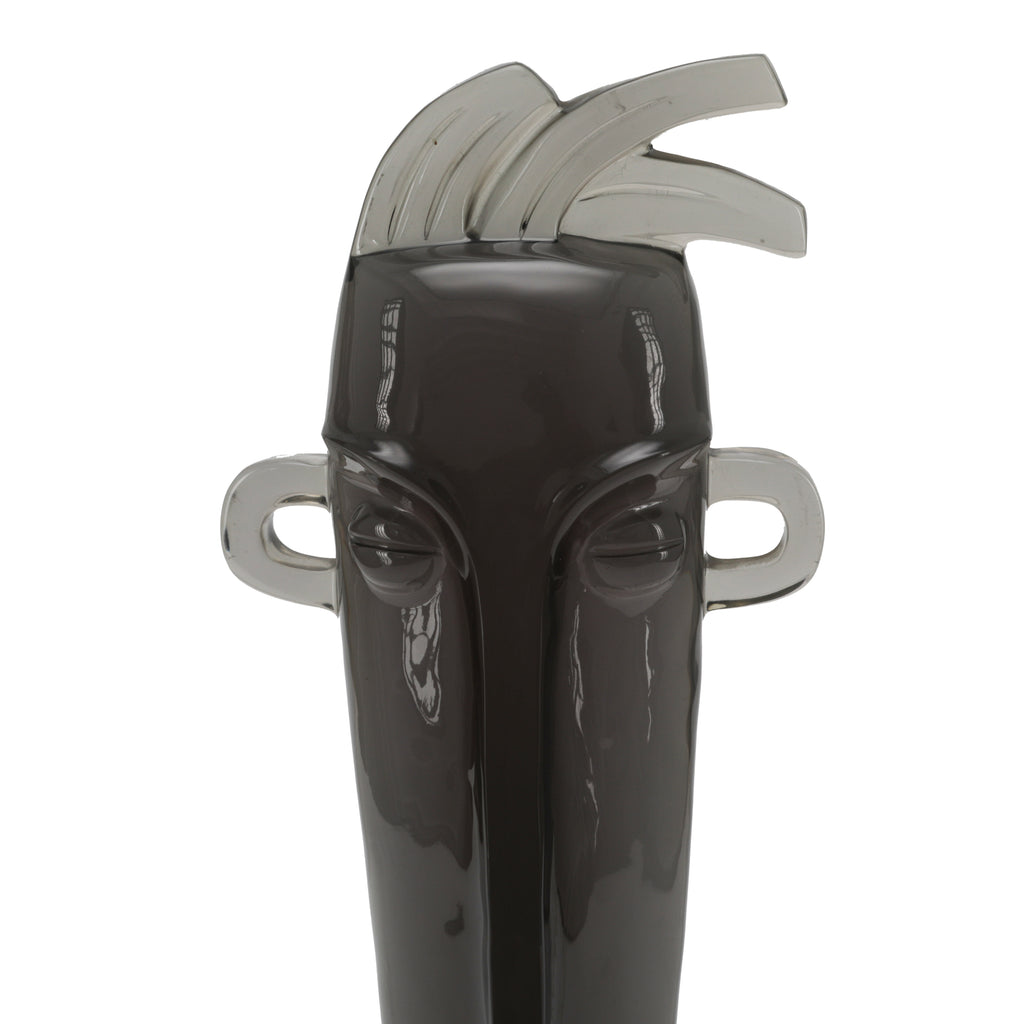Details: Abstract acrylic sculpture vaguely resembling a decanter with a red inverse triangle body and a green inverse triangle top on a clear base Dimensions:...