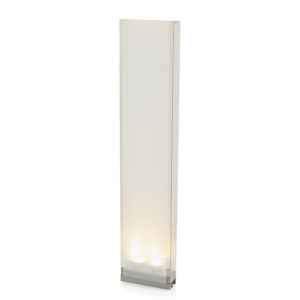 Details: Acrylic sculpture composed of a translucent purple sphere sitting atop a clear rectangular body with sporadic ridges Dimensions: 8" H x 3" W x...