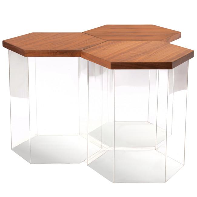 Details: Abstract acrylic sculpture vaguely resembling a decanter with a transparent blue octagonal body and a transparent purple octagonal top Dimensions: 14" H x 6" W x 4"...