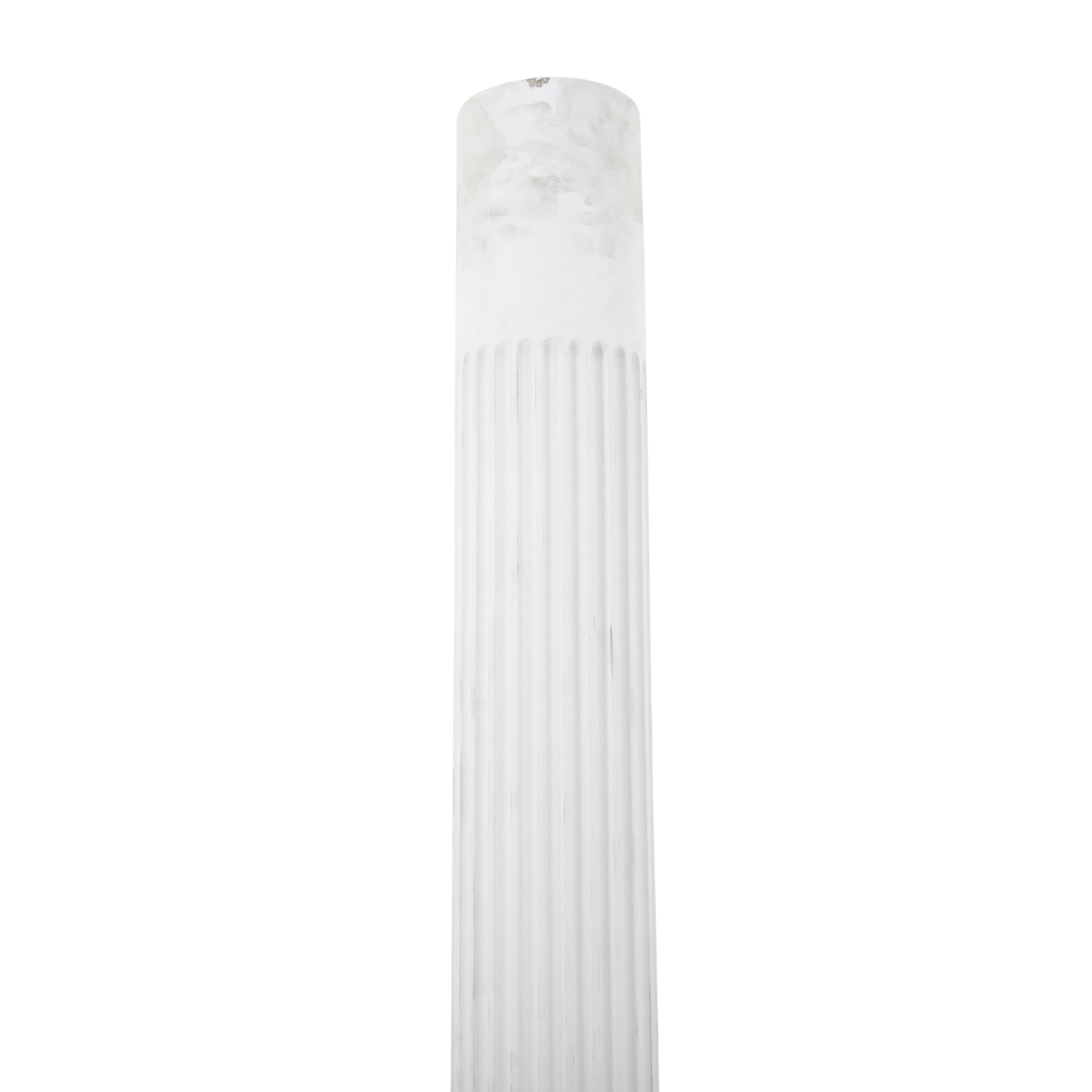 Details: White plaster floor lamp with a twisted cylindrical mid section and a tapered base. Dimensions: 70" H x 24" D