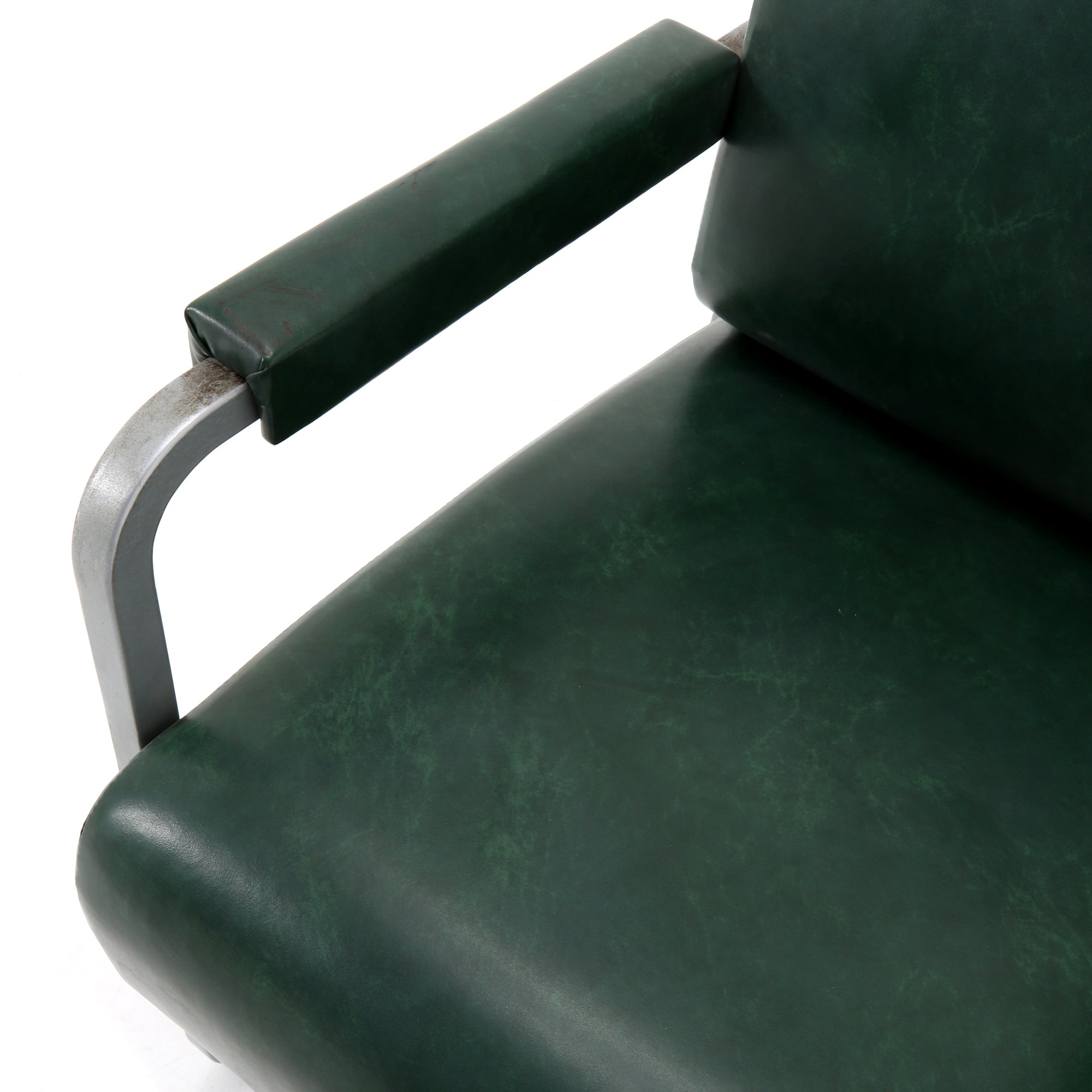 Details: Multi-toned green office chair with leather sides and fabric back / seat. Some noticeable wear on leather / fabric. Rented as is. Dimensions: 33"...