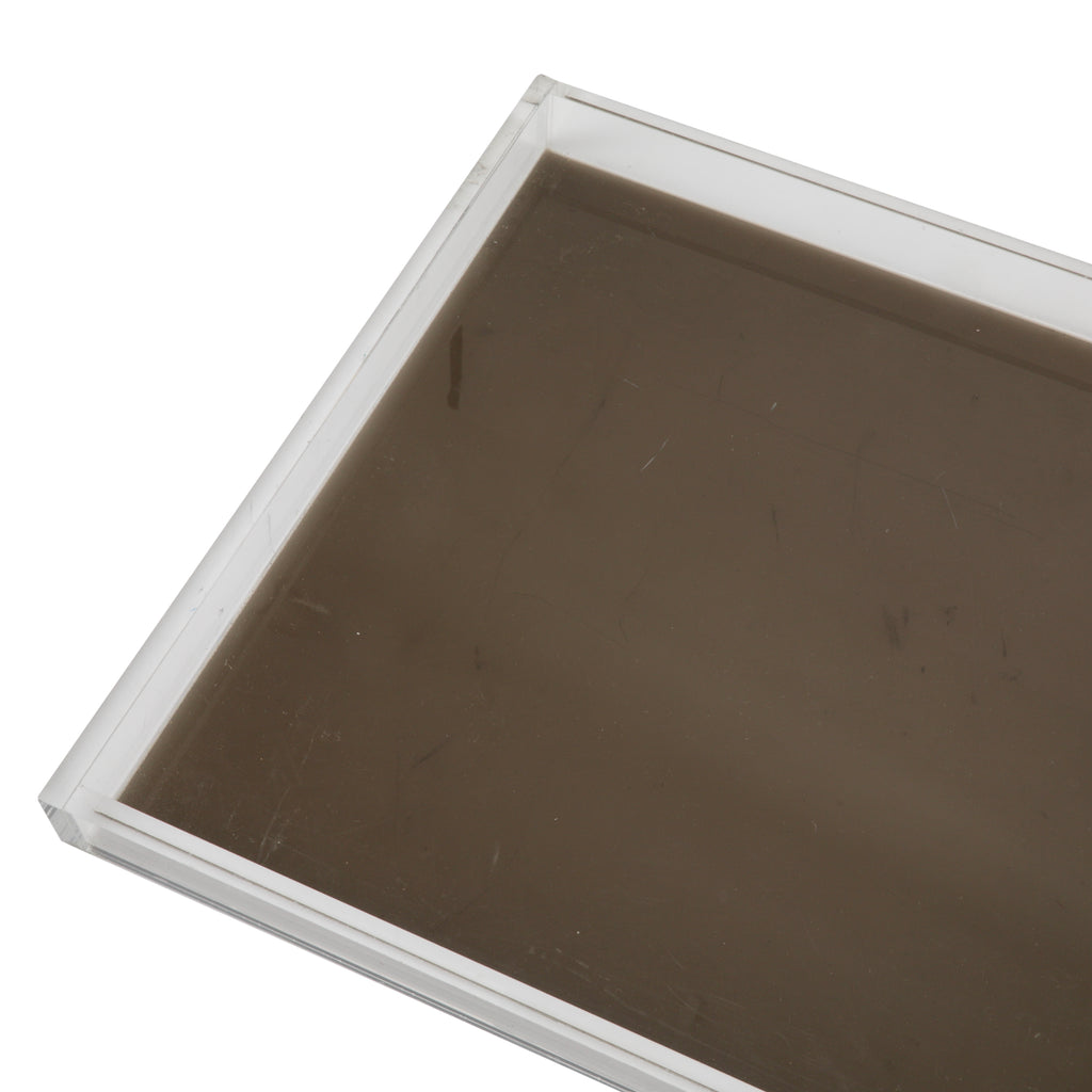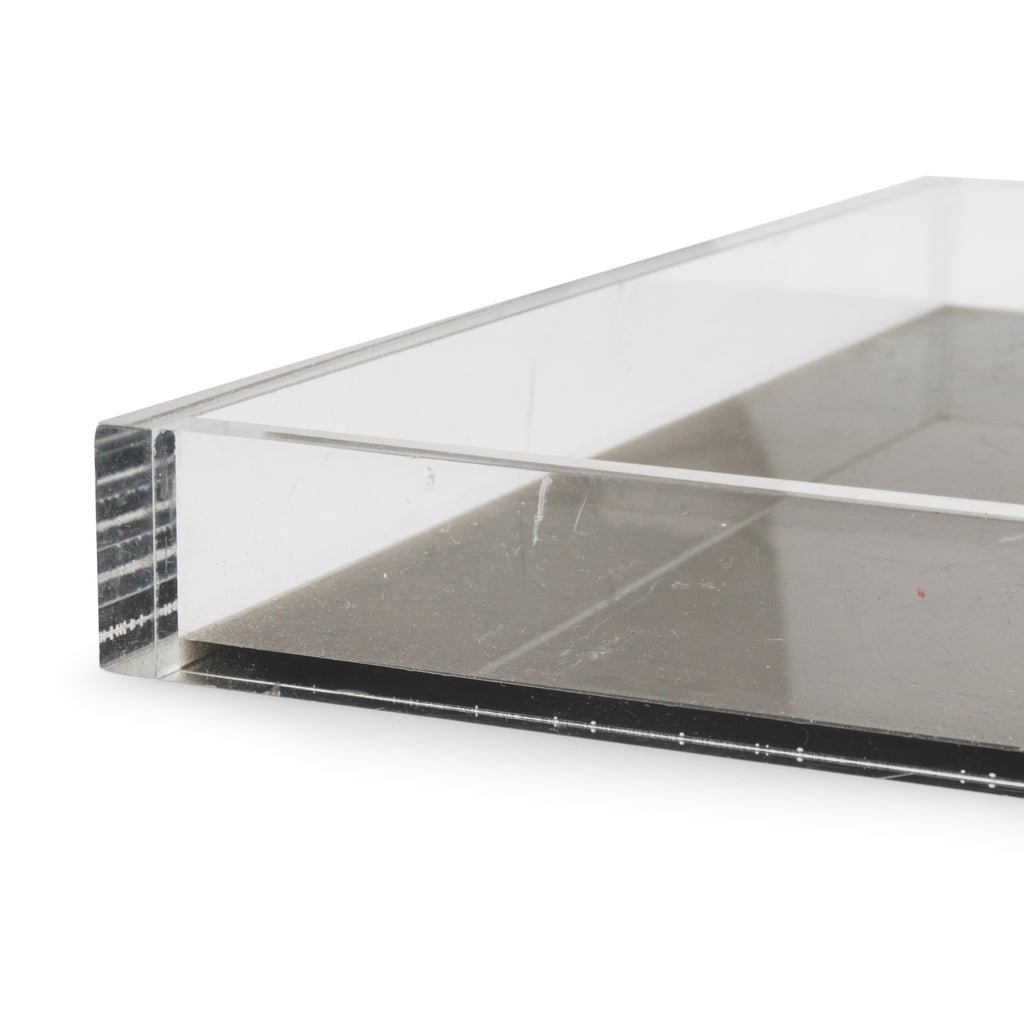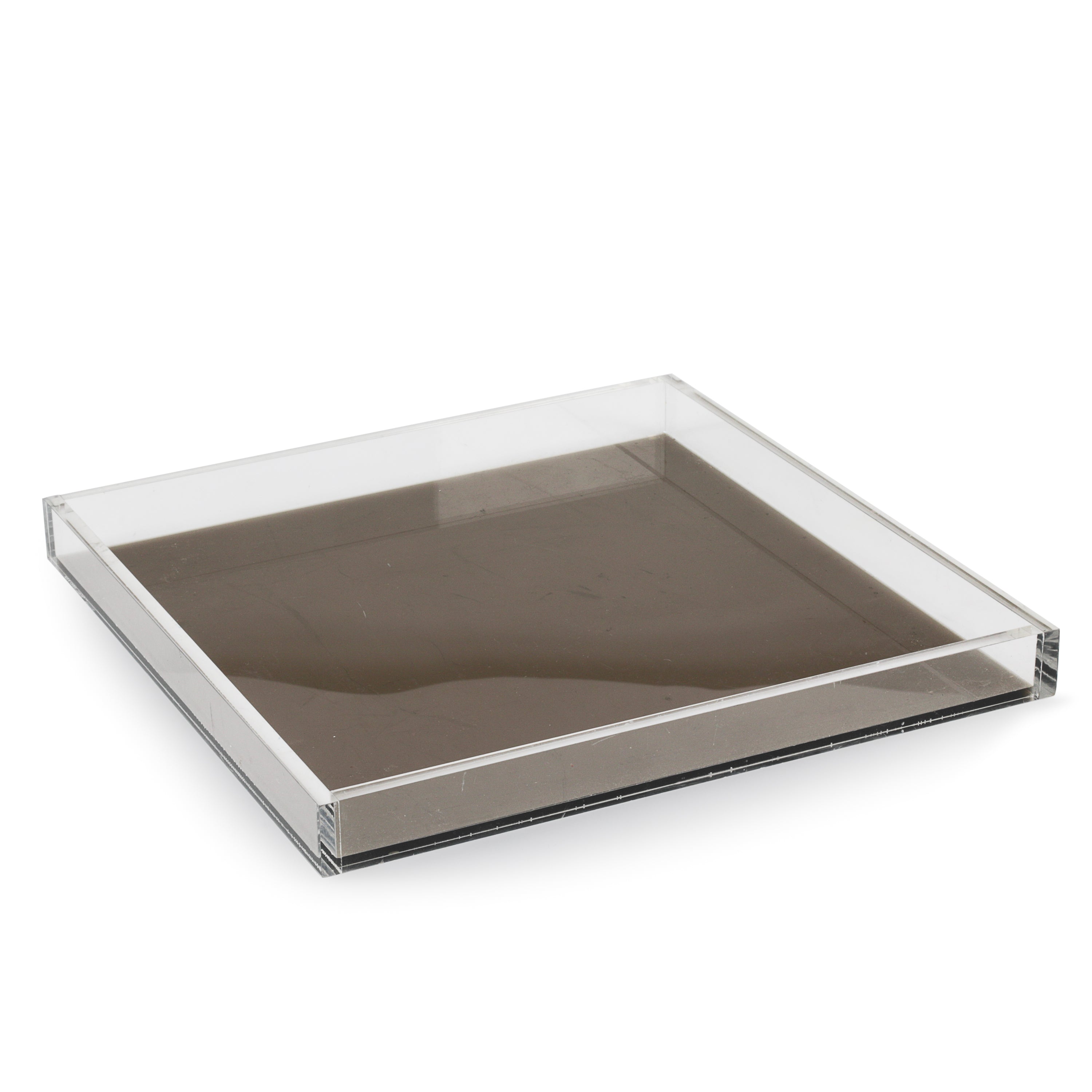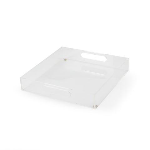 Details: Chrome tray with acrylic tube handles. Dimensions: 5" H x 14" W x 14" D