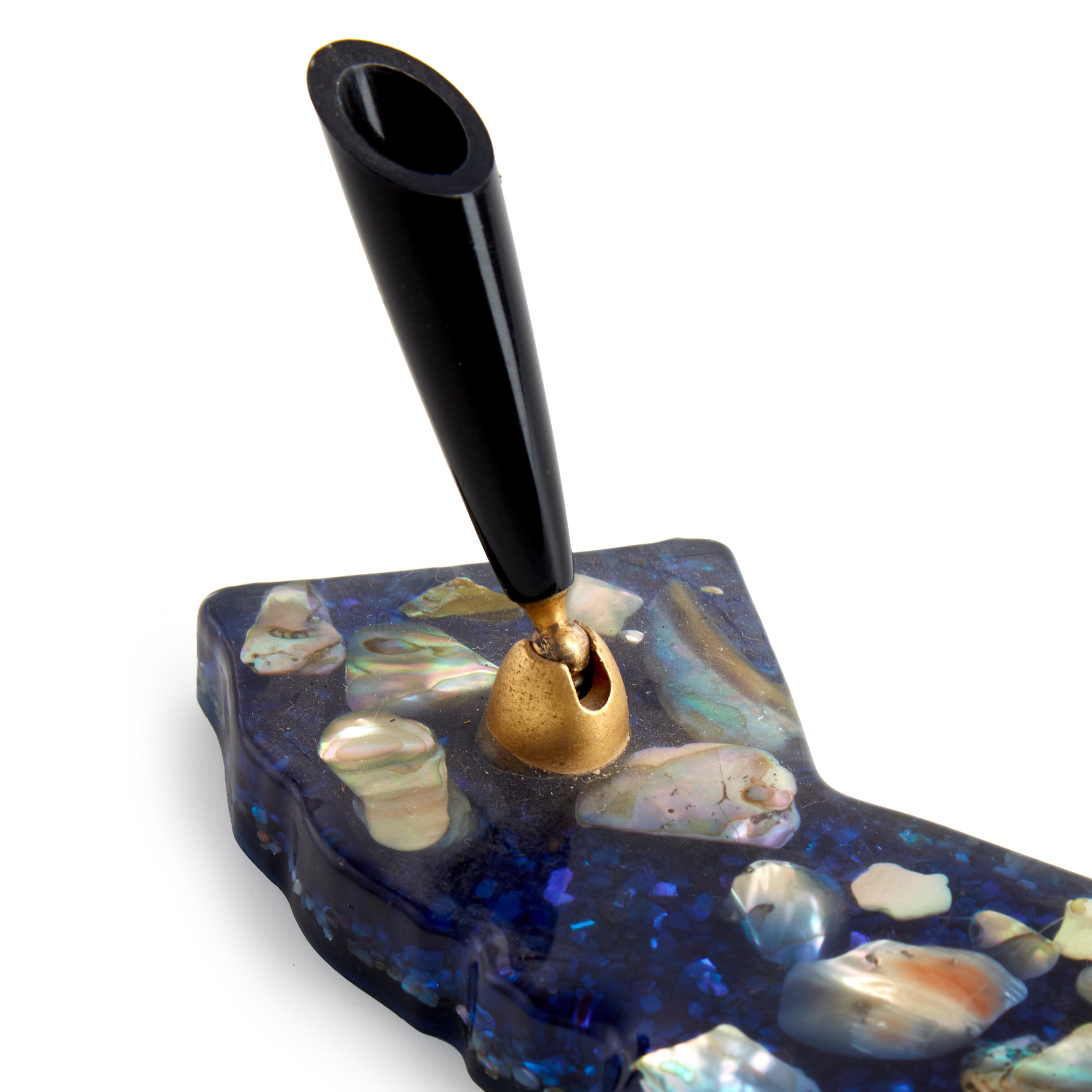 Blue Epoxy and Sea Shell California Souvenir Pen Holder Pen HolderDimensions: 10" x 2" x 5"