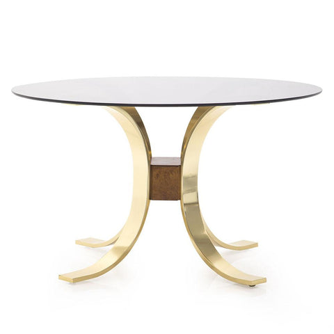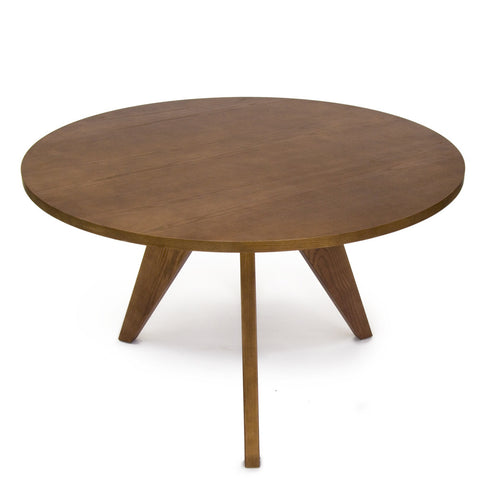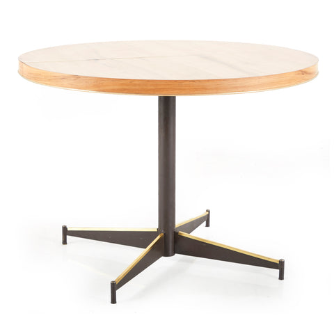 Details: Mid-century circular table with dark wood top and metal base. oval top version available as well (rented separately).Dimensions: 20" H x 18" W x...