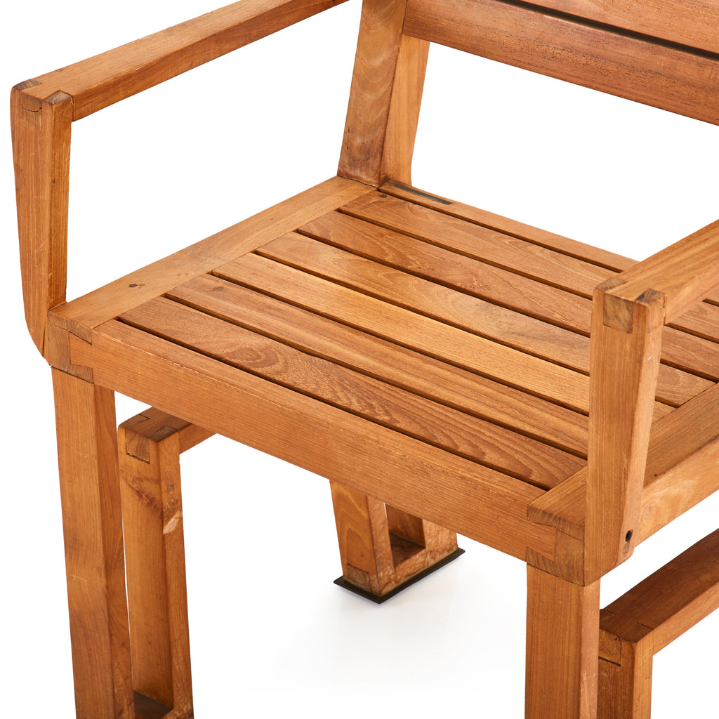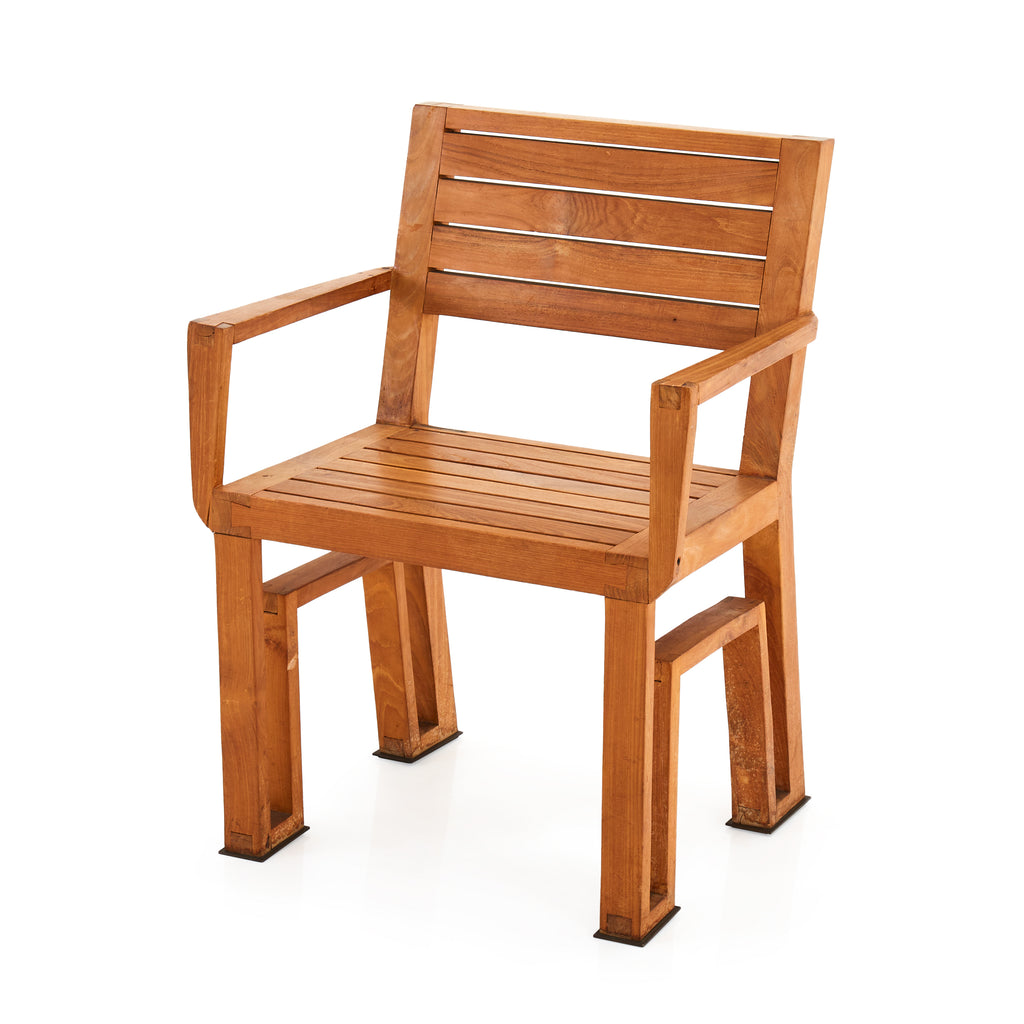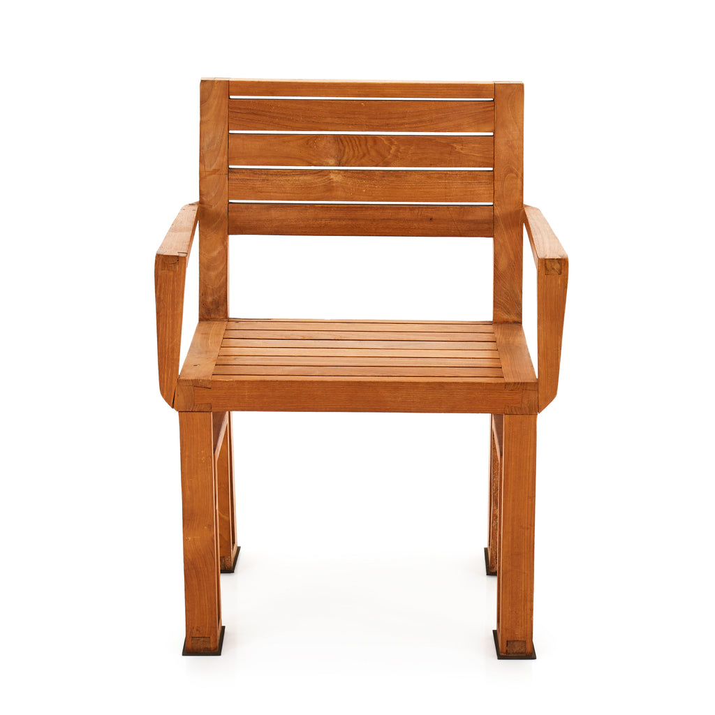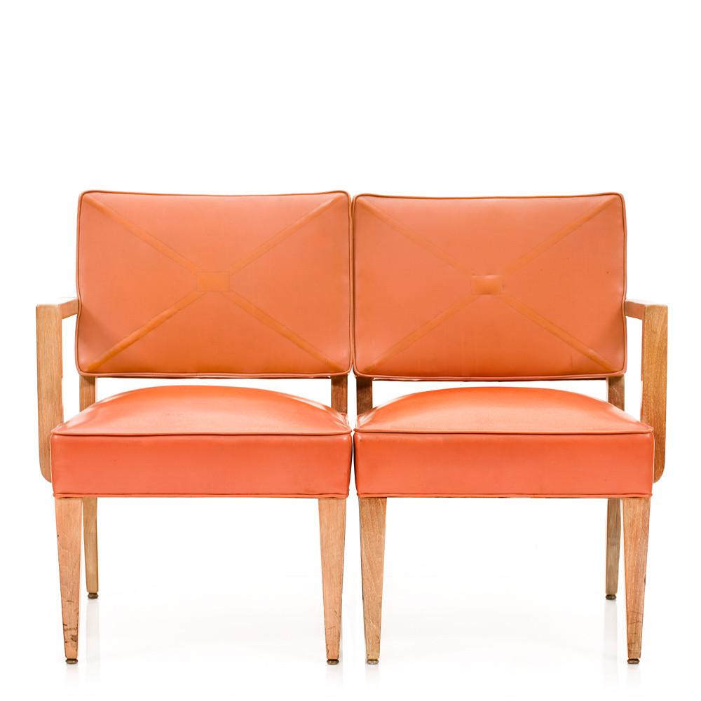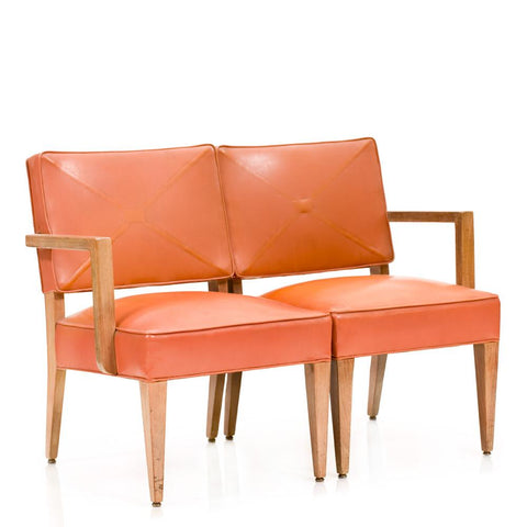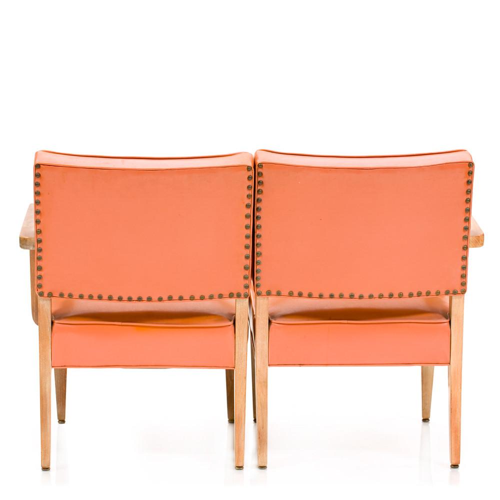 Details: High-backed orange framed chair with white cushion seat and wavy back slates (available with matching table) Dimensions: 40" H x 15" W x 16"...
