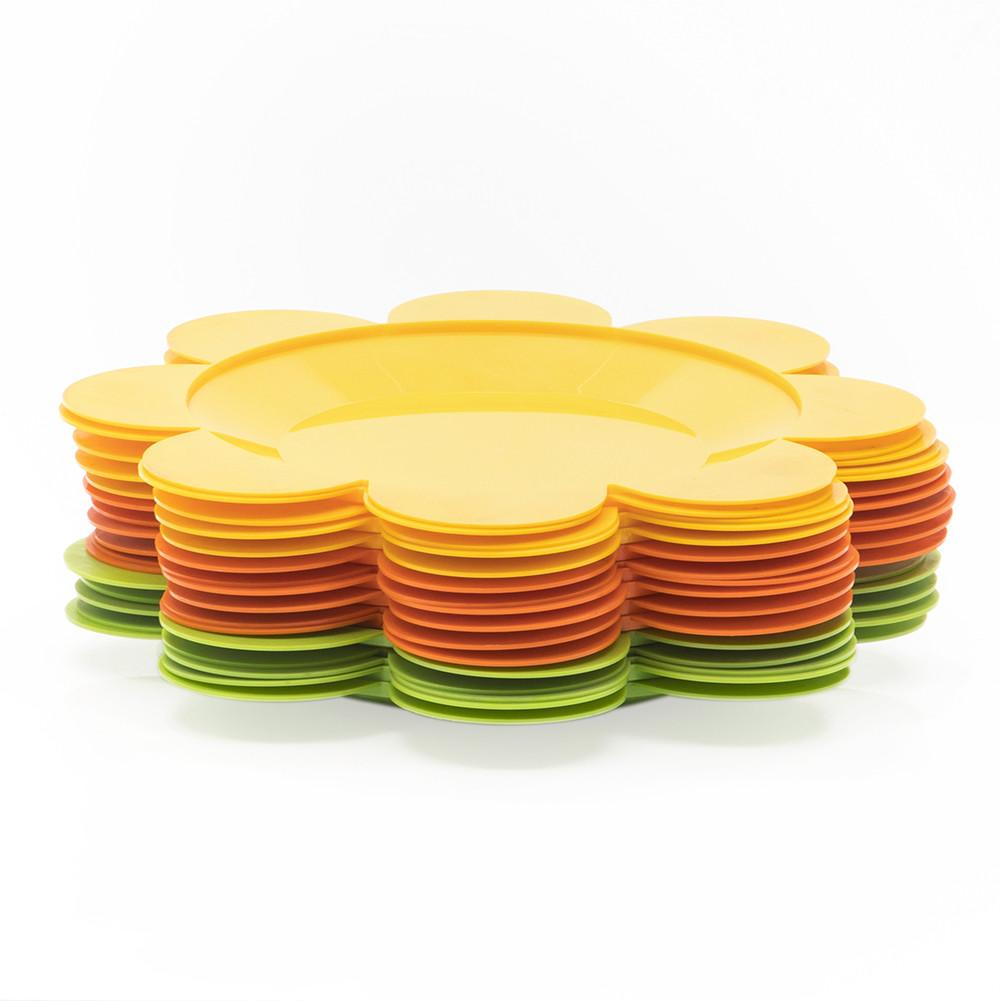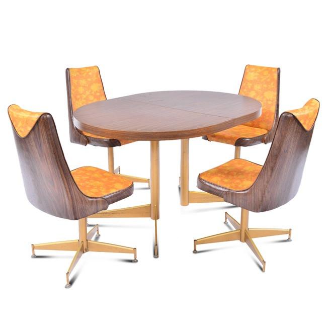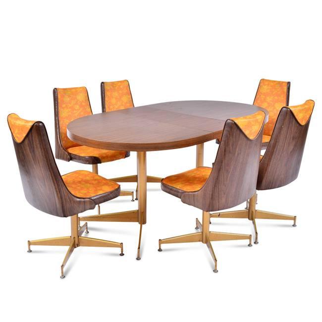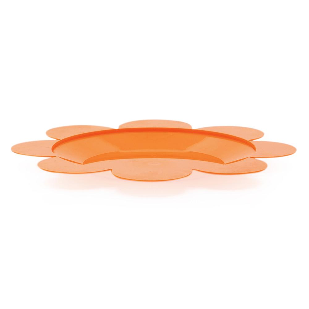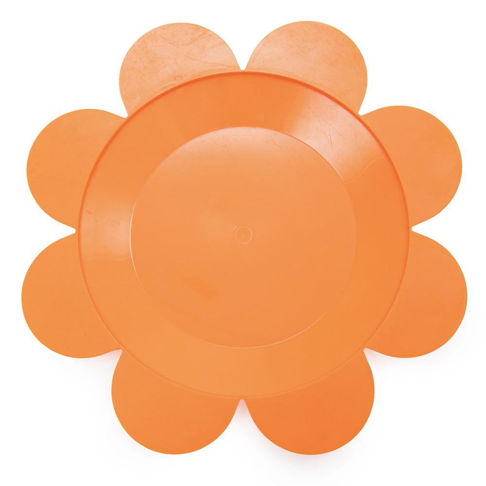 Details: Round dining table with white top and orange slice / flower pattern top, metal orange base (matching tall back kitchen chairs also available, separately) Dimensions:...