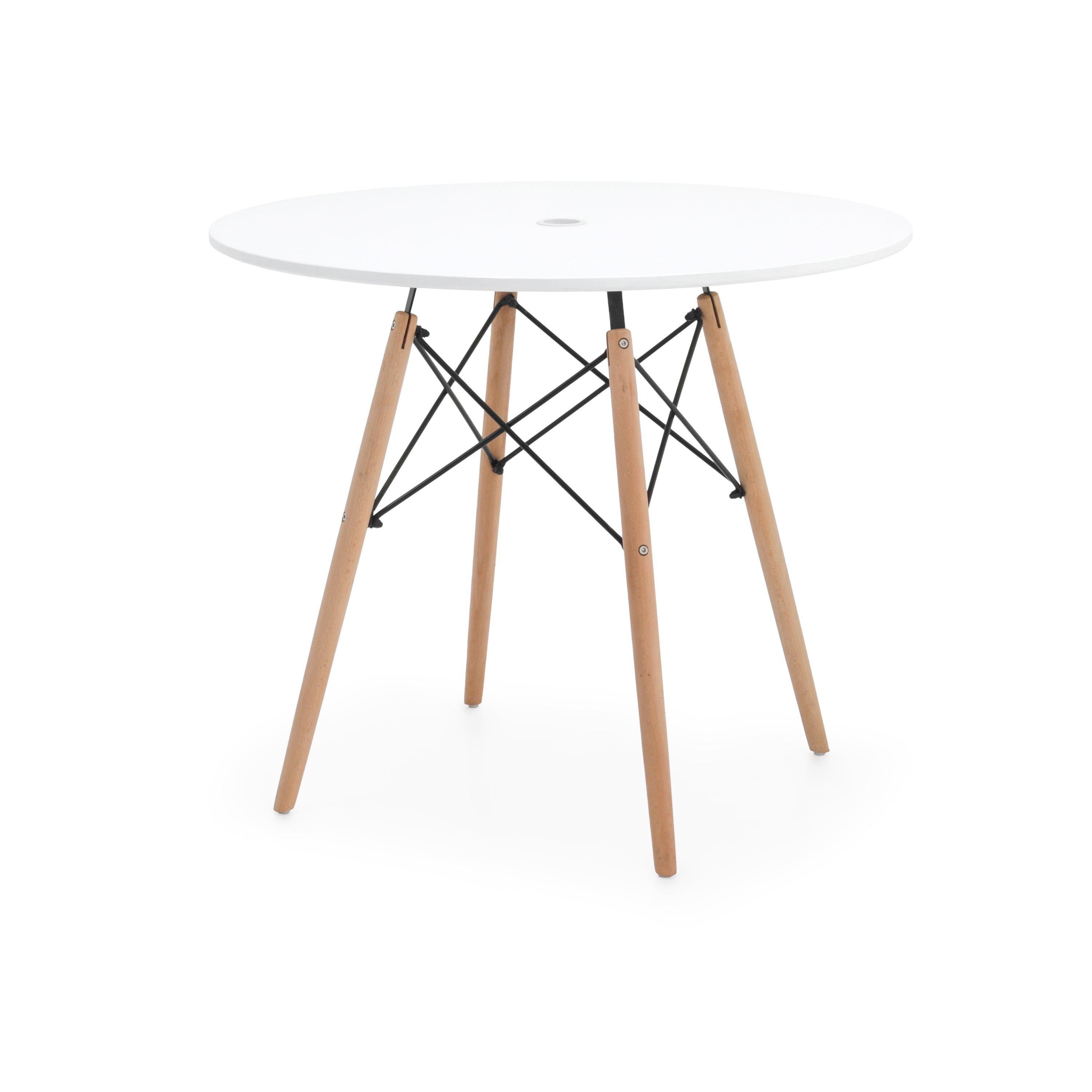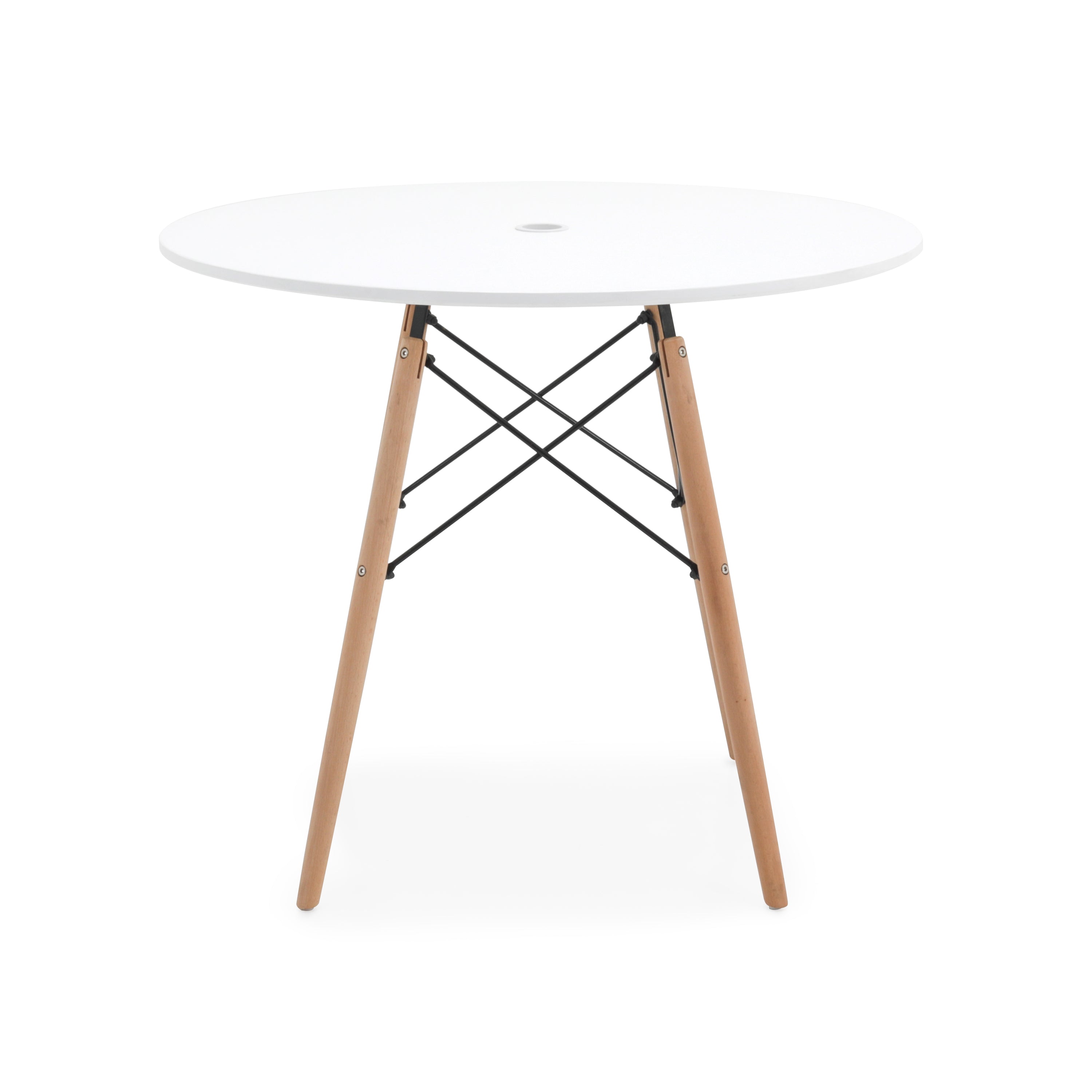 Details: Large round wood dining table. Some noticeable wear and tear on table top. (TEAM LIFT, REMOVABLE TOP WITH FRAGILE EDGE) Dimensions: 29.5" H x...
