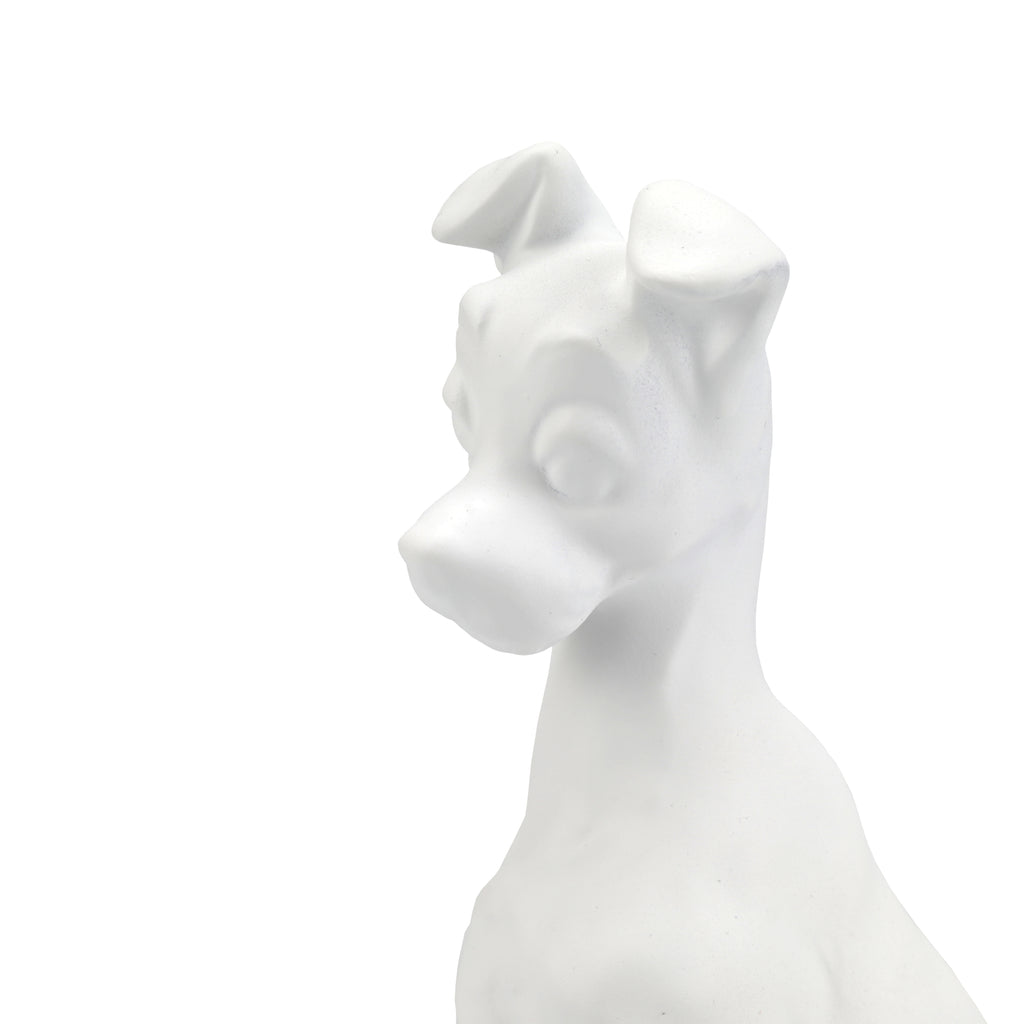 Details: Painted white ceramic dog with a matte finish. Dimensions: 6.5" H x 2" W x 4" D
