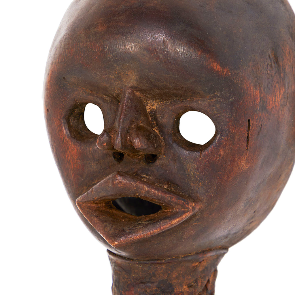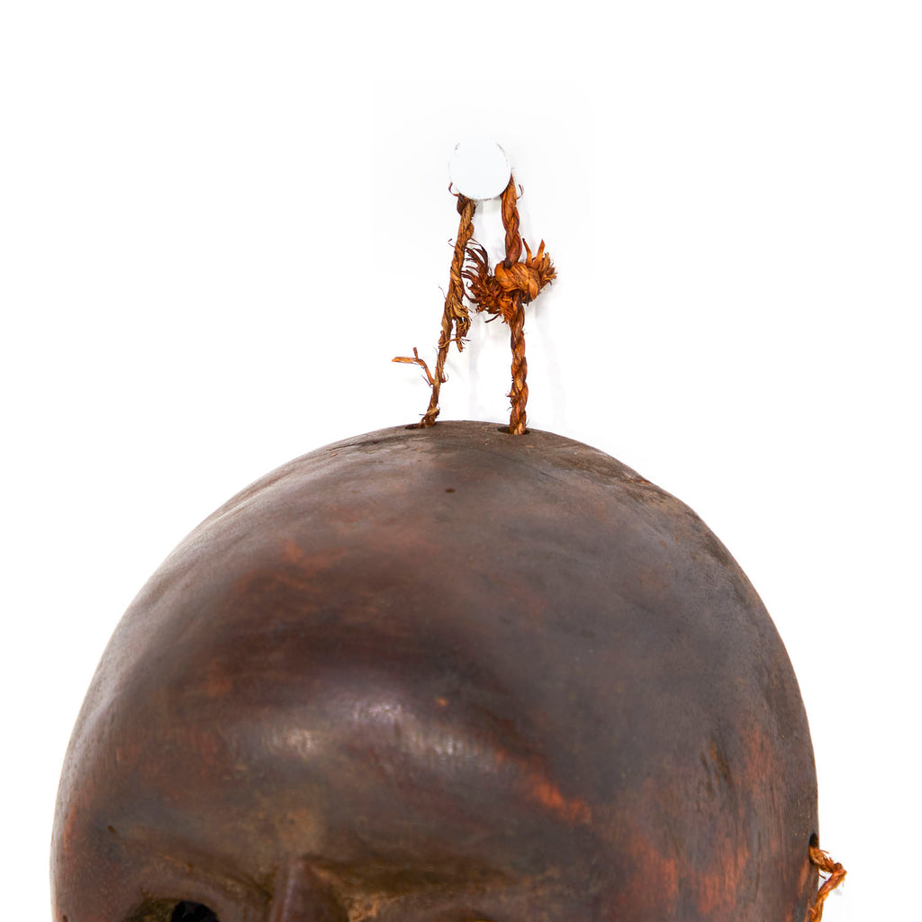 Details: Decorative brown wooden tribal mask Dimensions: 9" H x 5" W x 4" D Quantity: 1