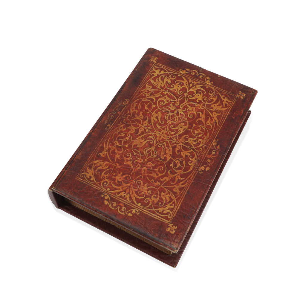 Details: Faux book with ornate front and hollow center for "storage." Dimensions: 2" H x 9.5" L x 6" D