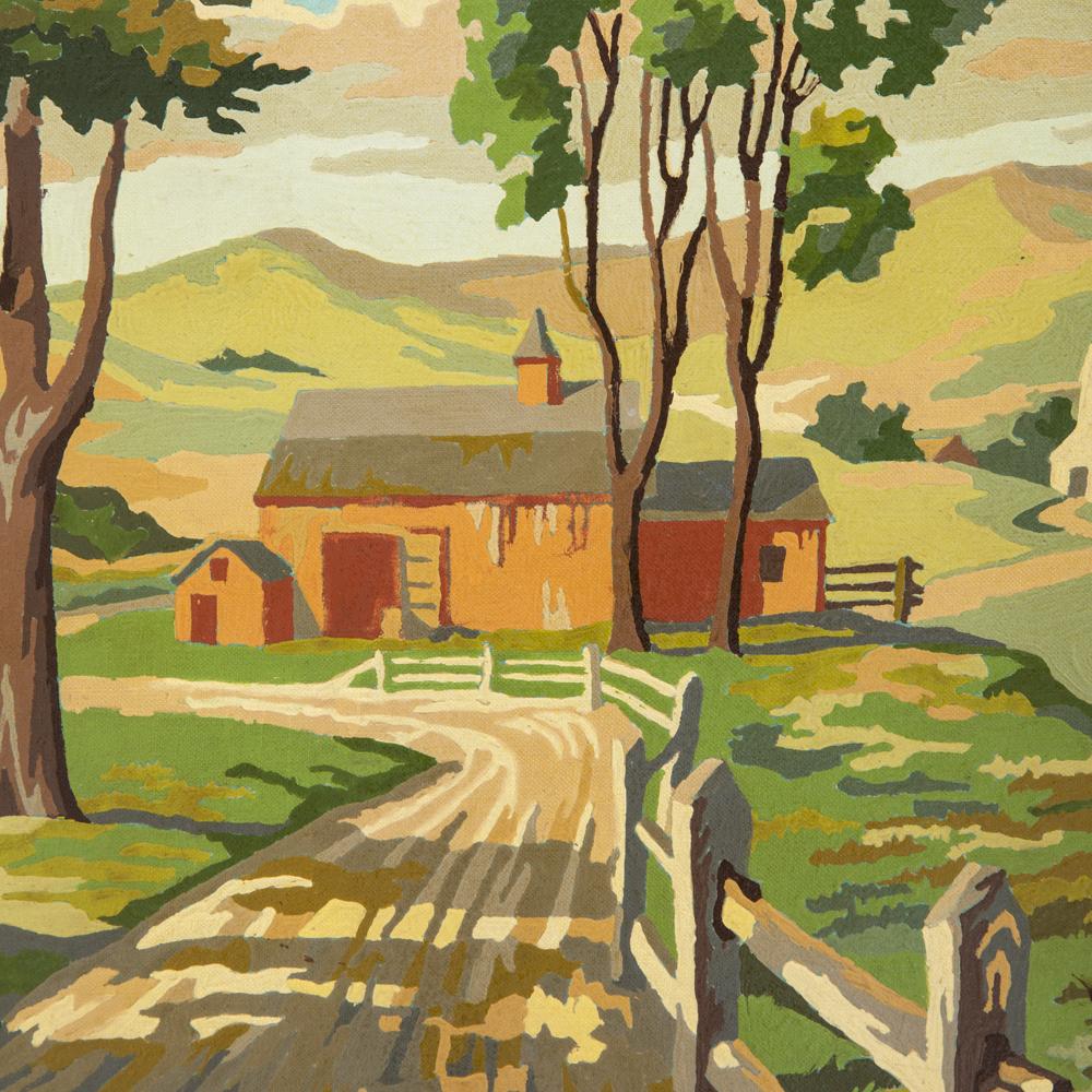Details: Paint by Numbers artwork of a country road barn Dimensions: 27" W x 21" H Quantity: 1