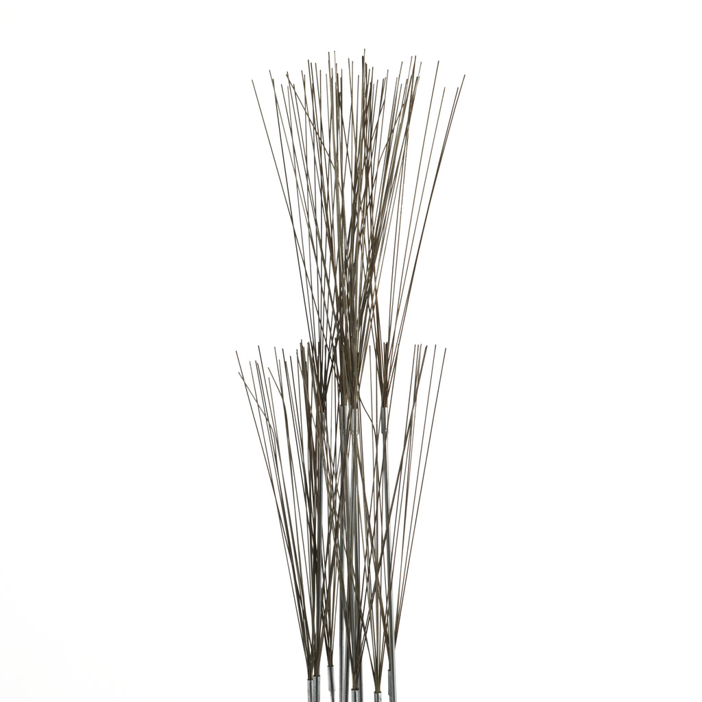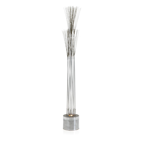 Details: Thin metallic wire frame floor lamp with white fixture and round chrome base. Table lamp version available. Rented separately. Dimensions: 62" H x 10"...