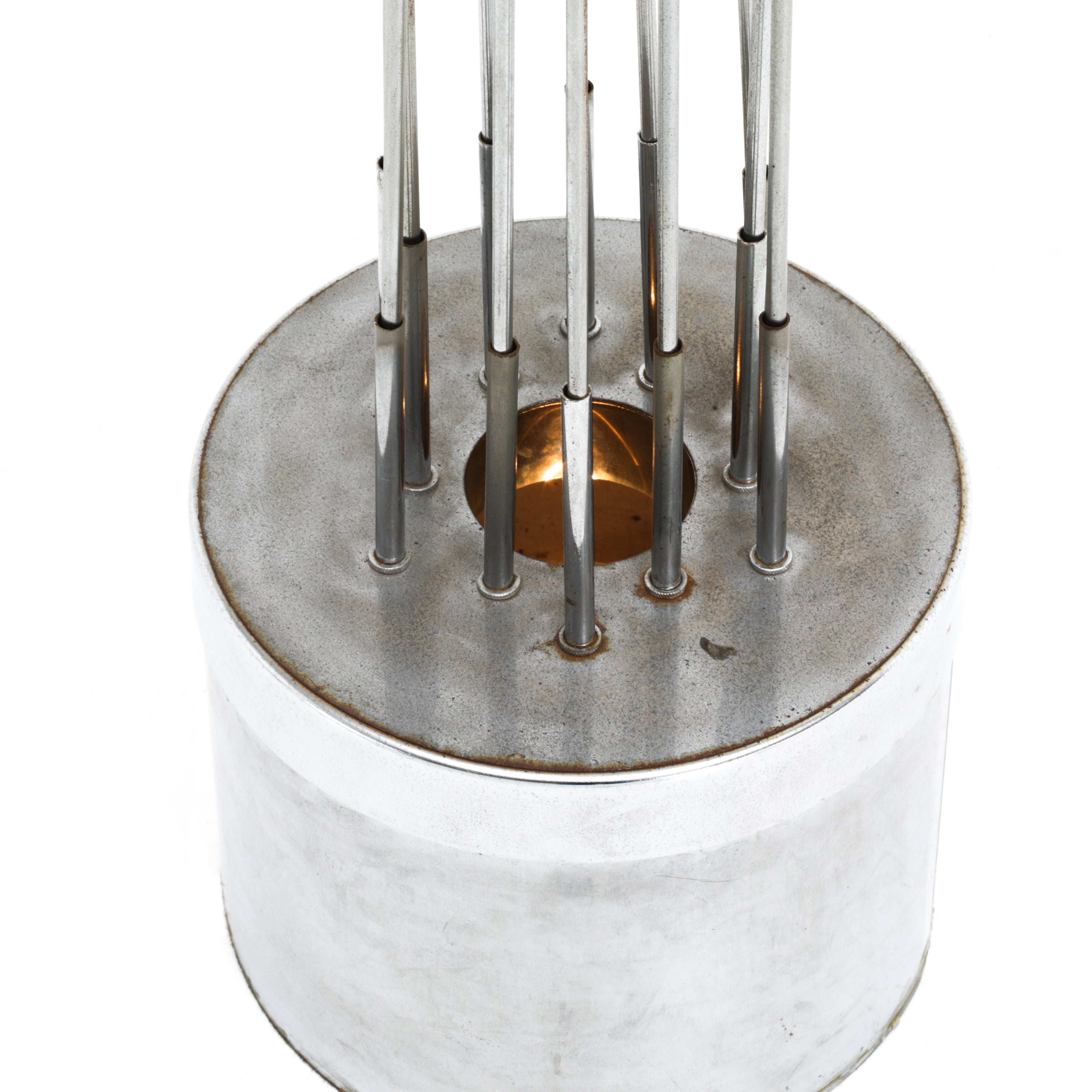 Details: Aluminum Stacked Cones (Xmas Tree Style), Blue Neon Lights Under the Cones, Lucite Round Ball on Top, Floor Lamp, Missing Power Supply Dimensions: 51" H...