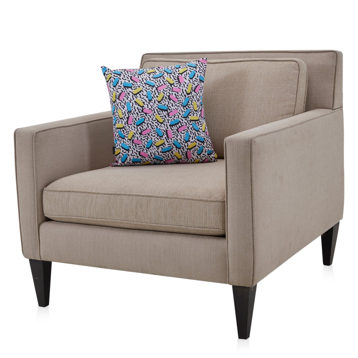Details: Abstract wall sculpture of a wooden guitar with white and yellow checkered background, three spheres, and white and blue circular ornamentation Dimensions: 48" H x 12"...
