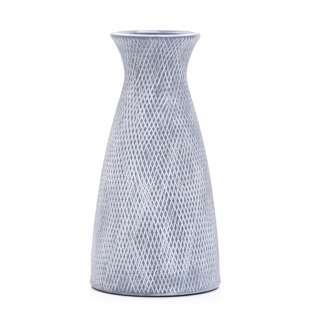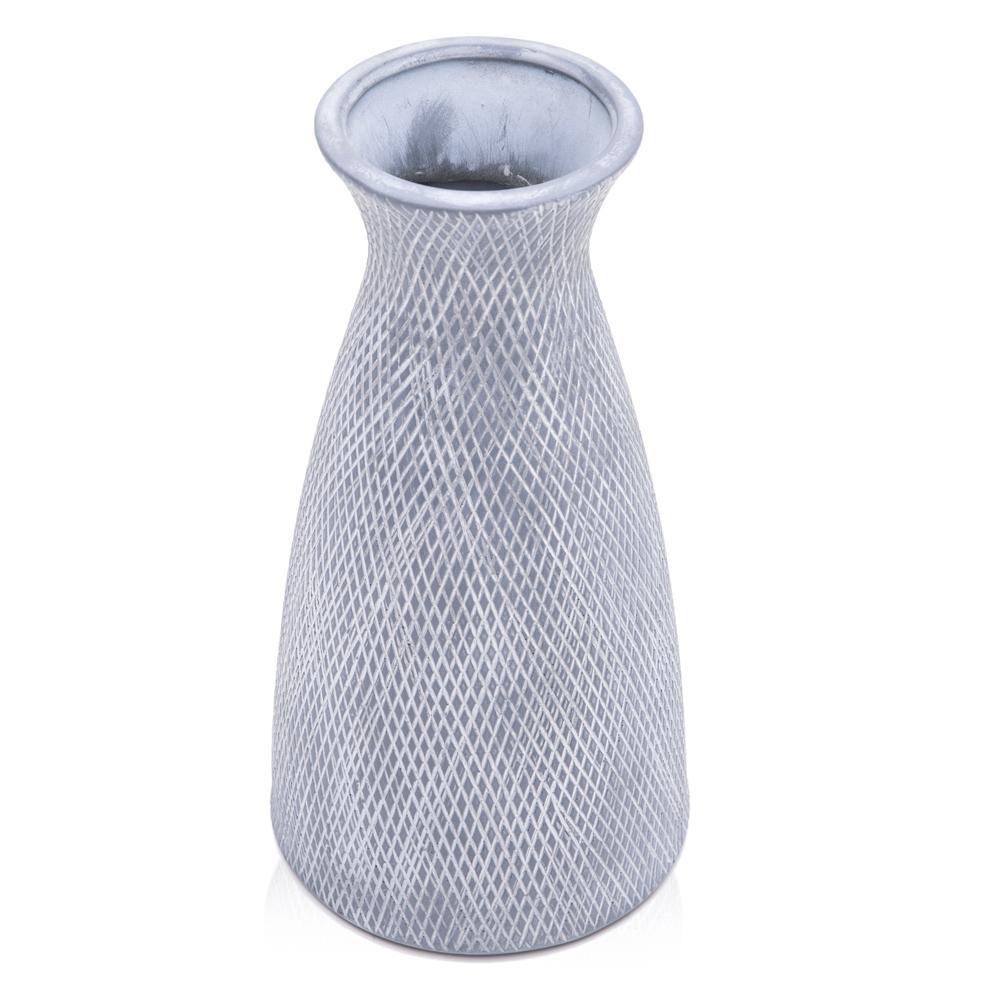 Details: Blue-grey tapered mouth vase with white cross mark texture Dimensions: 9" H x 4" W x 4" D