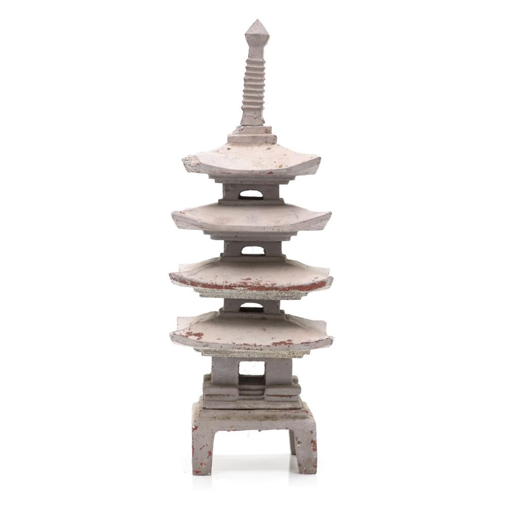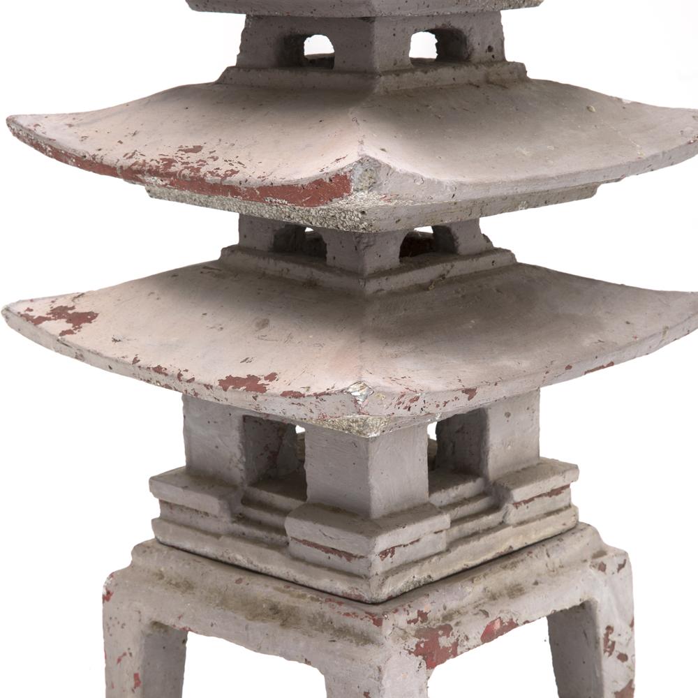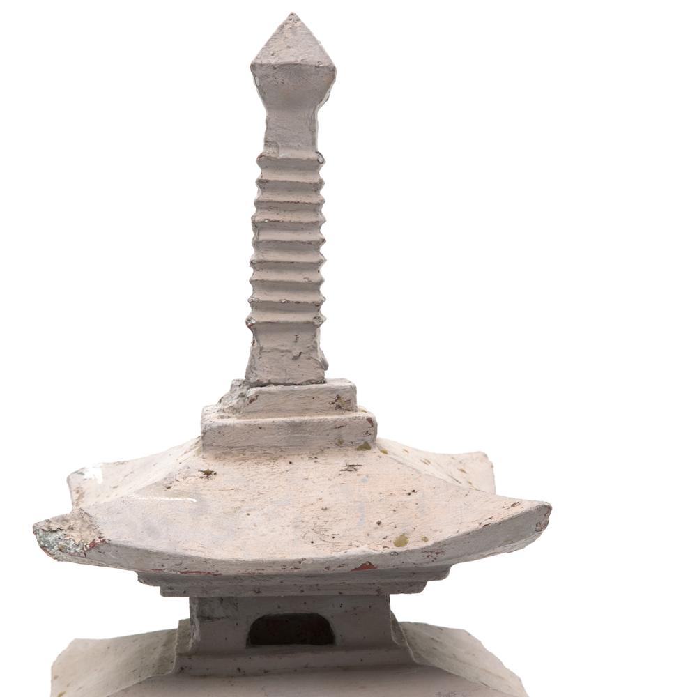 Details: Brown and white painted wood geometric table sculpture with two-toned angular segments Dimensions: 20" H x 10.5" W x 10.5" D