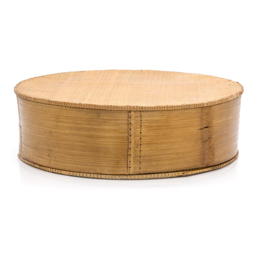 Details: Light wood hat box. Dimensions: 16" W x 6" H