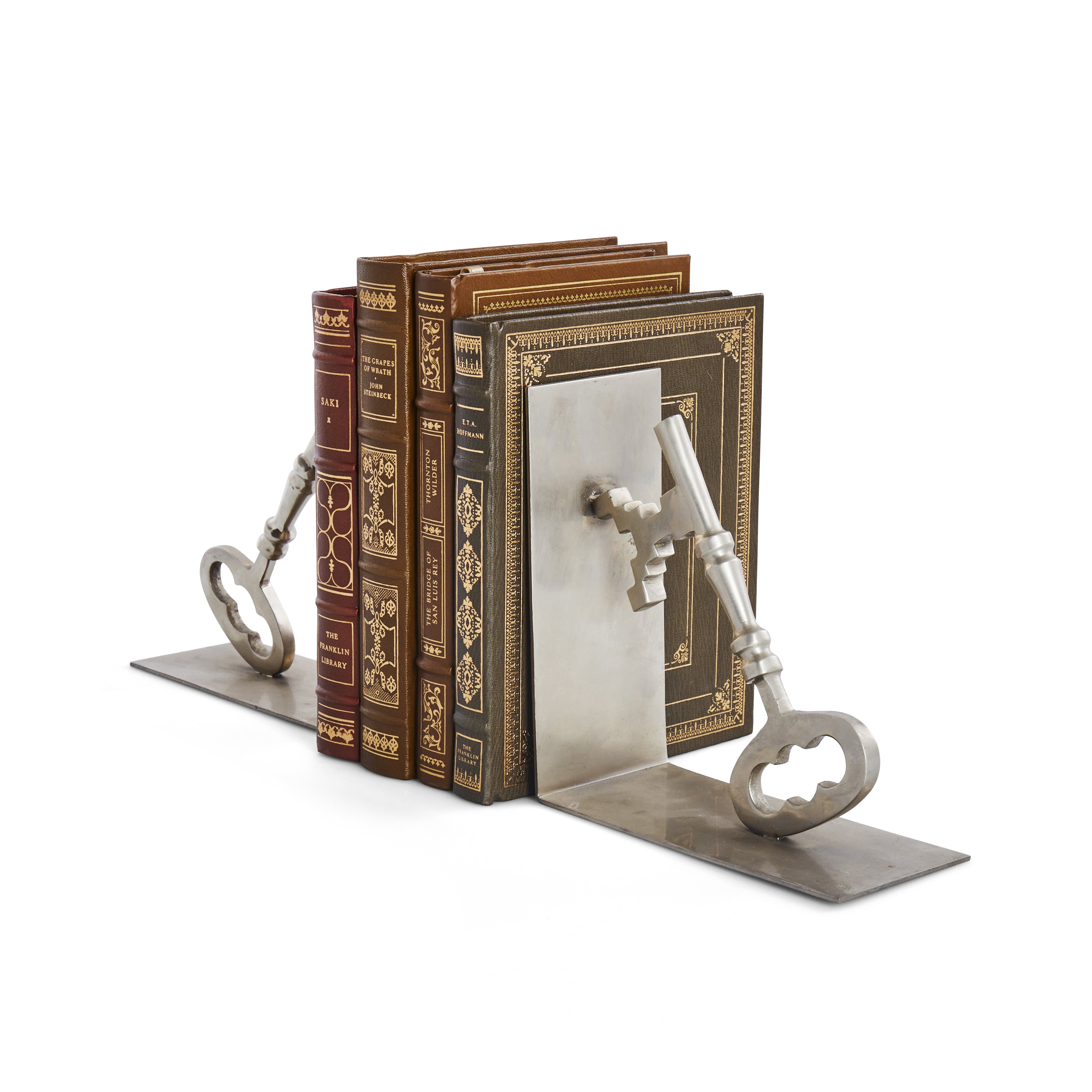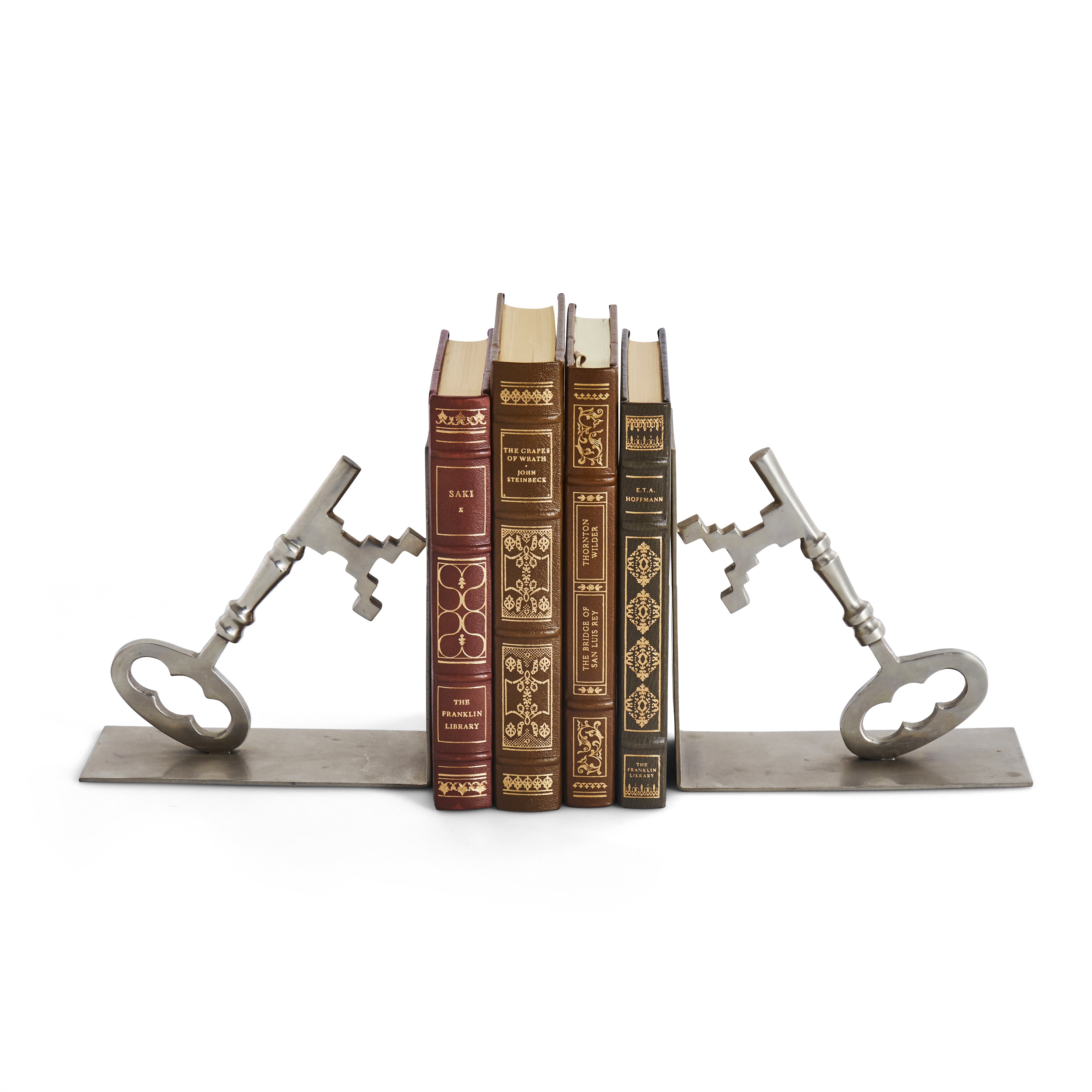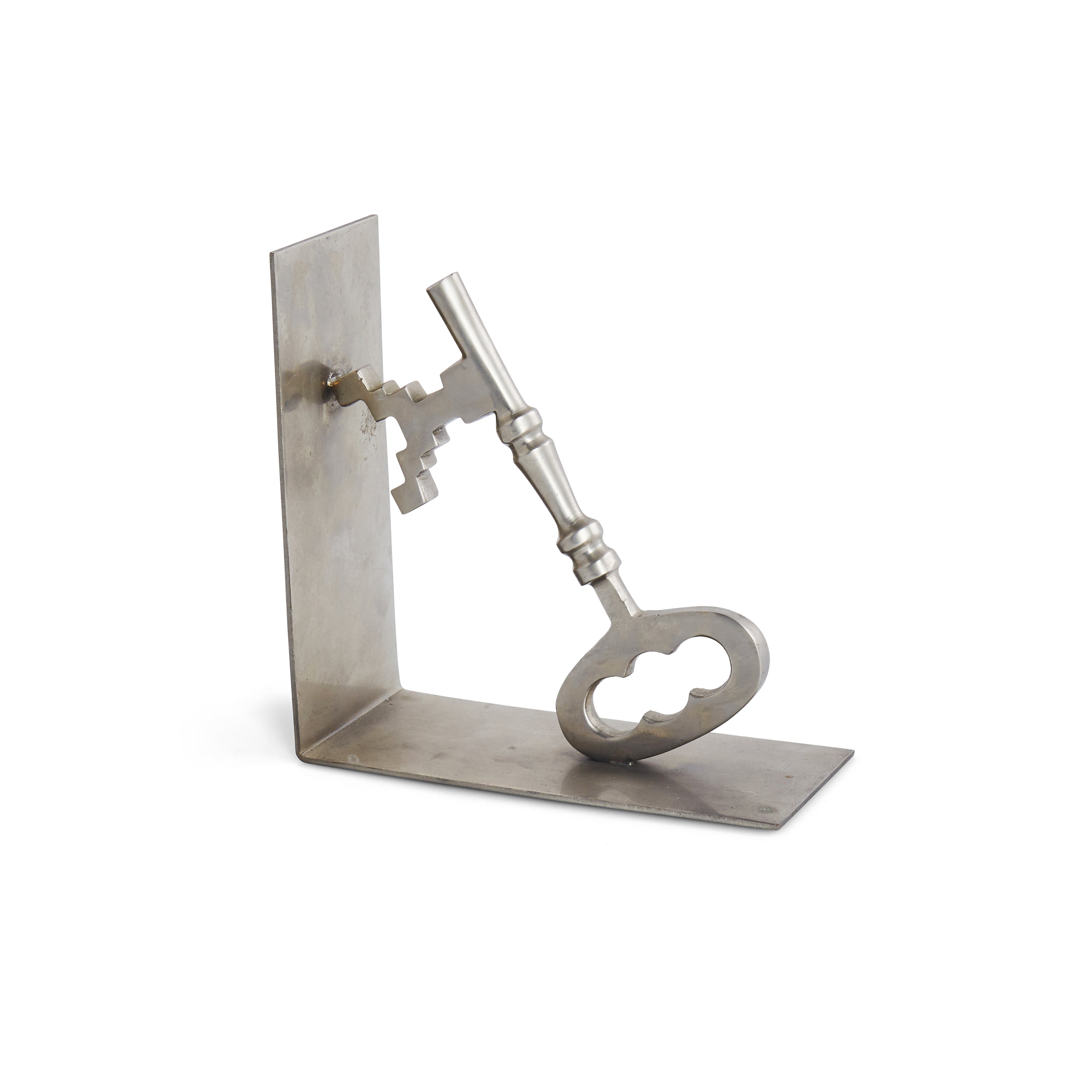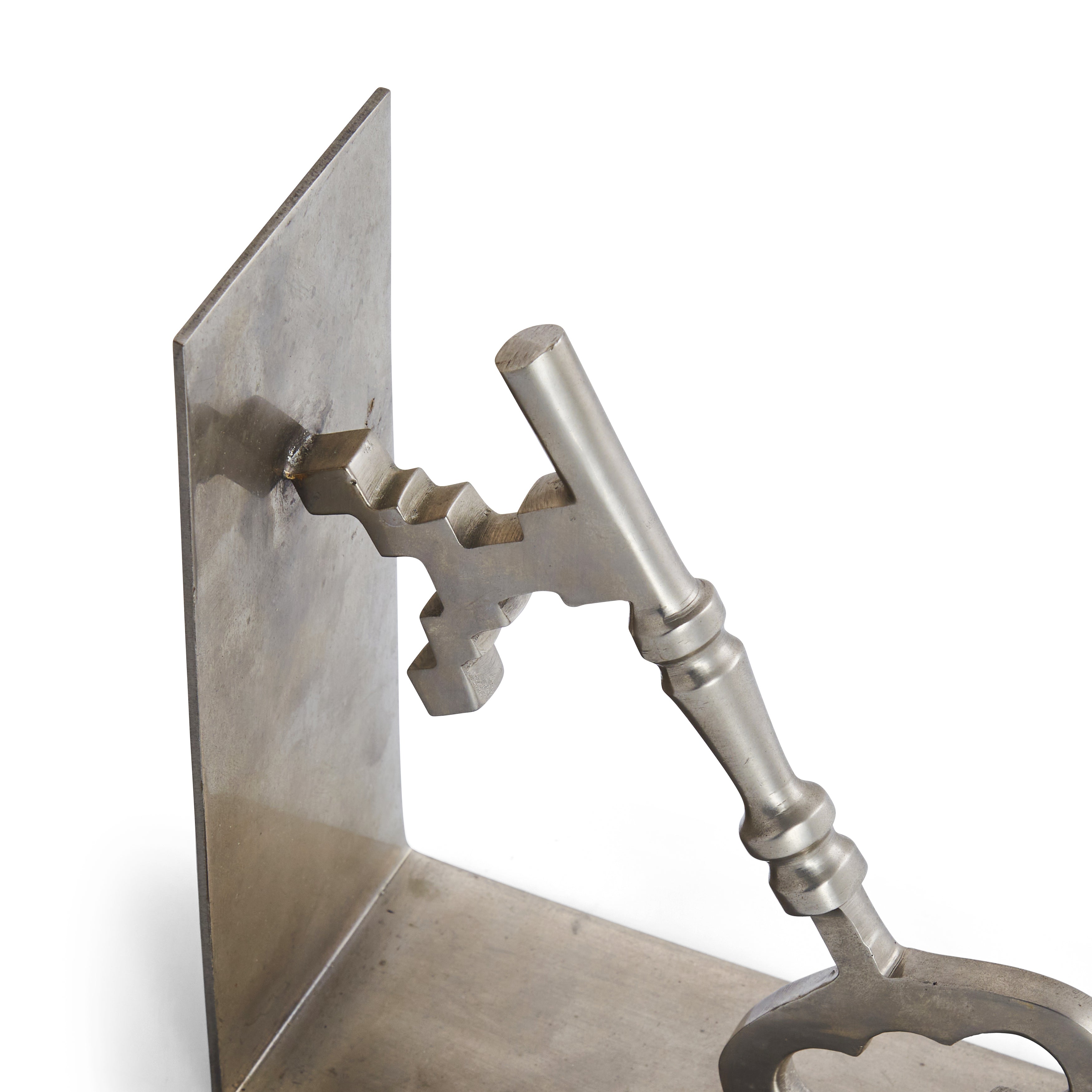 Details: Silver book end with large key design Dimensions: 7" H x 3" W x 7" D