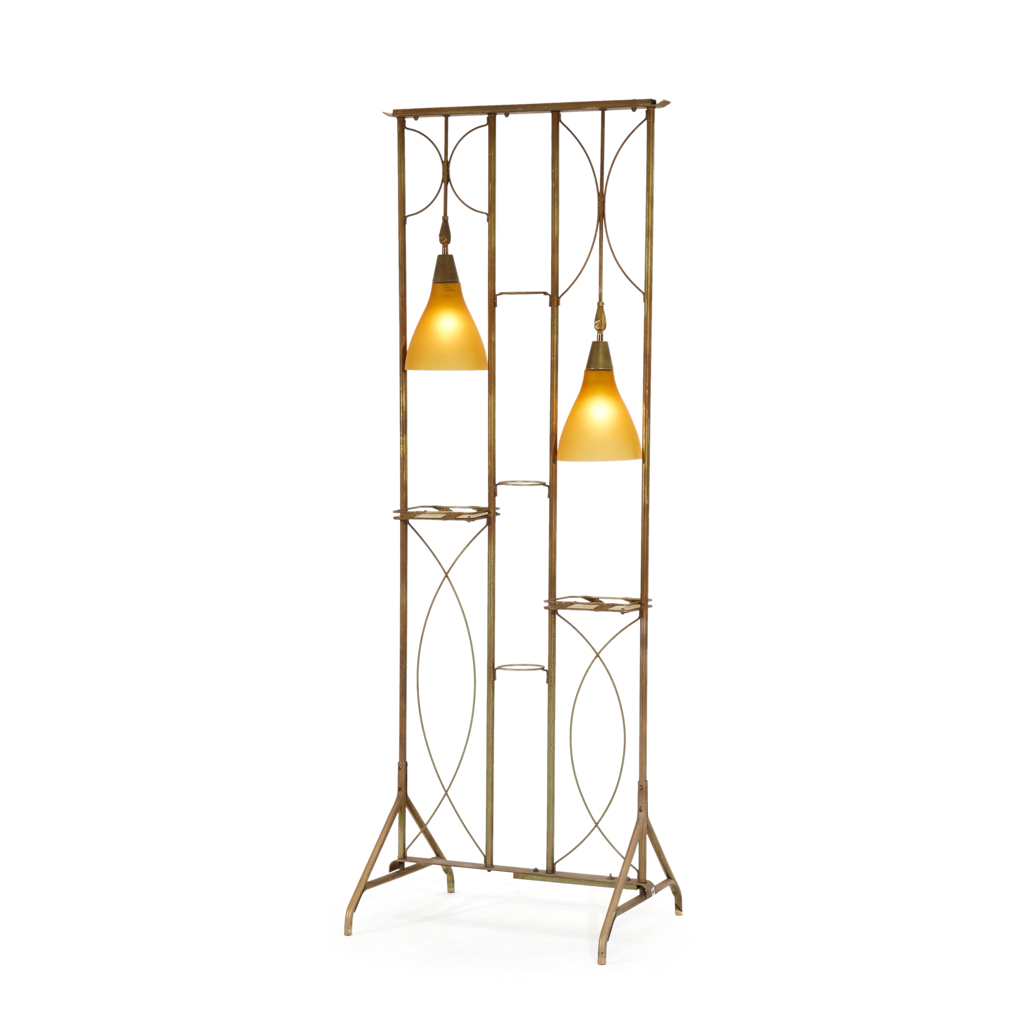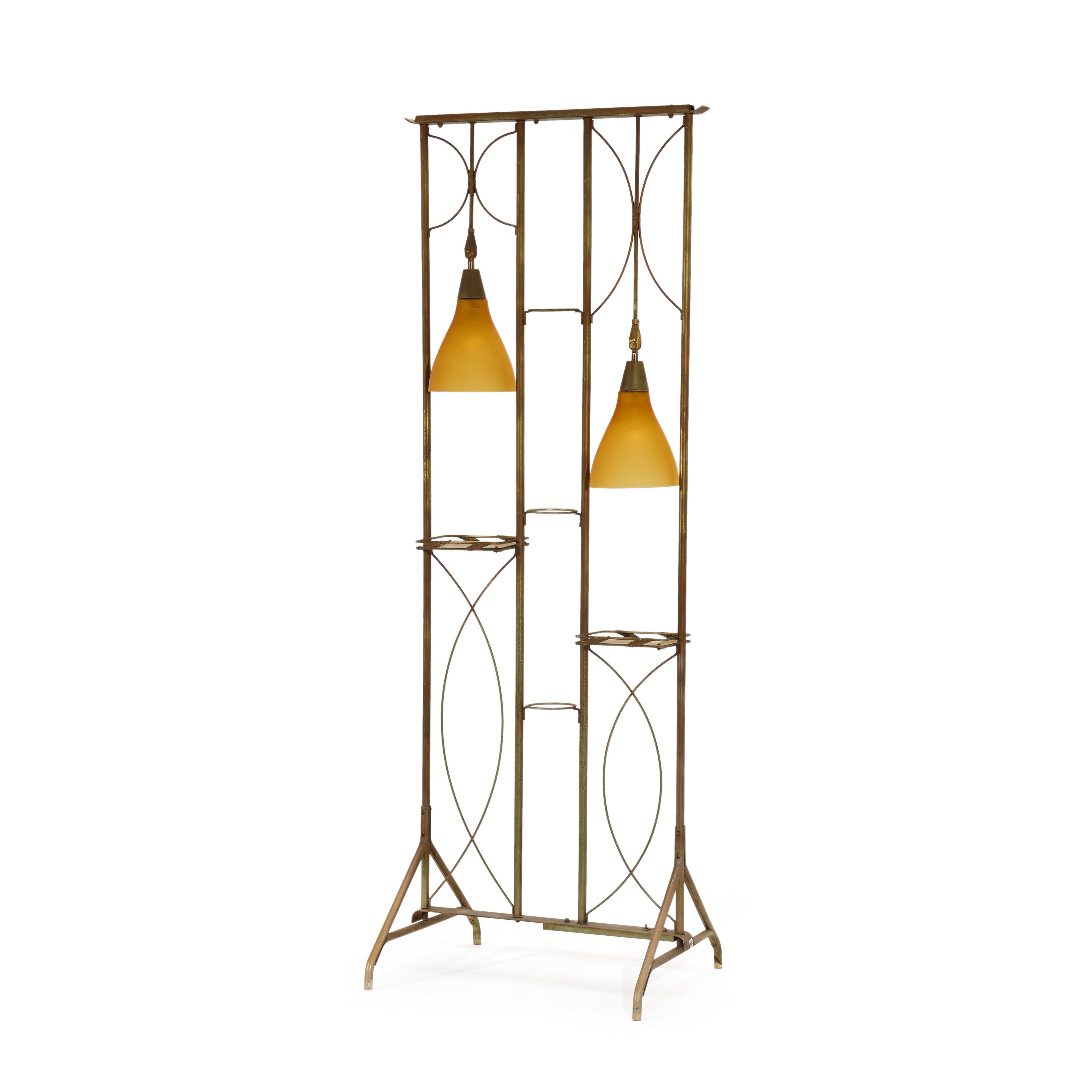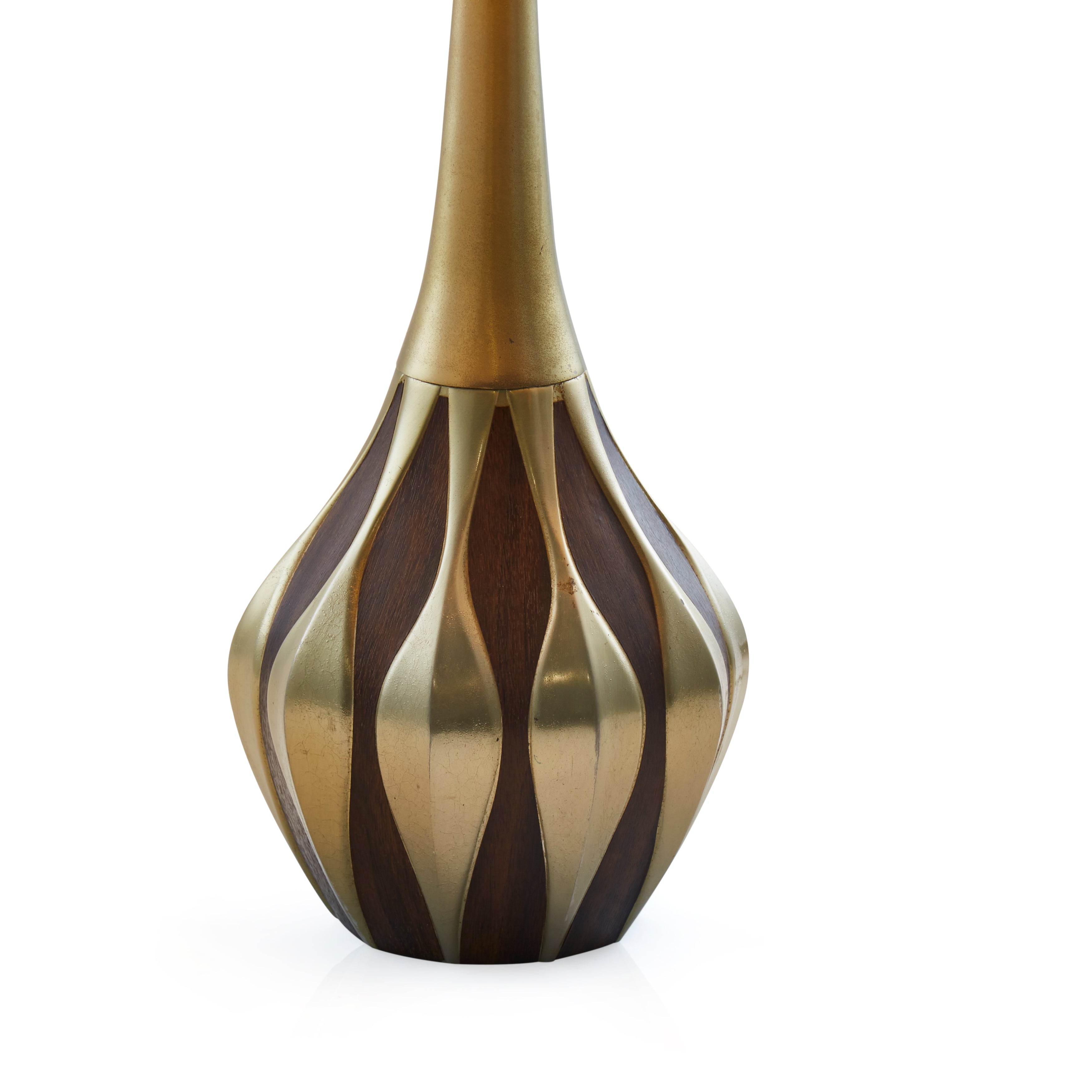 Details: Brown metal lamp with matching shade with round "puddle" base. Molten chocolate "pouring" from shade to form base.