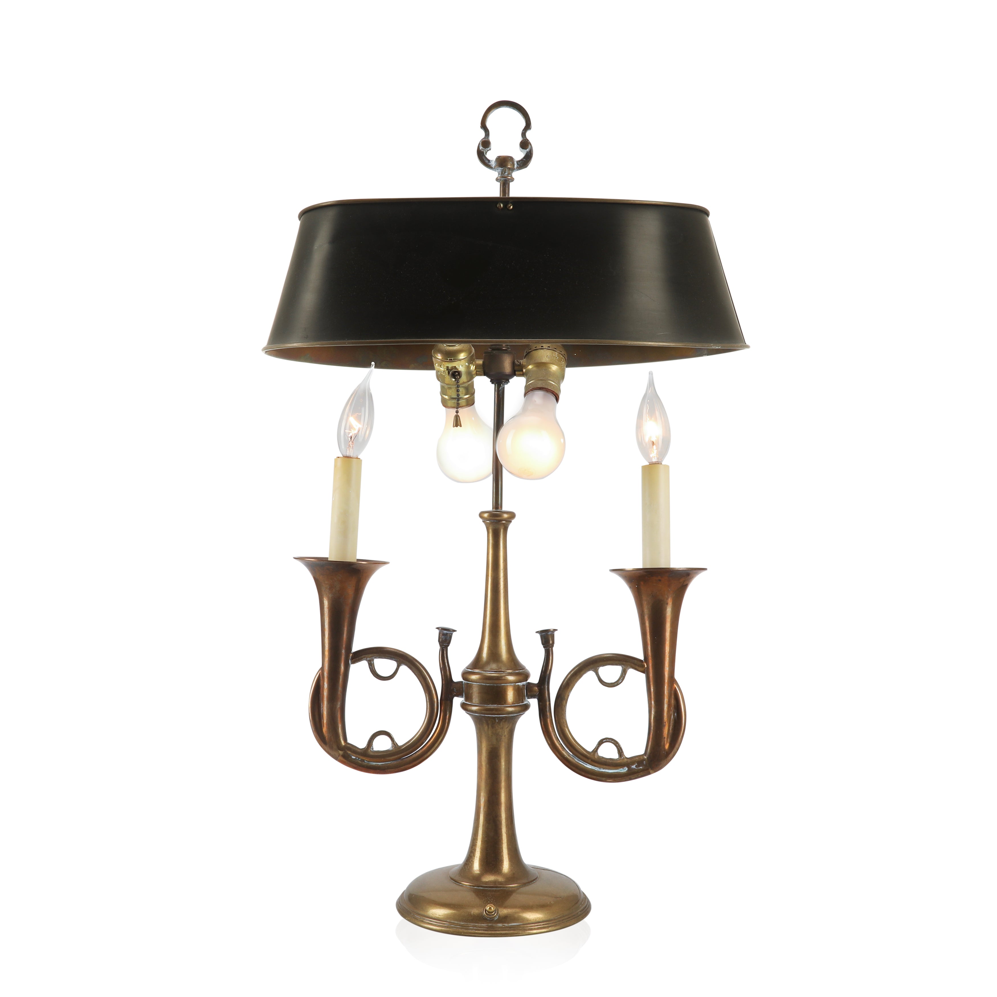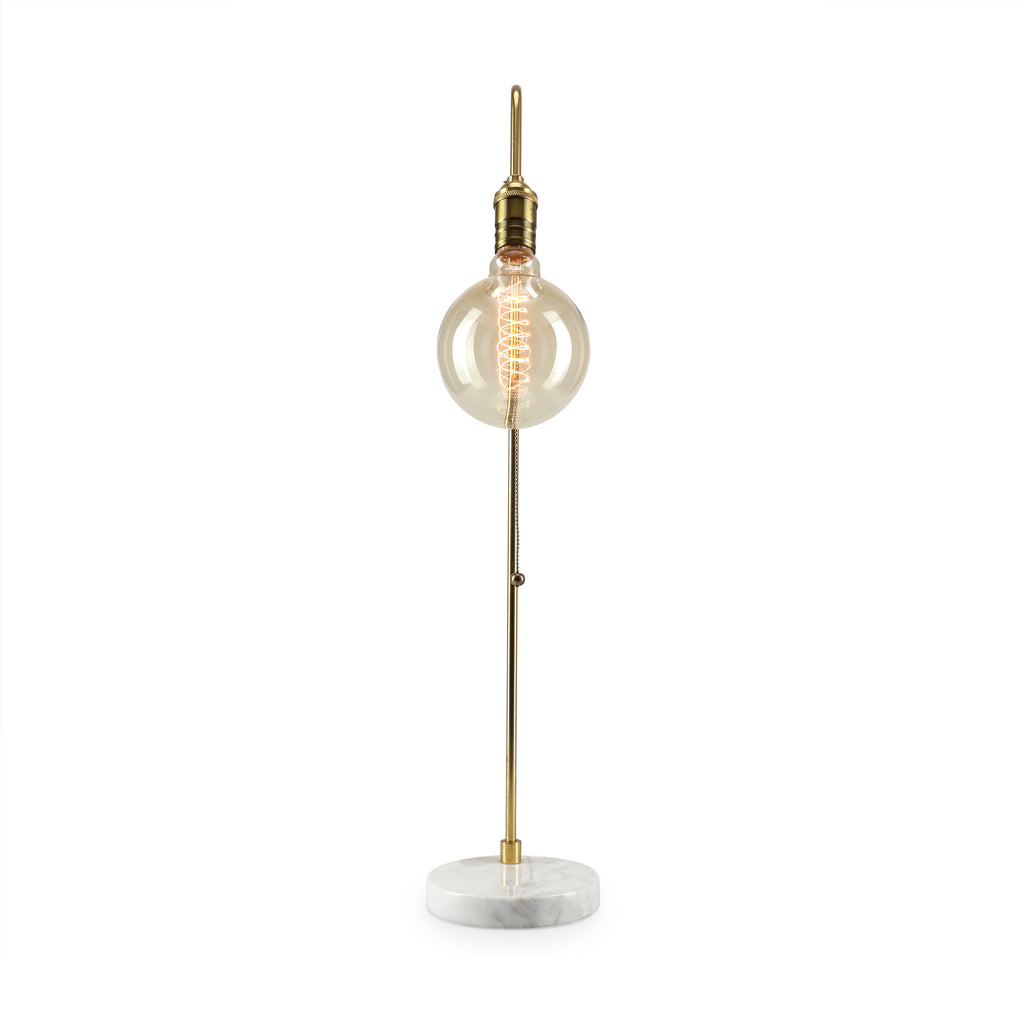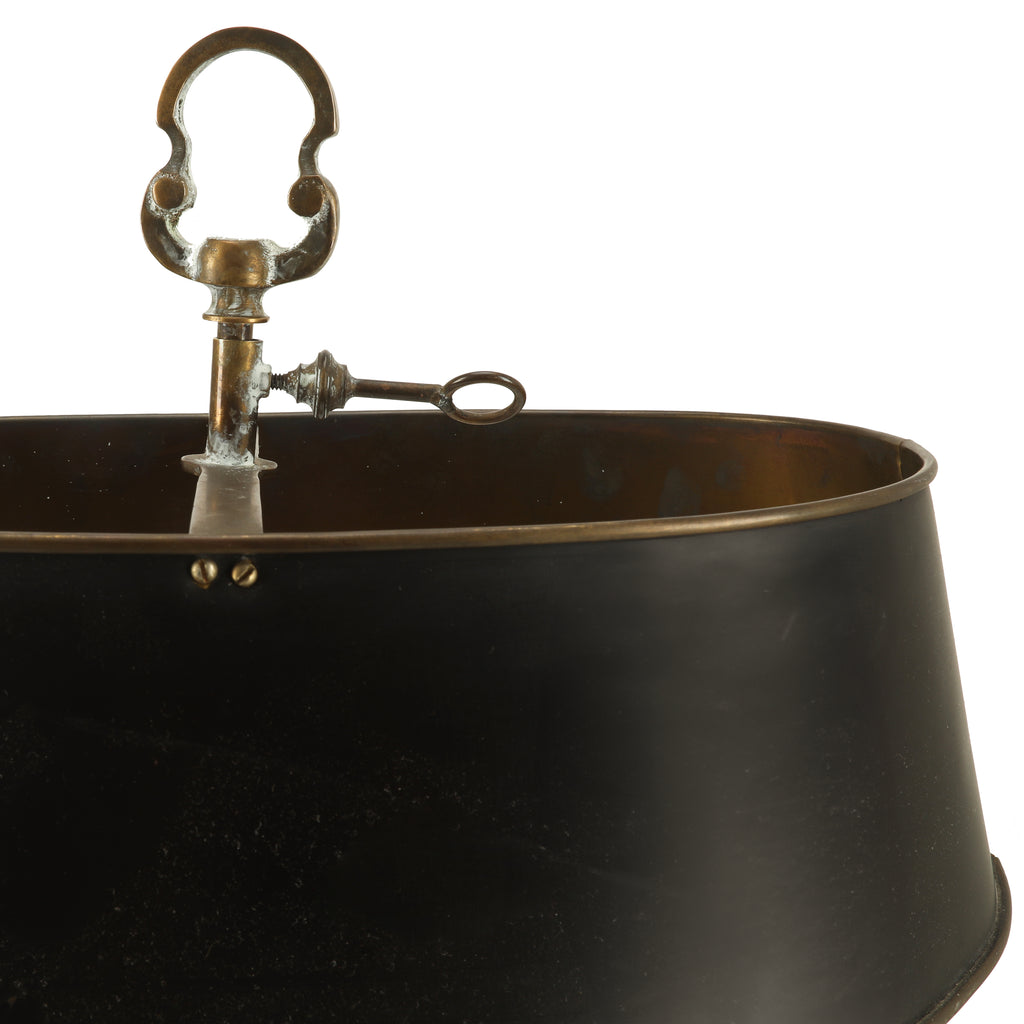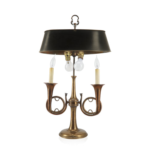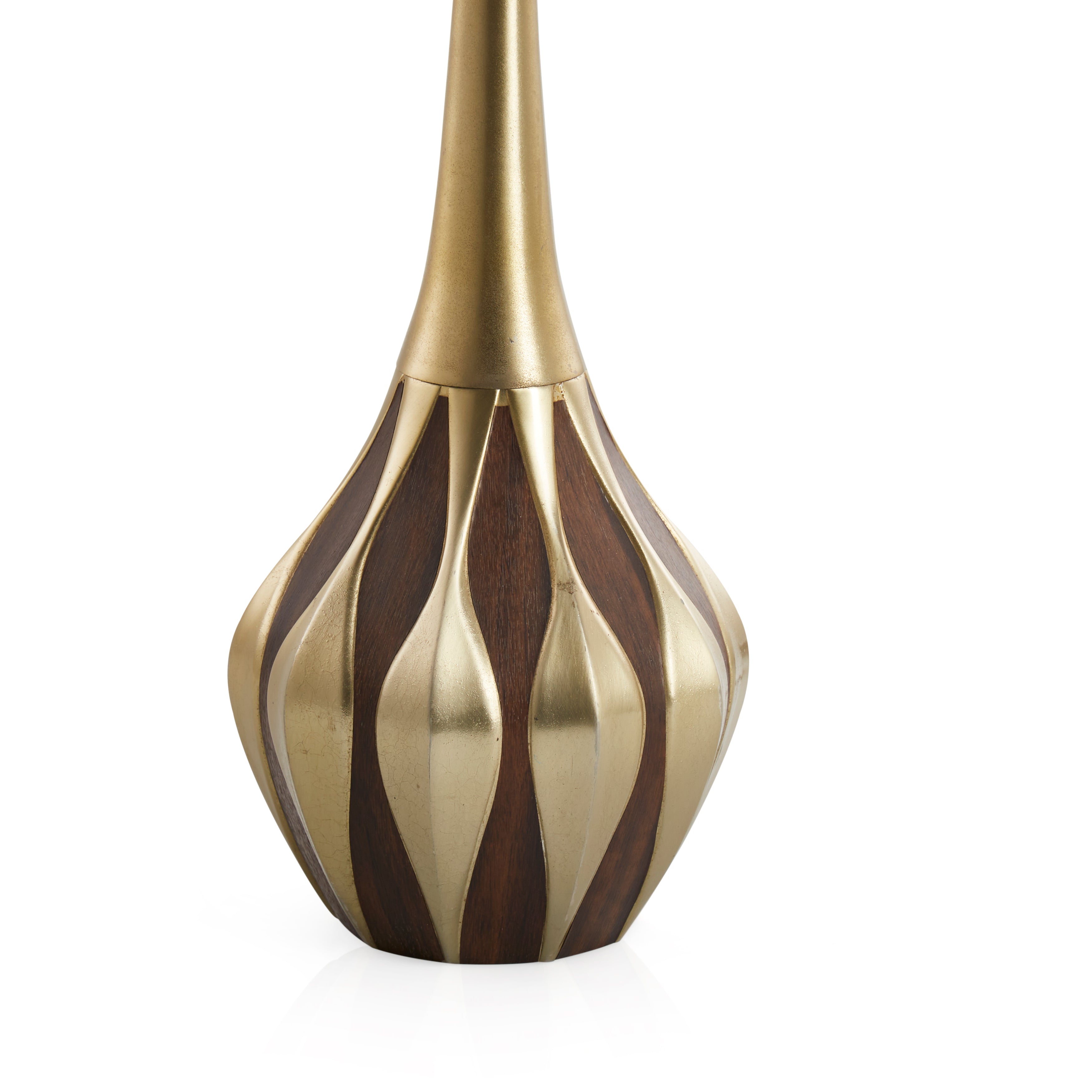 Details: Brown metal lamp with matching shade with round "puddle" base. Molten chocolate "pouring" from shade to form base.