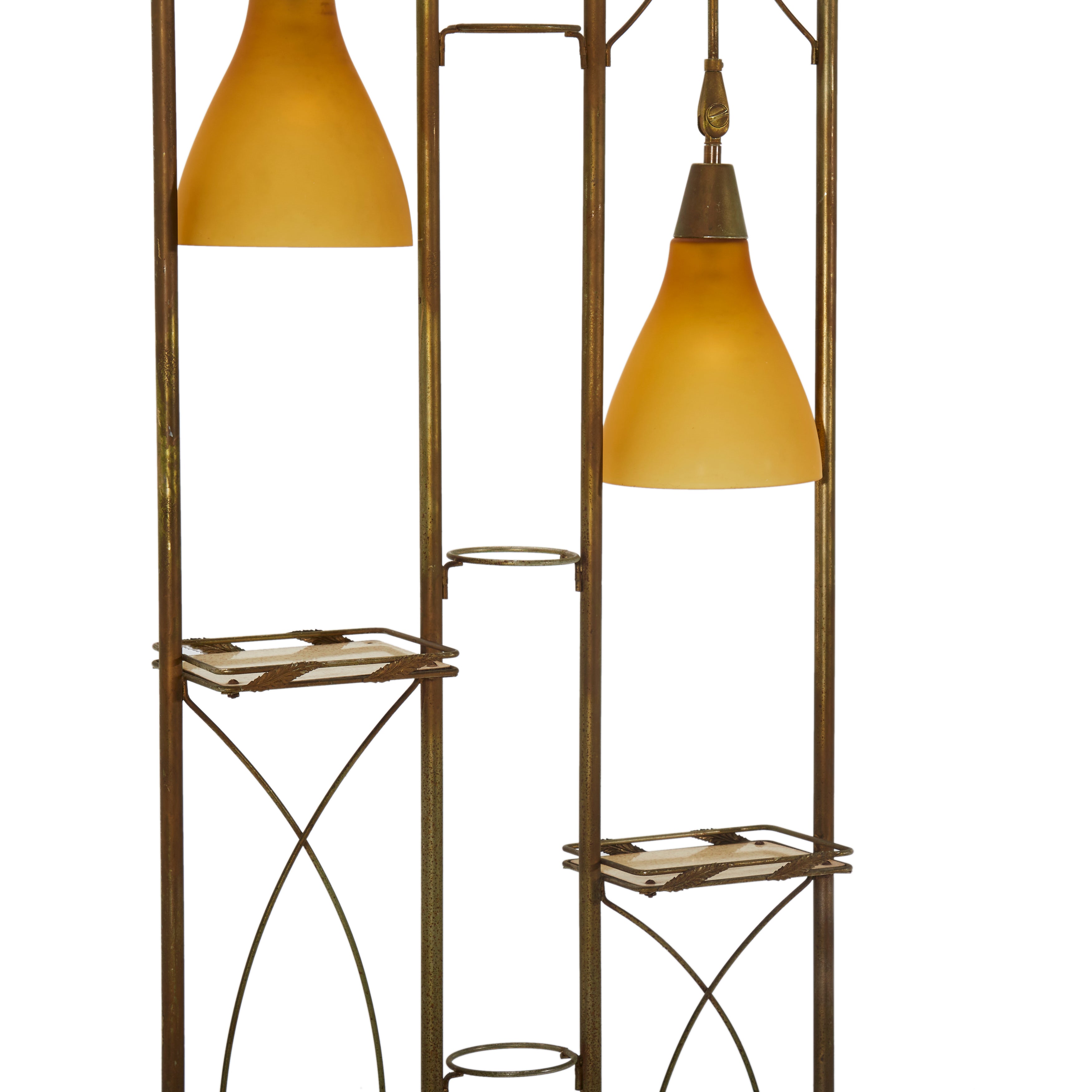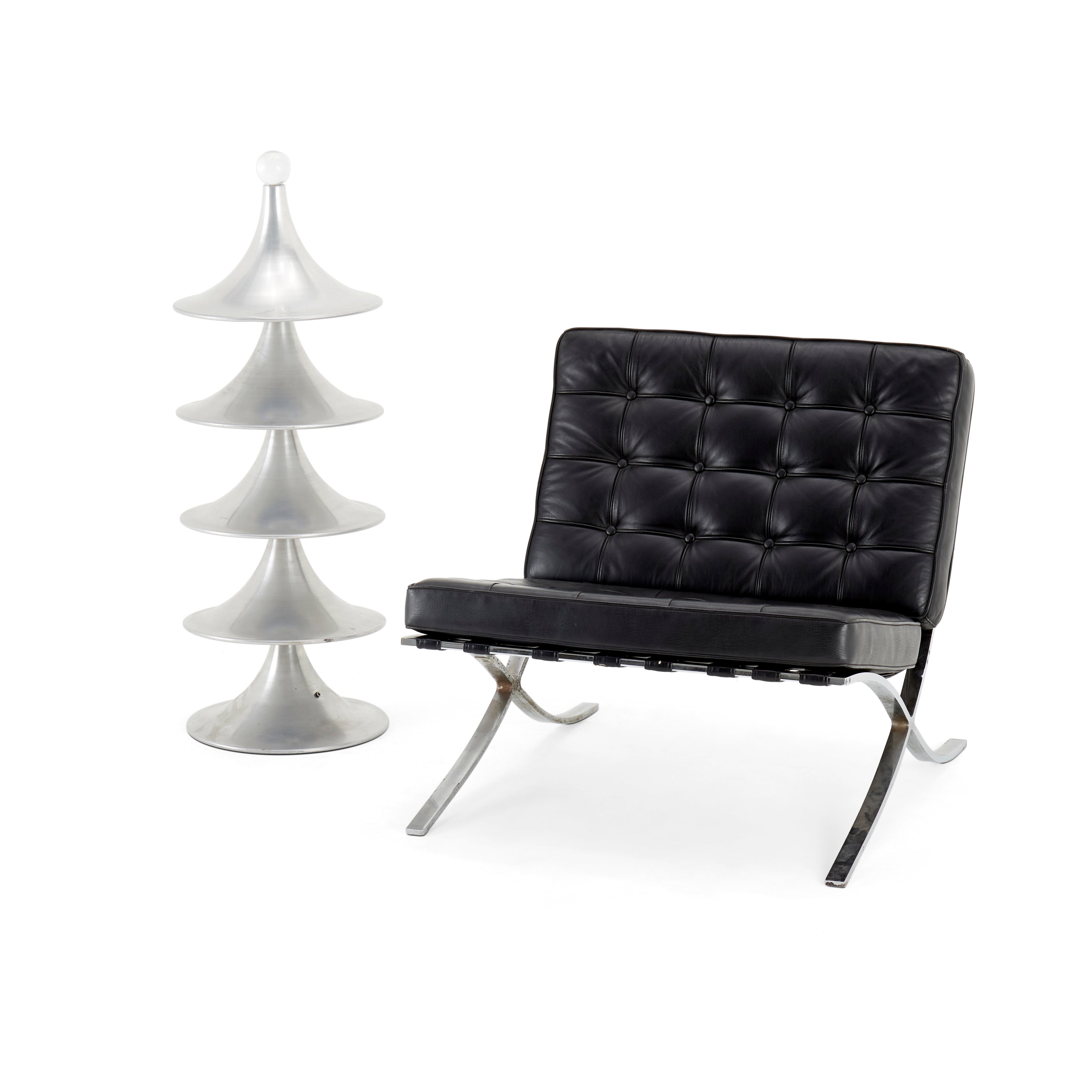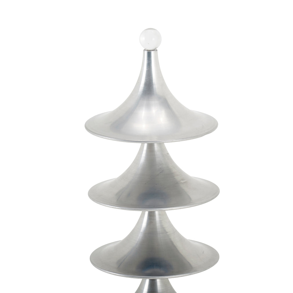 Details: Aluminum Stacked Cones (Xmas Tree Style), Blue Neon Lights Under the Cones, Lucite Round Ball on Top, Floor Lamp, Missing Power Supply Dimensions: 51" H...