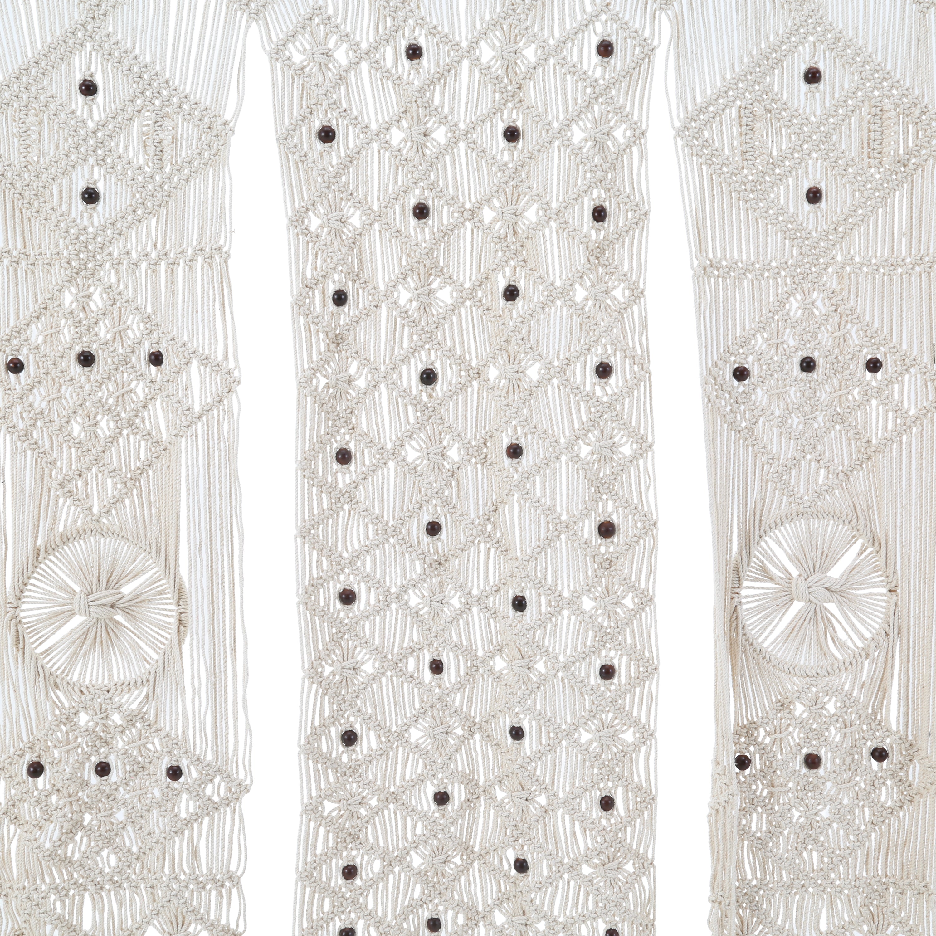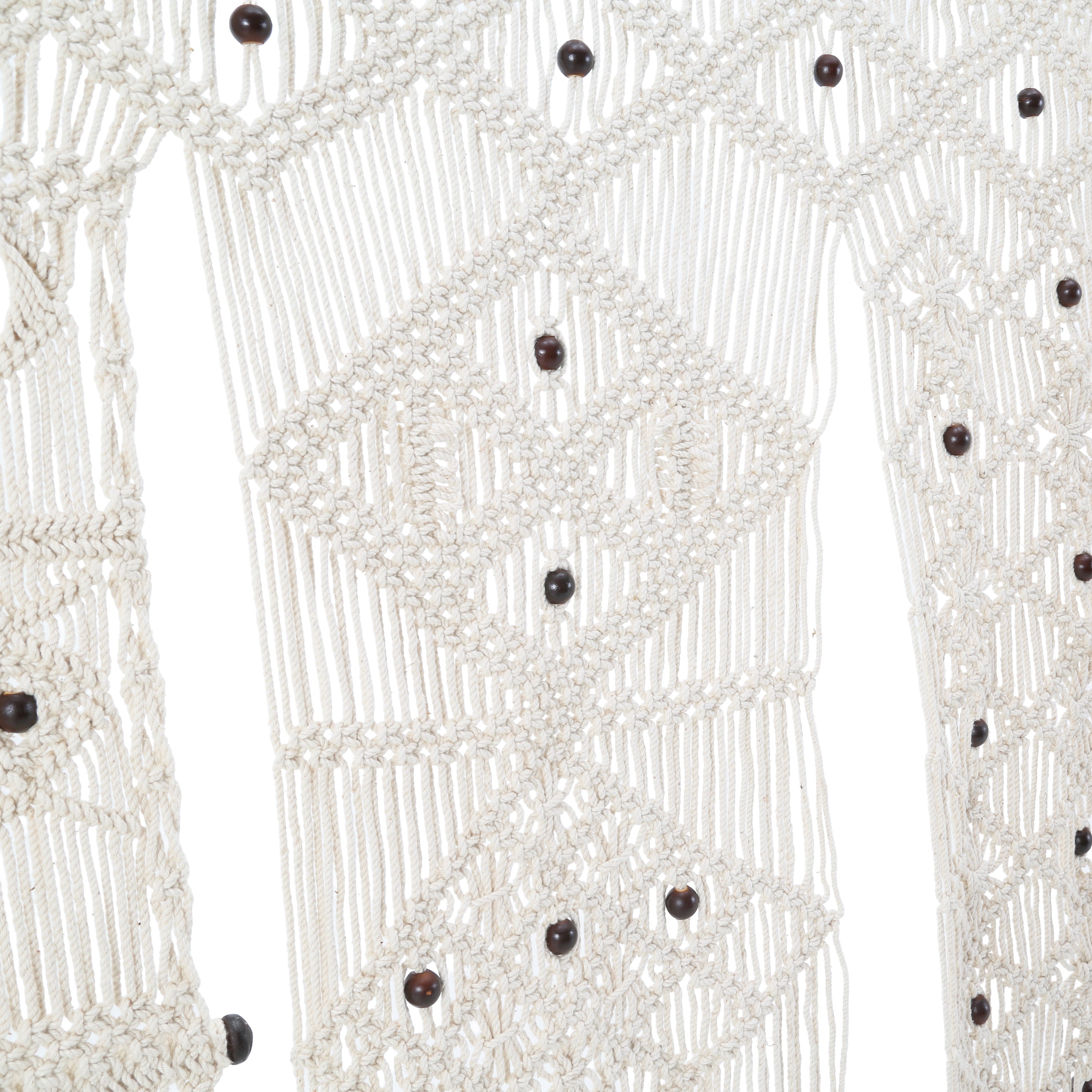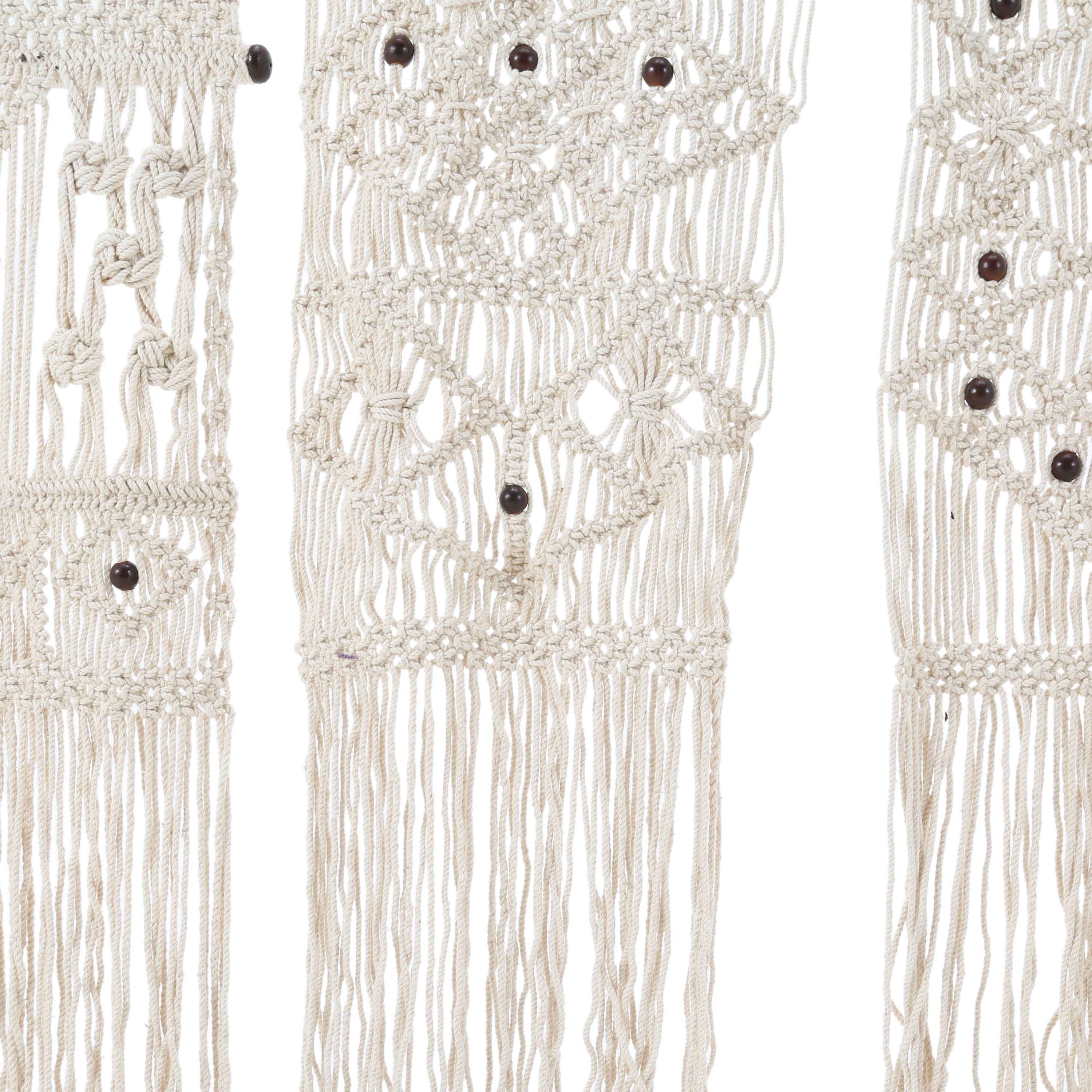 Details: Folding 3-Panel macrame screen room divider with wood bars and cream screen. Dimensions: 70" H x 53" L x 1" W
