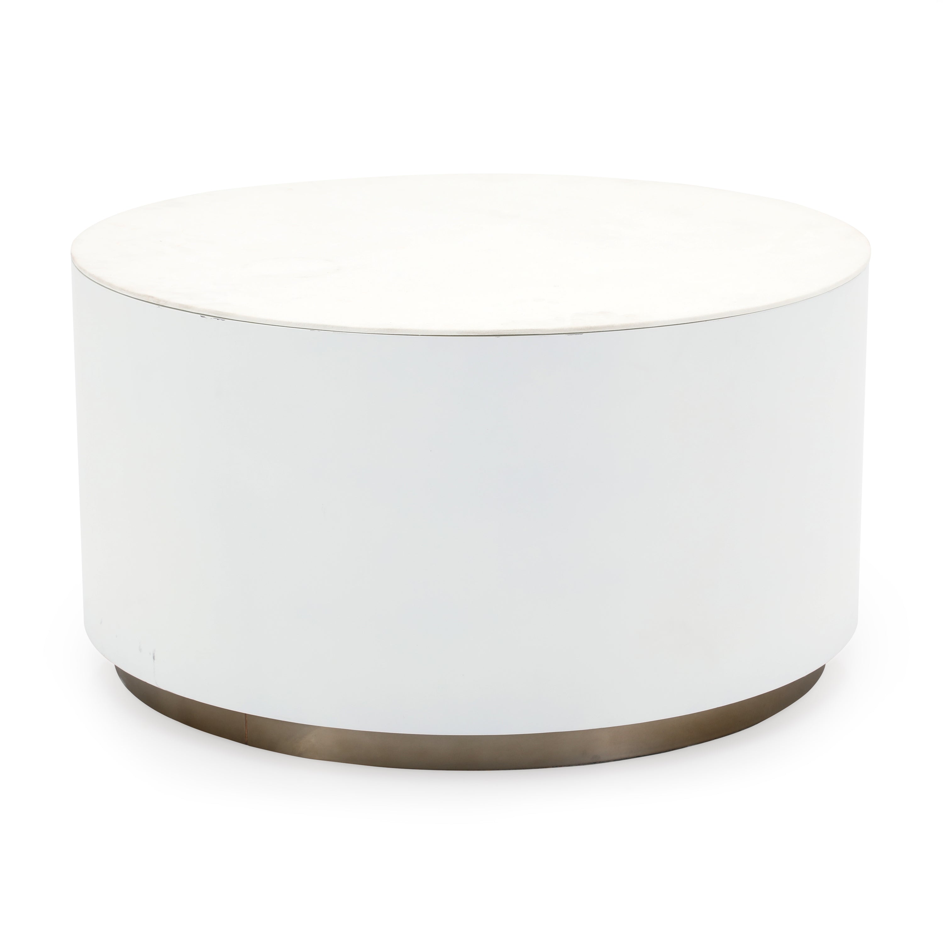 Details: White cylindrical pedestal with cut-out center Dimensions: 26" H x 22" W x 22" D Quantity: 1