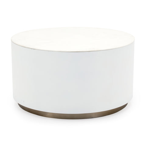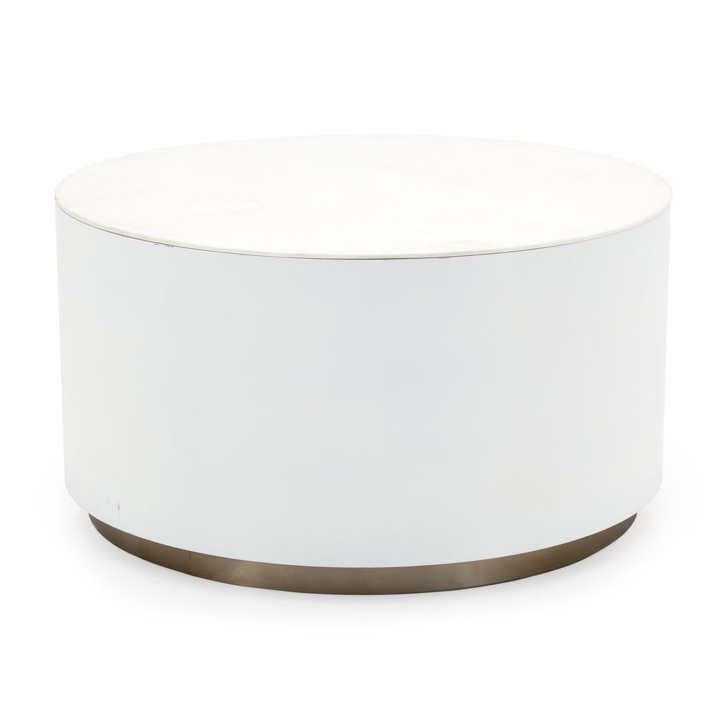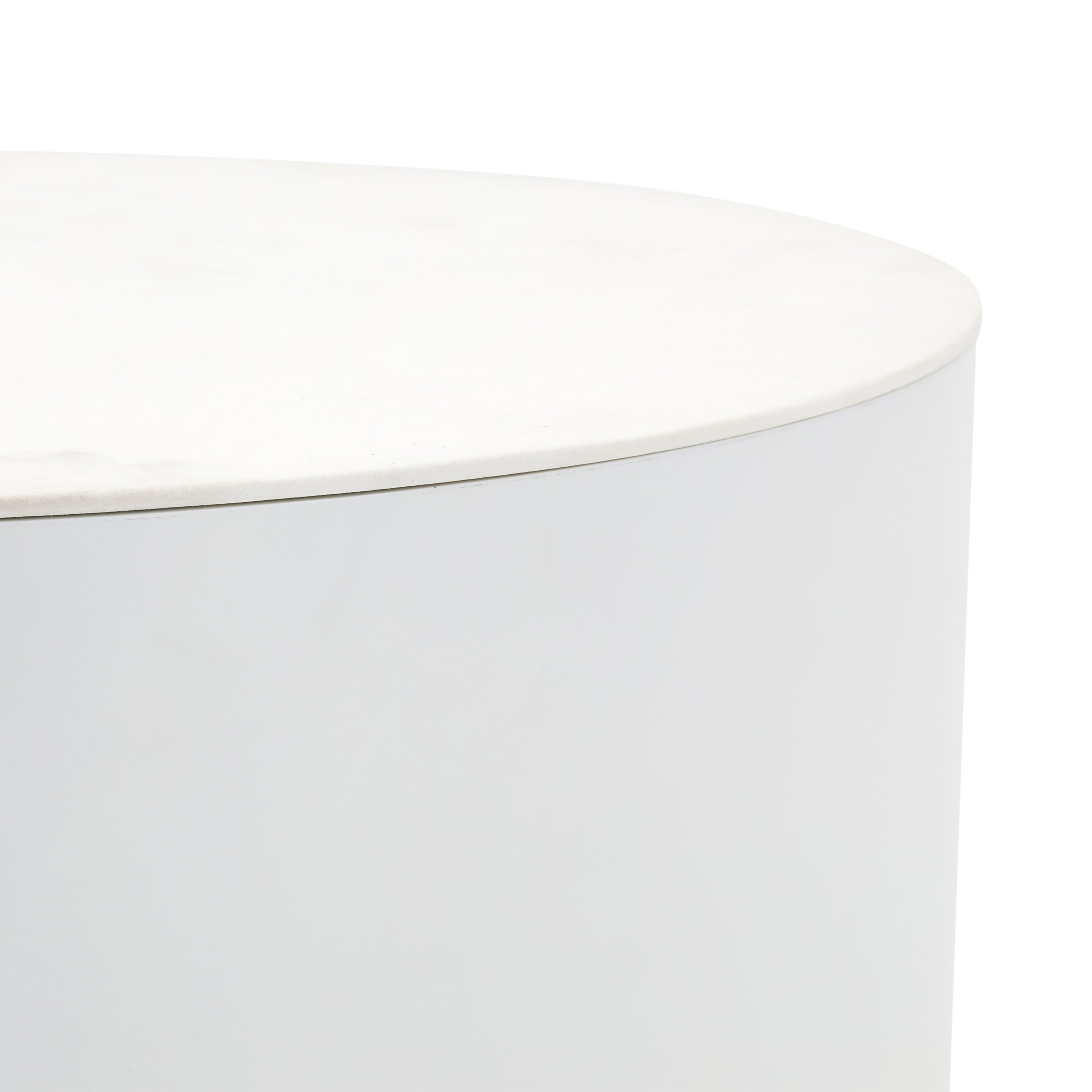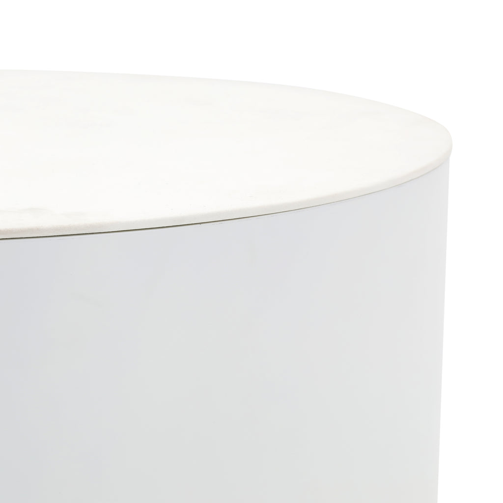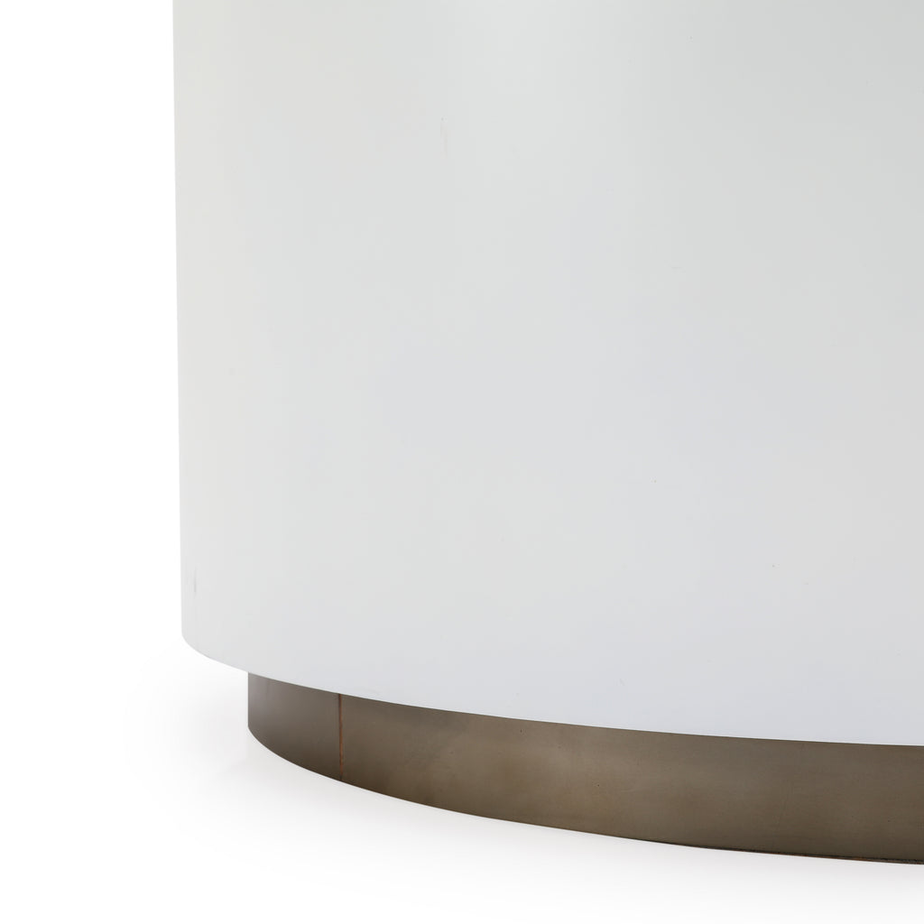Details: White modern circular tapering to straight side table Dimensions: 18" H x 20" W x 20" D