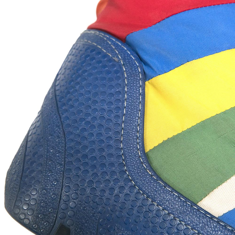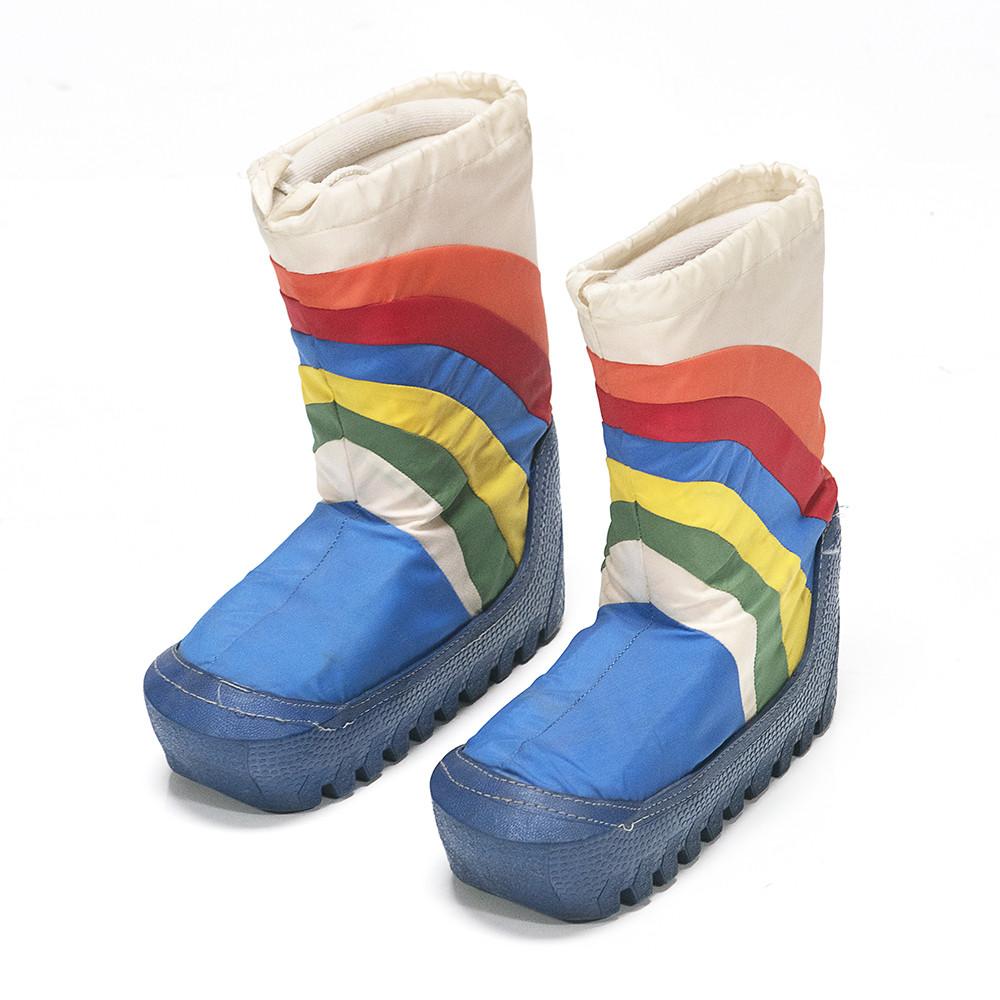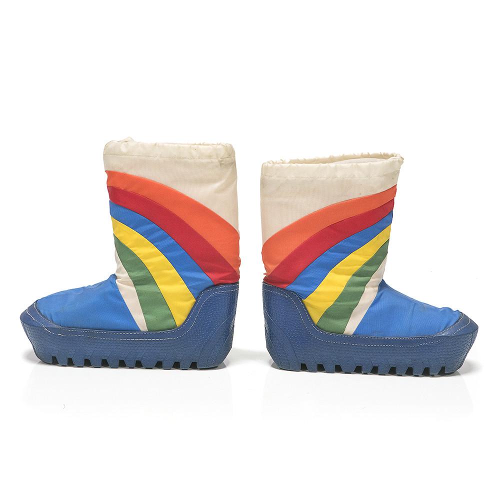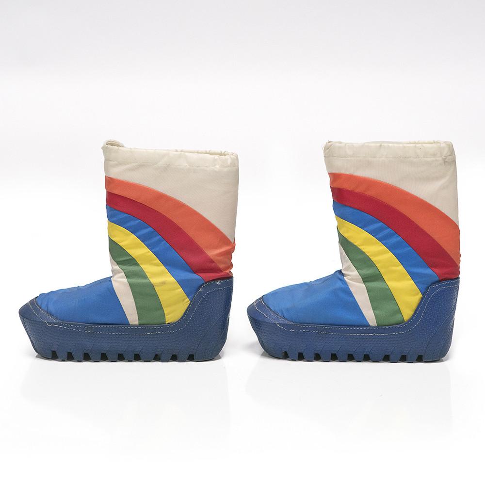 Details: Rainbow outdoor moon boots with dark blue solesDimensions: 13" H x 4" W x 12" D