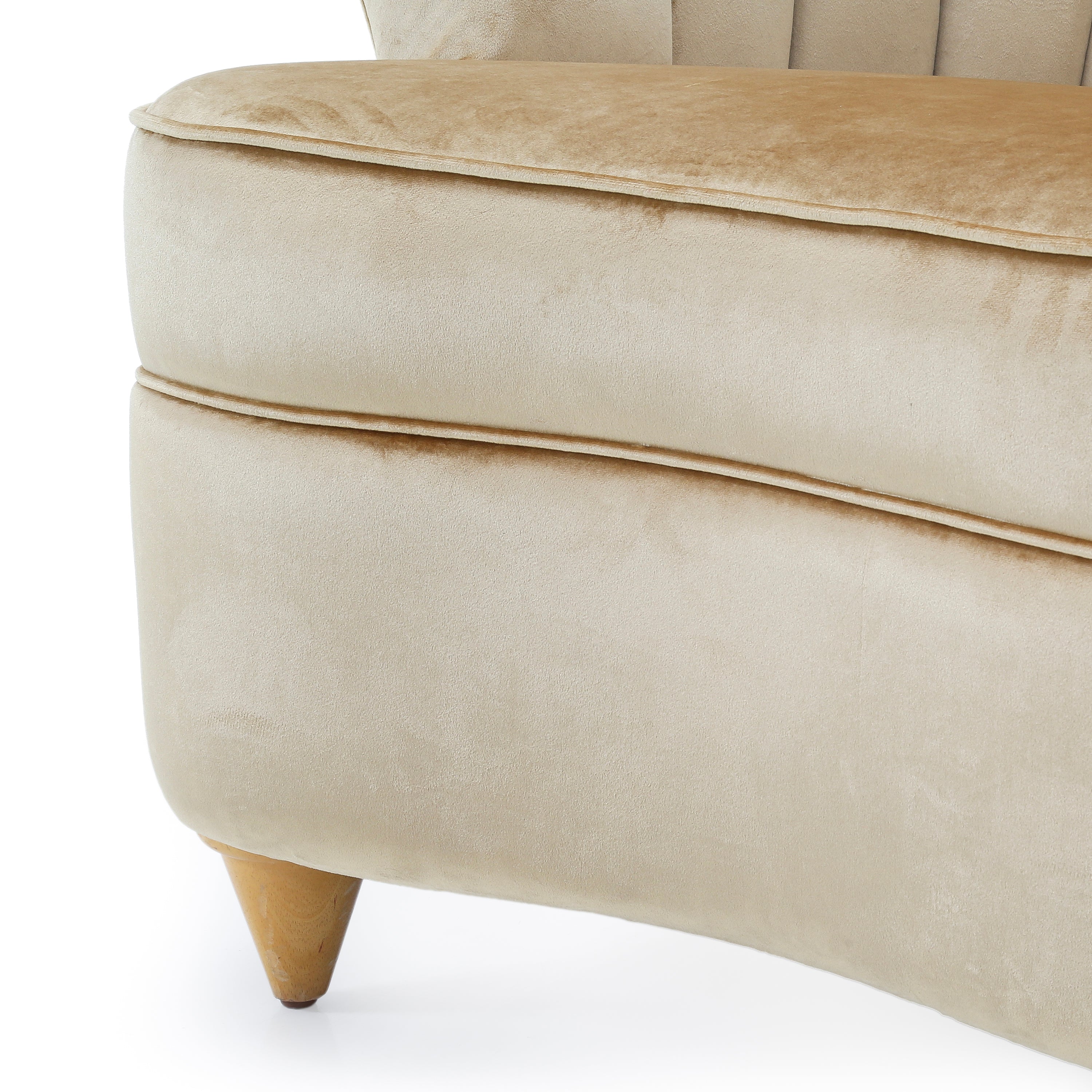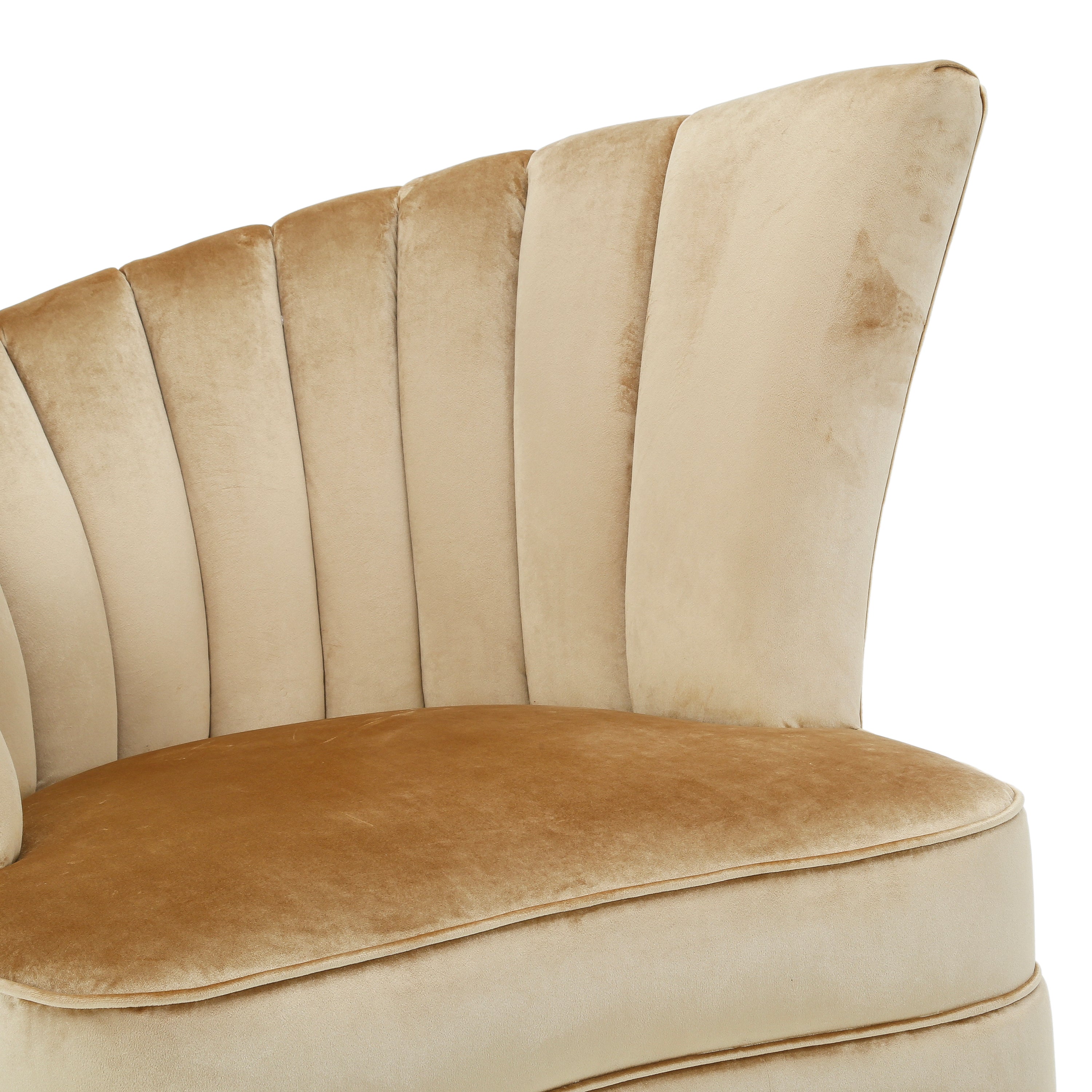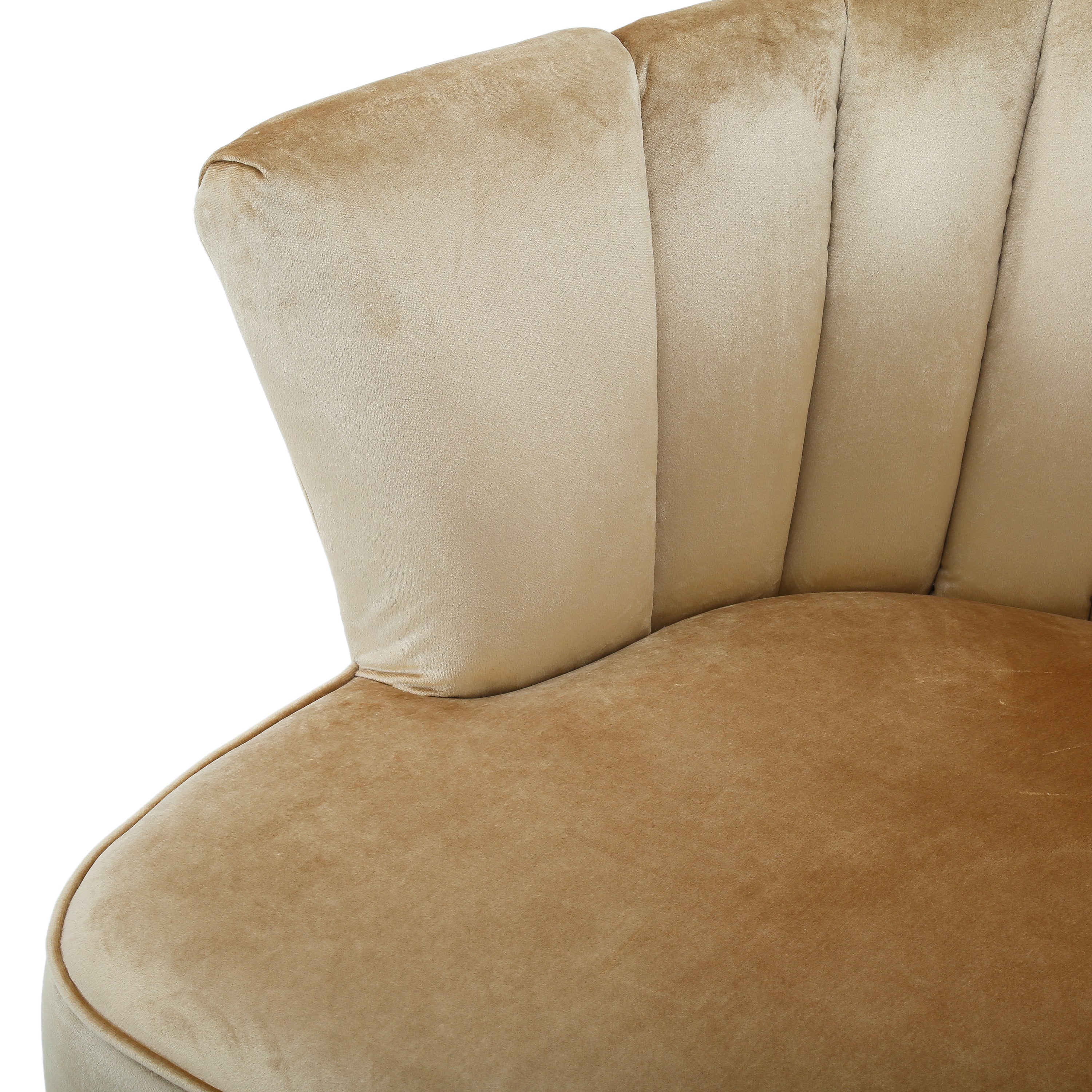Details: Tan velvet deco lounge chair with lightwood legs. Dimensions: 40" H x 40" W x 30" D Quantity: 1