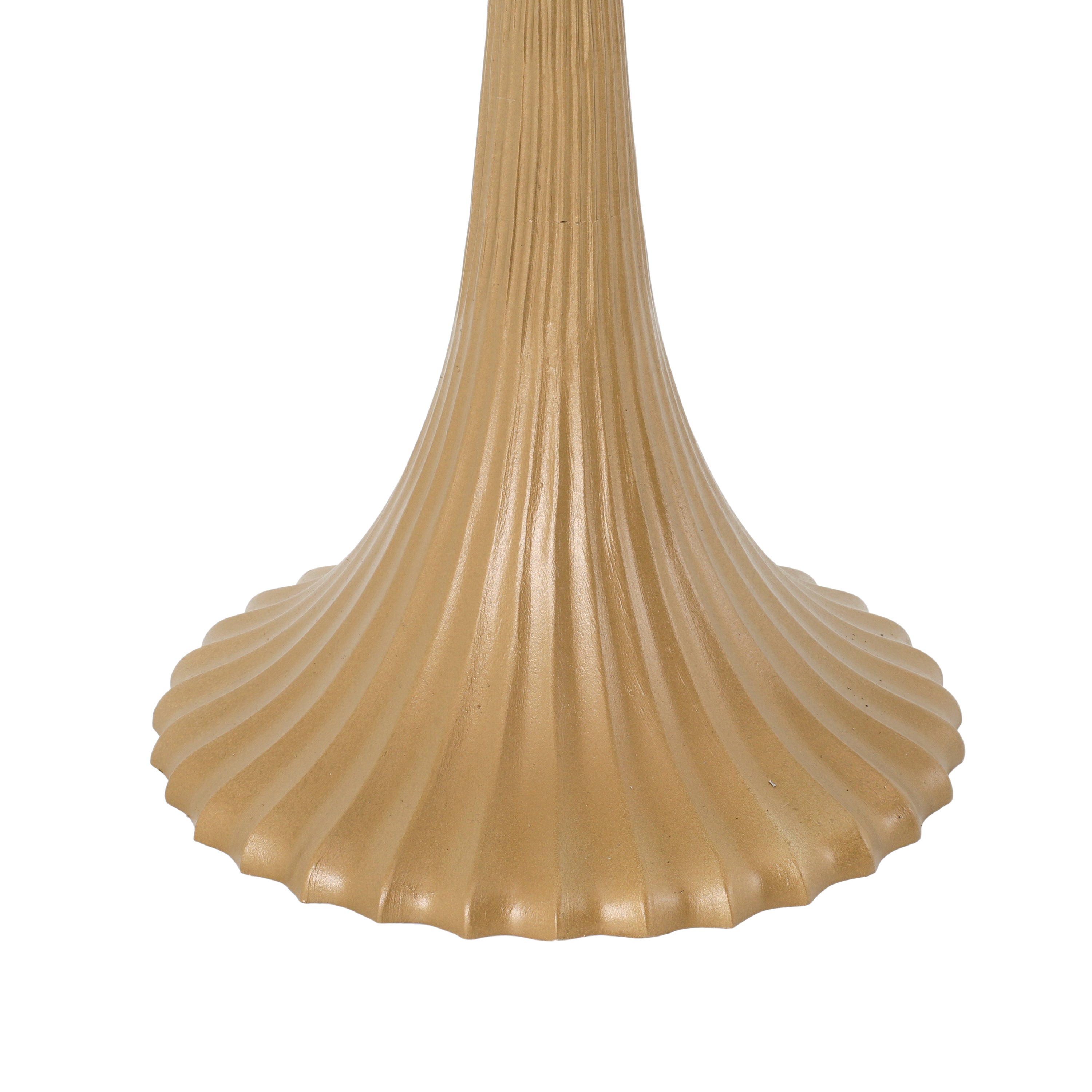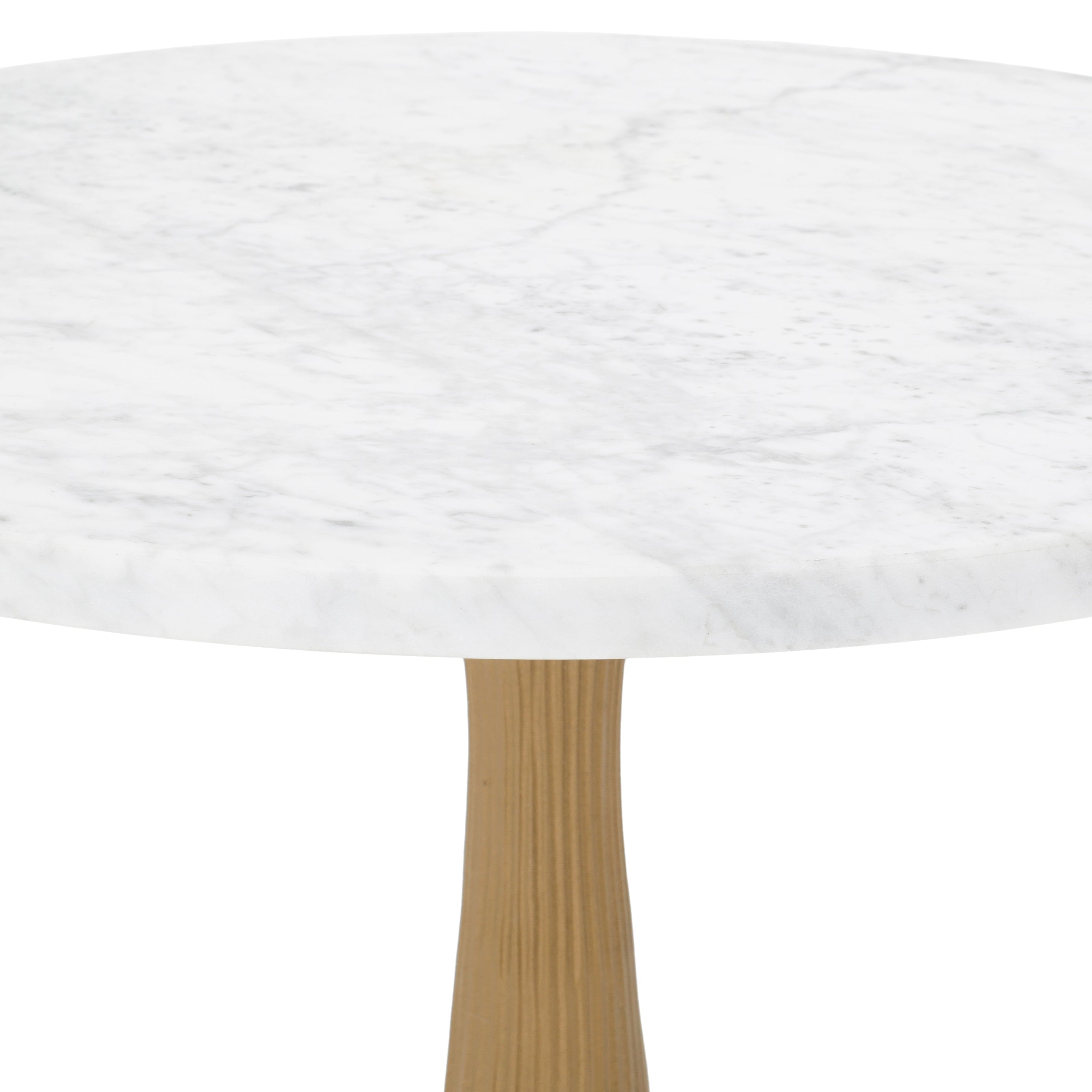 Details: Small marble top table with gold tulip base. Dimensions: 21" H x 24" D