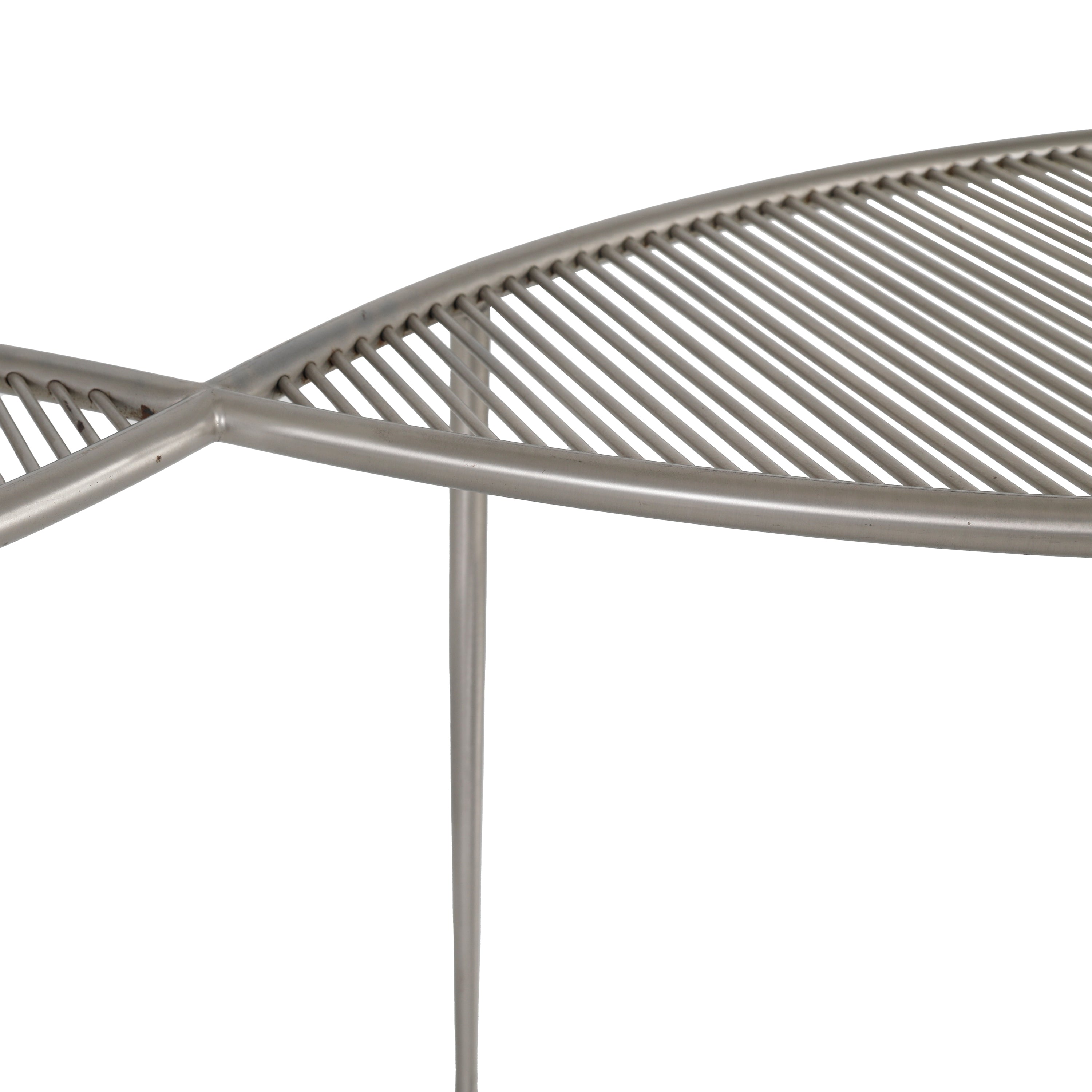 Details: Silver stainless steel slatted modern lounge chair (Replacement value for this piece is very high $$$$ - please handle with extreme care) Dimensions: 35" H...