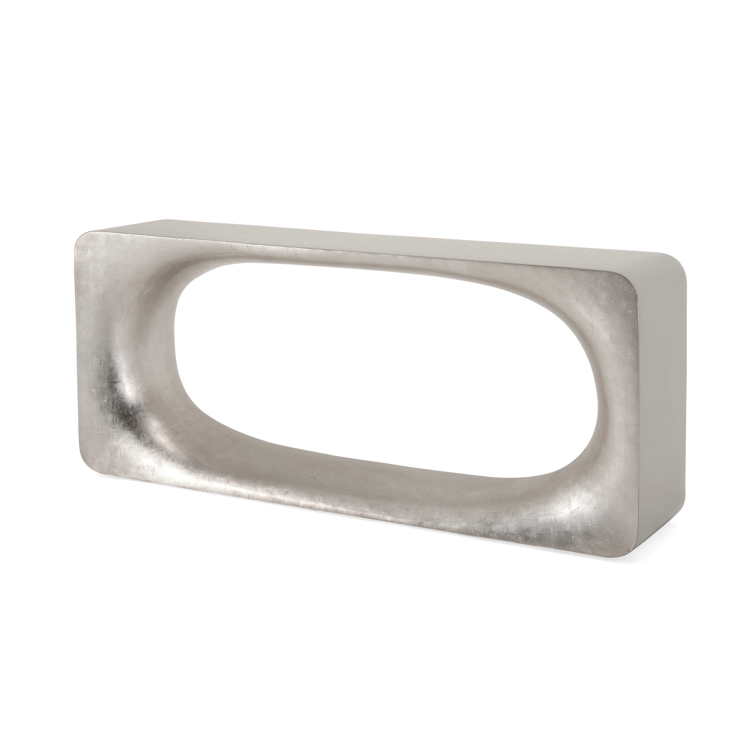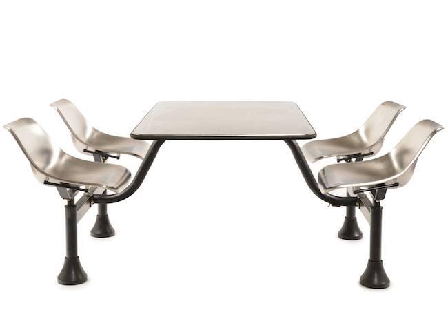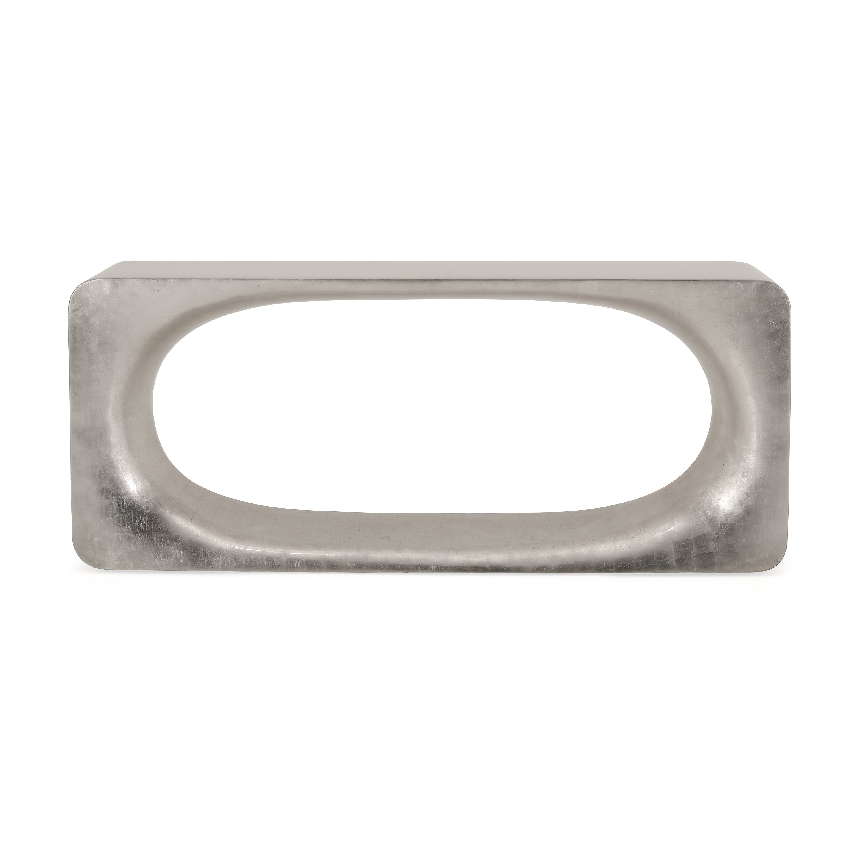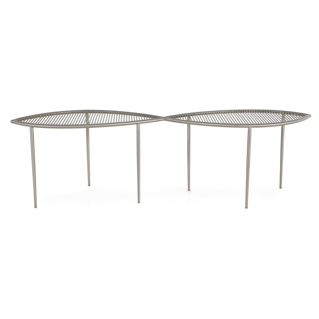 Details: Silver chairs with cutout backrest and off-white seating. Part of a set with x2 chairs and one loveseat / bench (priced per piece). Dimensions:...