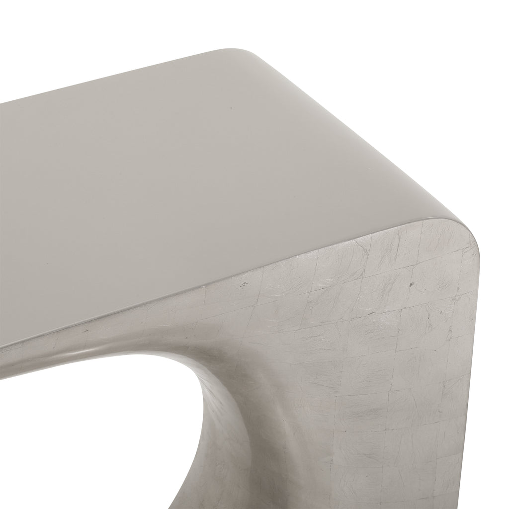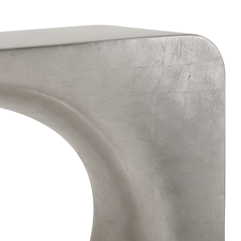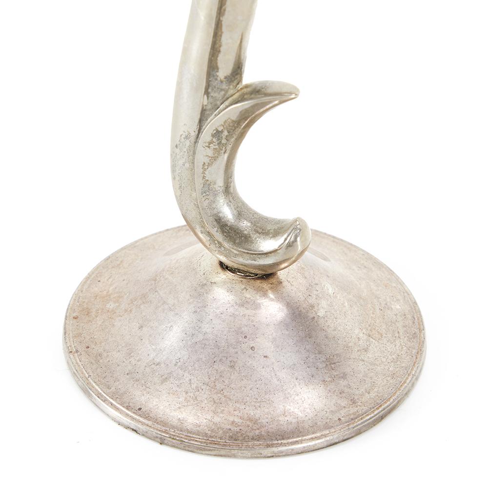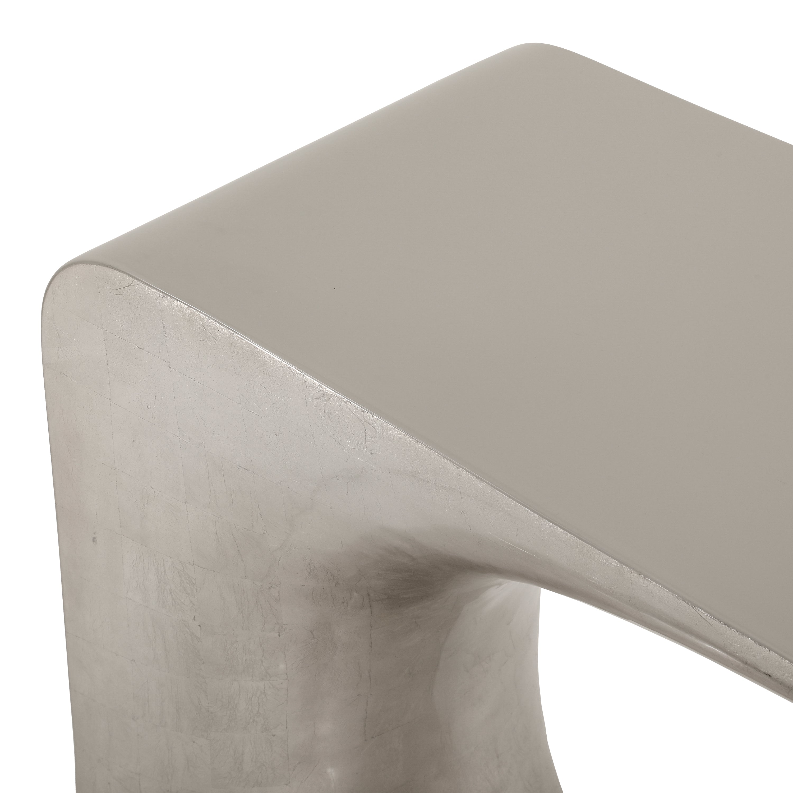 Details: Silver chairs with cutout backrest and off-white seating. Part of a set with x2 chairs and one loveseat / bench (priced per piece). Dimensions:...
