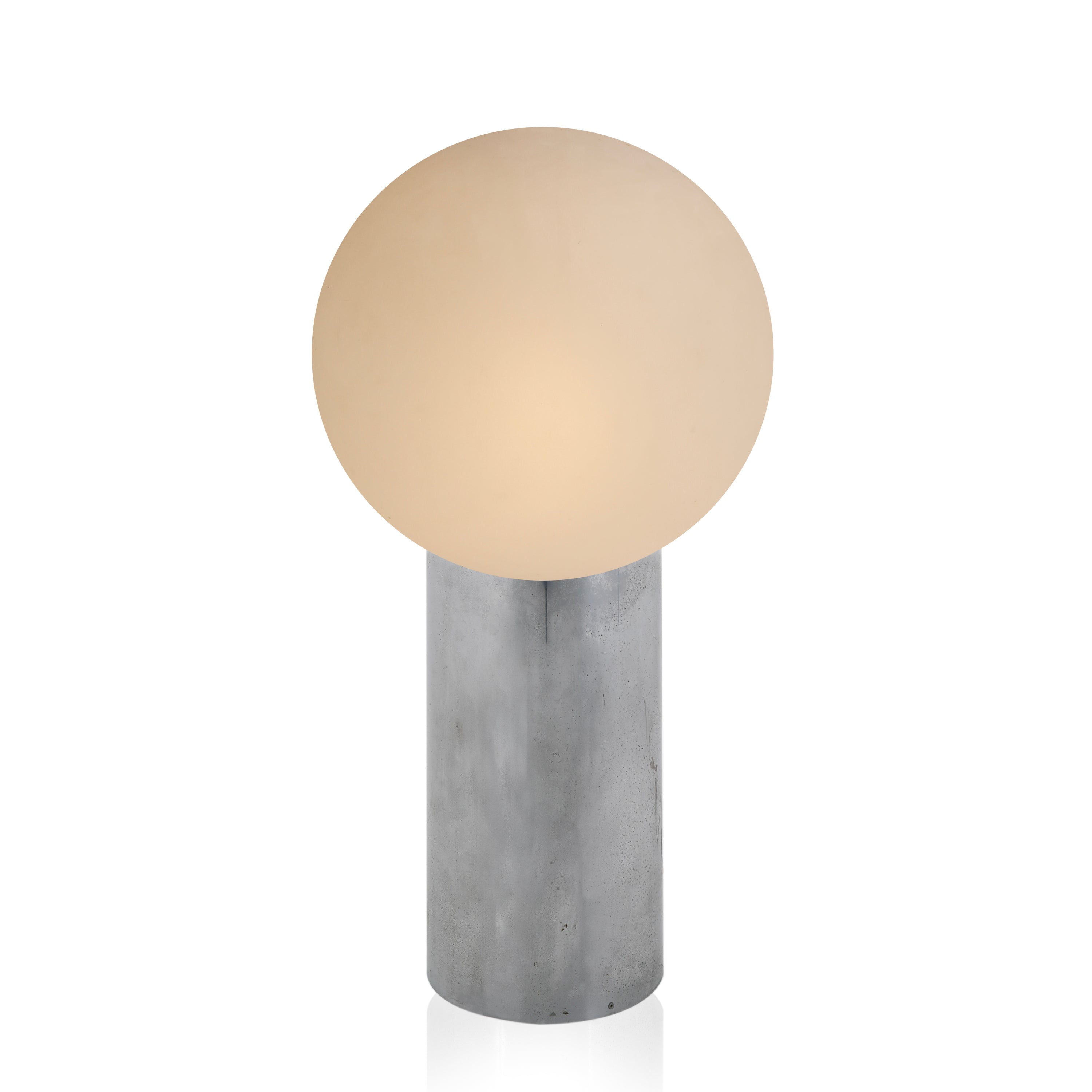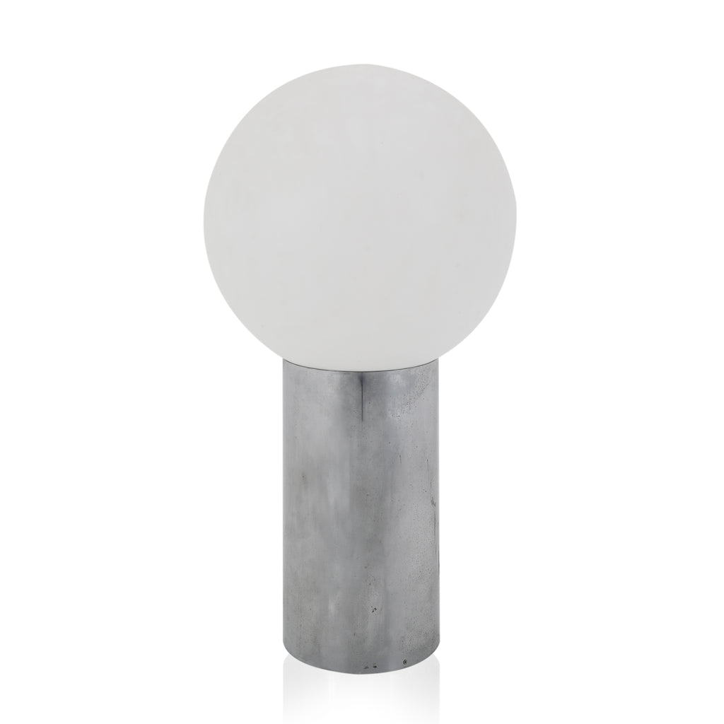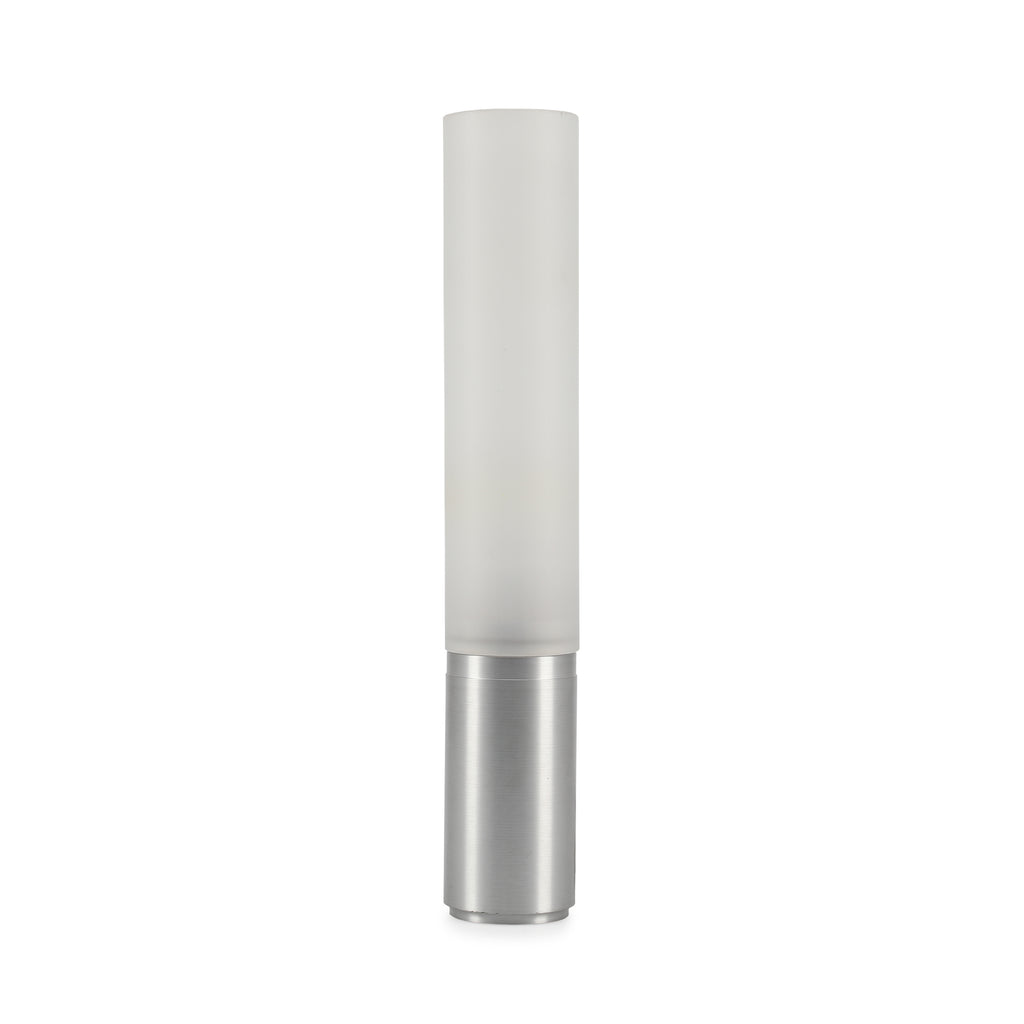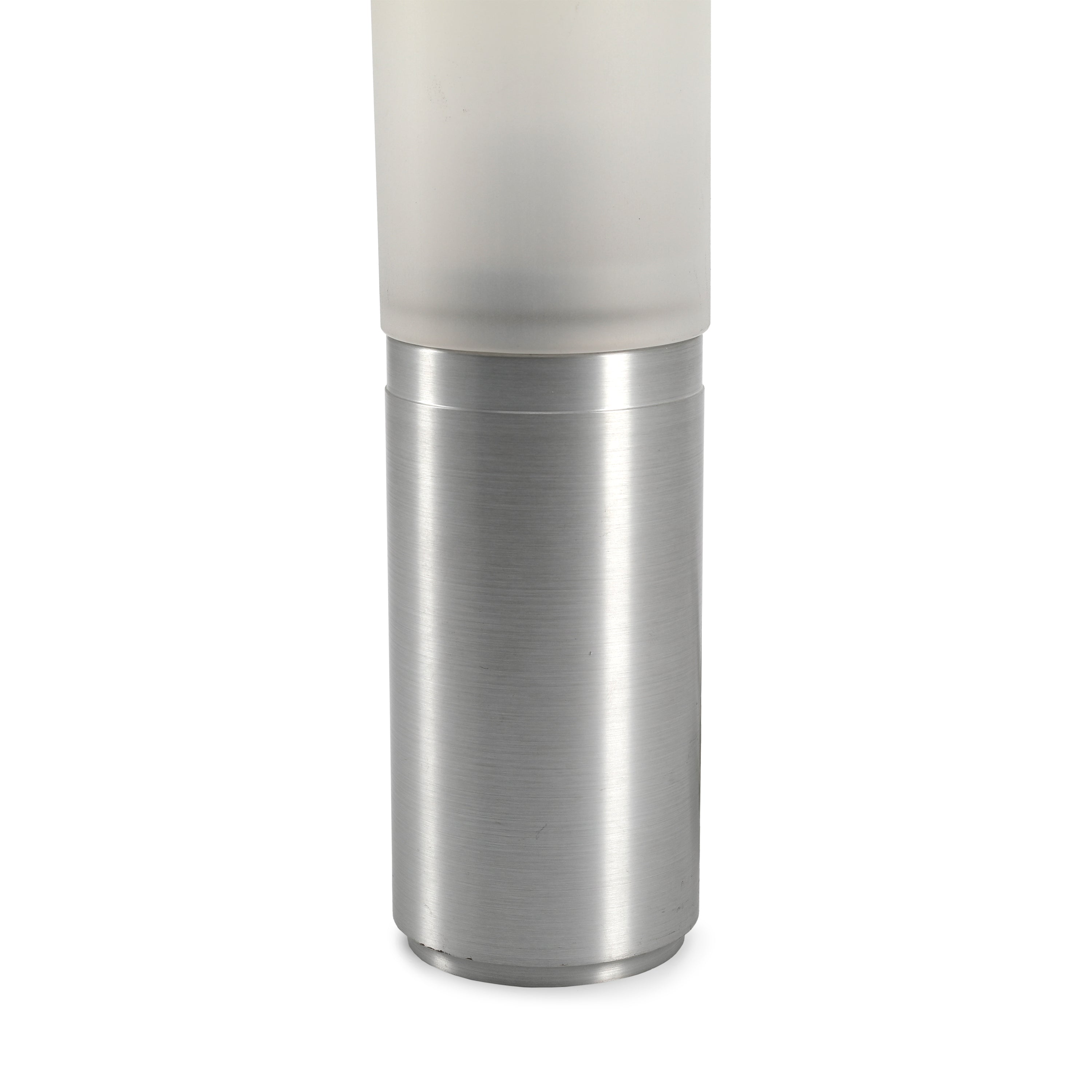 Details: Minimalistic table lamp with frosted glass shade. Dimensions: 18" H x 3" D