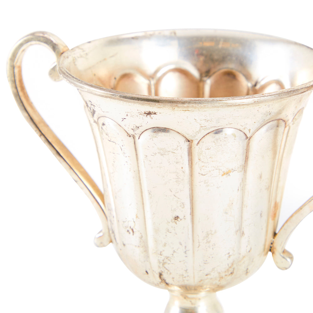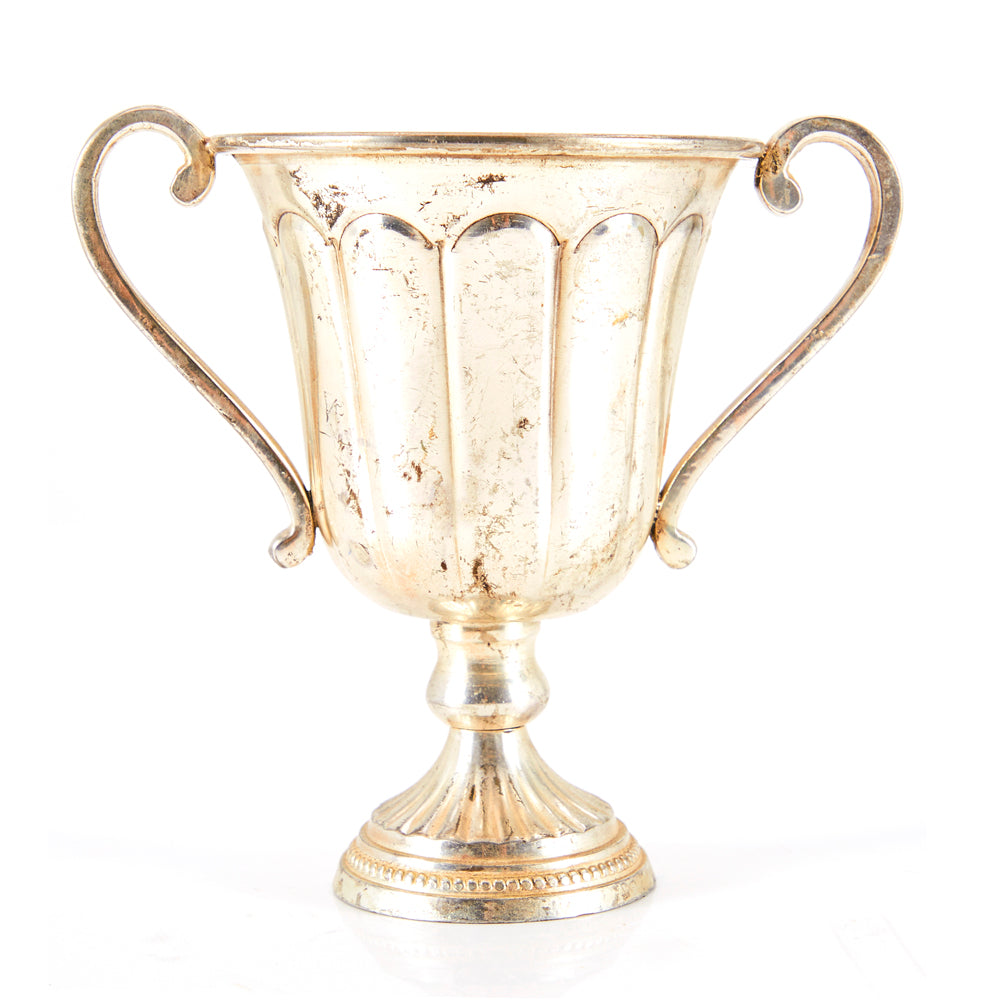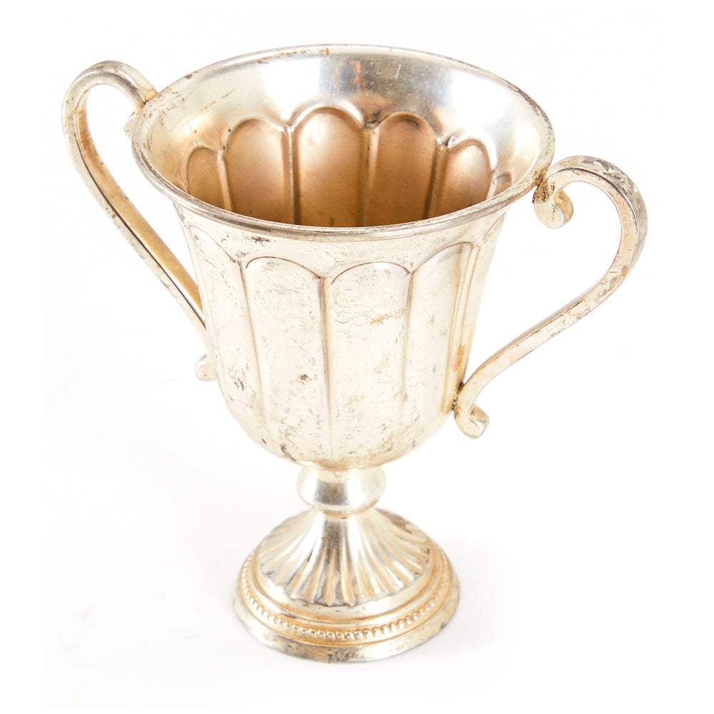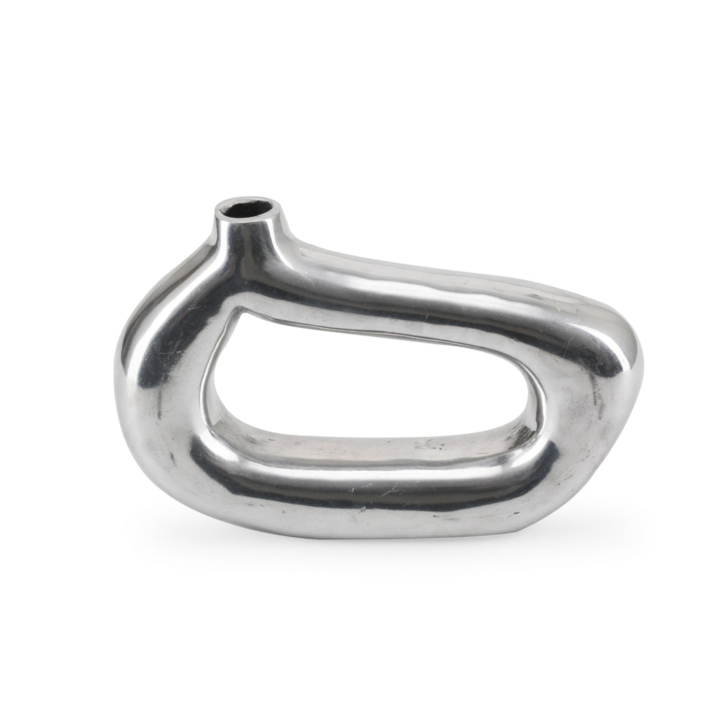 Details: Metallic vase with chrome top and tapered brown base. Dimensions: 8" H x 8.5" W x 4" D
